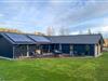 Nyd en afslappende ferie i et moderne træhus med indendørs pool, spabad og stor have nær Nationalpark Mols Bjerge.