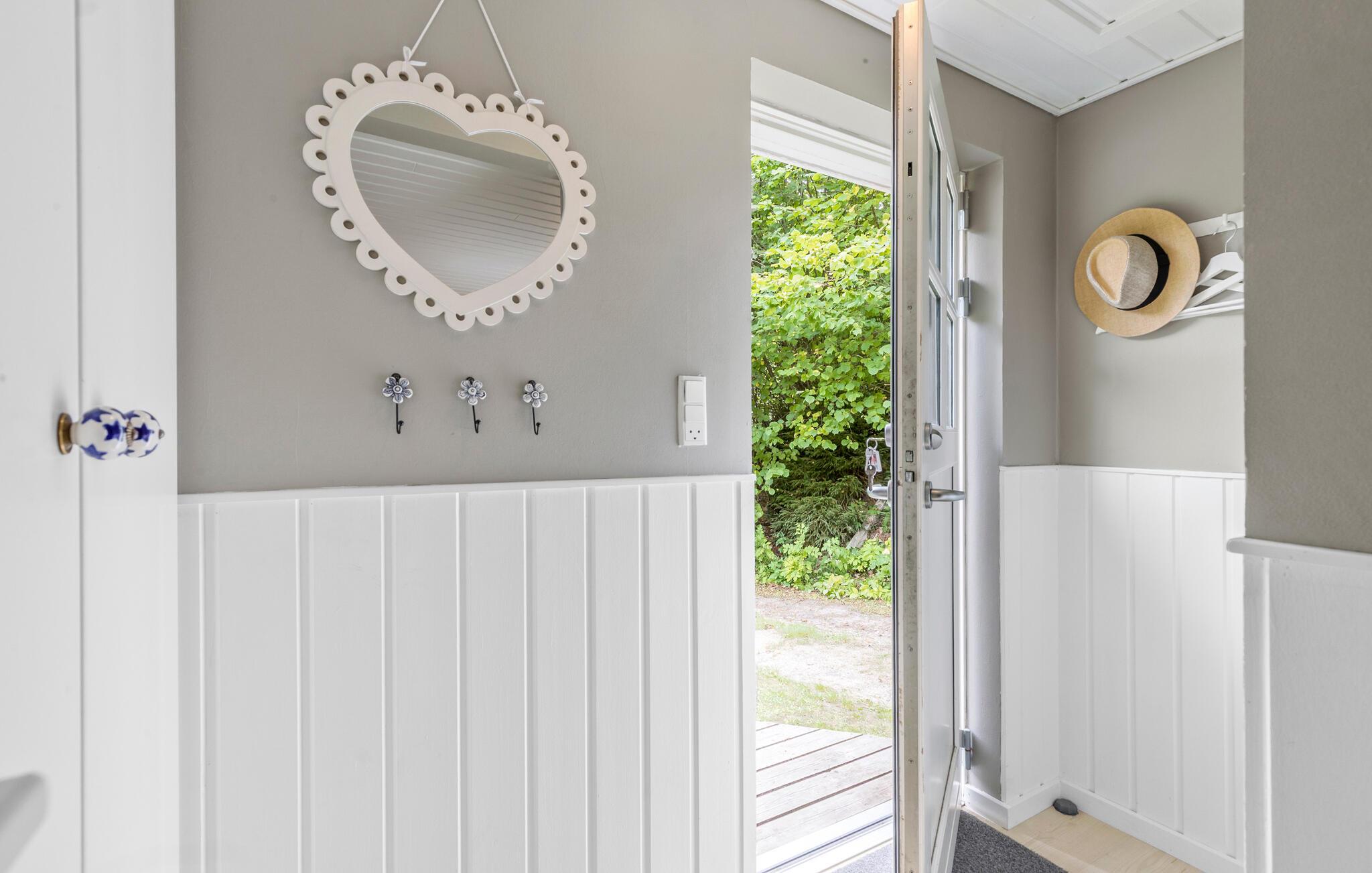 Lyst og hyggeligt sommerhus med to soveværelser og stor naturgrund nær børnevenlig strand.