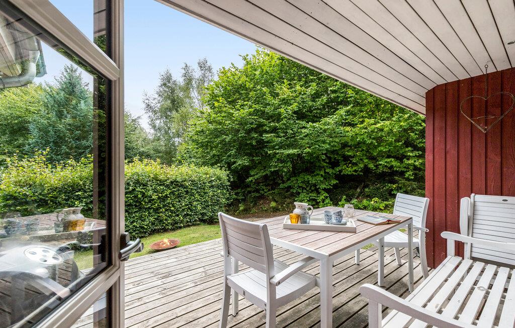 Dejligt lyst og indbydende sommerhus at ankomme til og holde ferie i. Pænt møbleret og indrettet med to gode væresler og køkken i praktisk åben forbindelse med stuen. Moderne badeværelser. Fra stuen er der udgang til delvist overdækket terrasse. Stor naturgrund hvor der er naturlig terrænforskel og spændende beplantning. 5 min. i bil til dejlig børnevenlig strand og til Mols Bjerge Nationaparkområde hvor det er skønt at gå lange ture i den usædvanligt smukke natur.