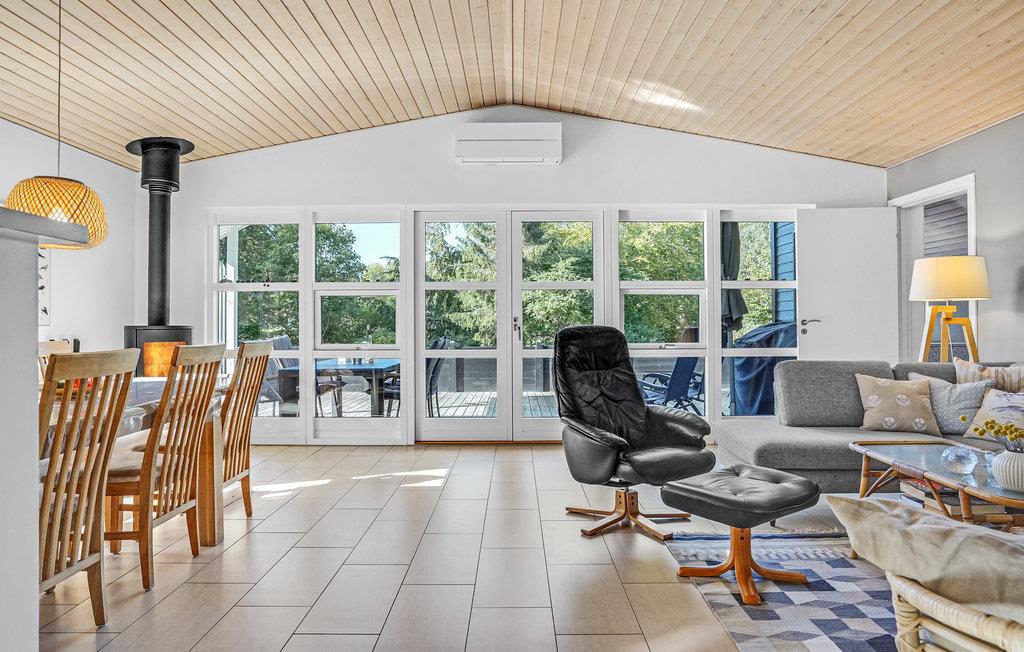 Flot beliggende feriehus på en stor naturgrund. Det er velindrettet med bl.a. fire gode soveværelser, et stort badeværelse samt gæstetoilet og her er fin plads til såvel en som to familier. Huset er moderne og lyst indrettet med dejlige møbler og veludstyret køkken. Huset er super isoleret og er derfor ideelt til ophold uanset vejr og årstid. Området, som ligger ved foden af Mols Bjerge, byder på en dejlig natur med skov, varieret terræn og åbne arealer. Der er utallige muligheder for gå- og løbeture. Det tager kun ca. 5-10 minutter i bil at komme til stranden eller Ebeltoft by.