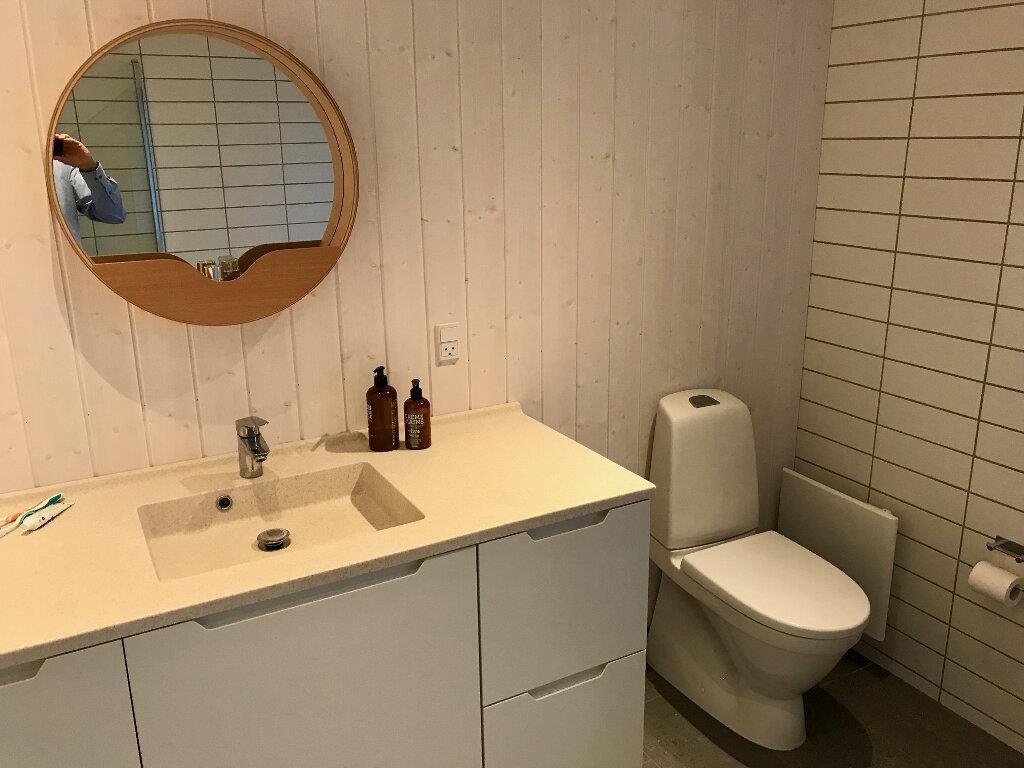 I huset er der to badeværelser med gulvvarme, og i det ene er der en to-personers spa, der giver mulighed for dejlig afslapning og samvær. Herudover er der en udendørs bruser, hvis du foretrækker at nyde den friske luft i kombination med dit brusebad.