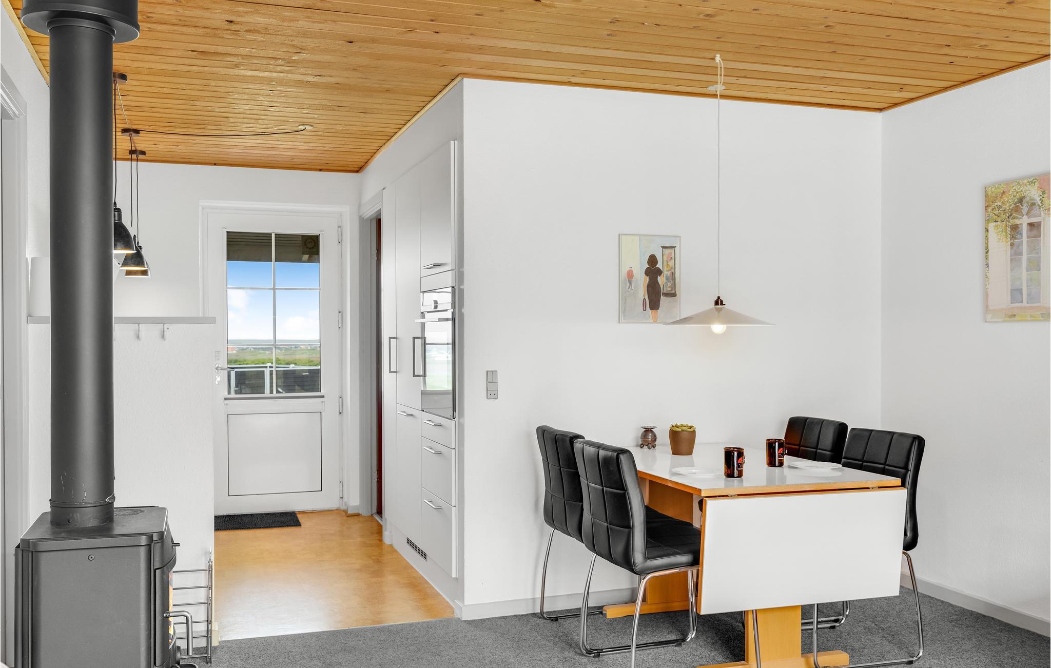 Denne fine ferielejlighed ligger i den skønne, lille by Ferring tæt på Bovbjerg Fyr. Lejligheden har en utrolig skøn placering med kig til både Vesterhavet og Ferring Sø fra køkkenet. Her er to soveværelser, hvoraf det ene har en dobbeltseng, og det andet har en etageseng. Derudover er der et badeværelse, og et køkken der ligger i åben forbindelse til stuen. Hele området byder på mange kilometers fantastiske stier, der indbyder til mange timers gåture. Havet ligger kun et stenkast fra lejligheden, så alle forudsætninger for at få en ferie der giver ro til krop og sjæl findes her.