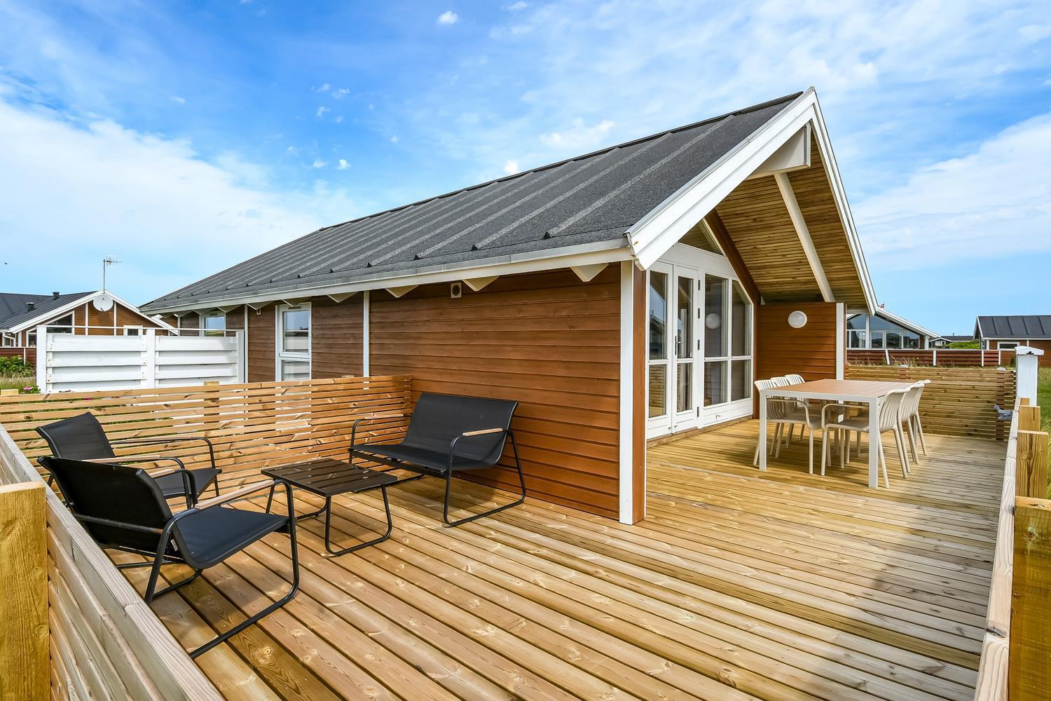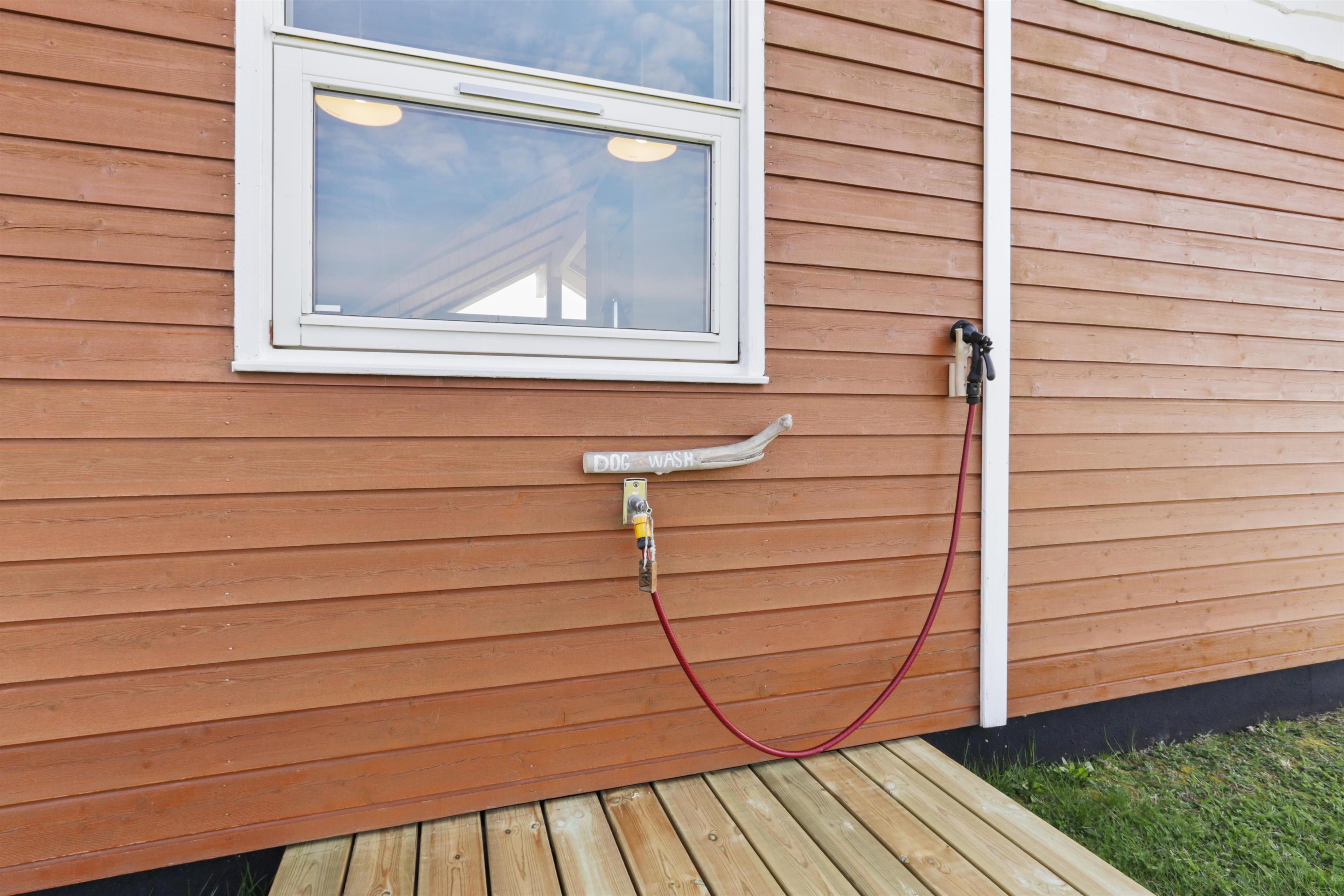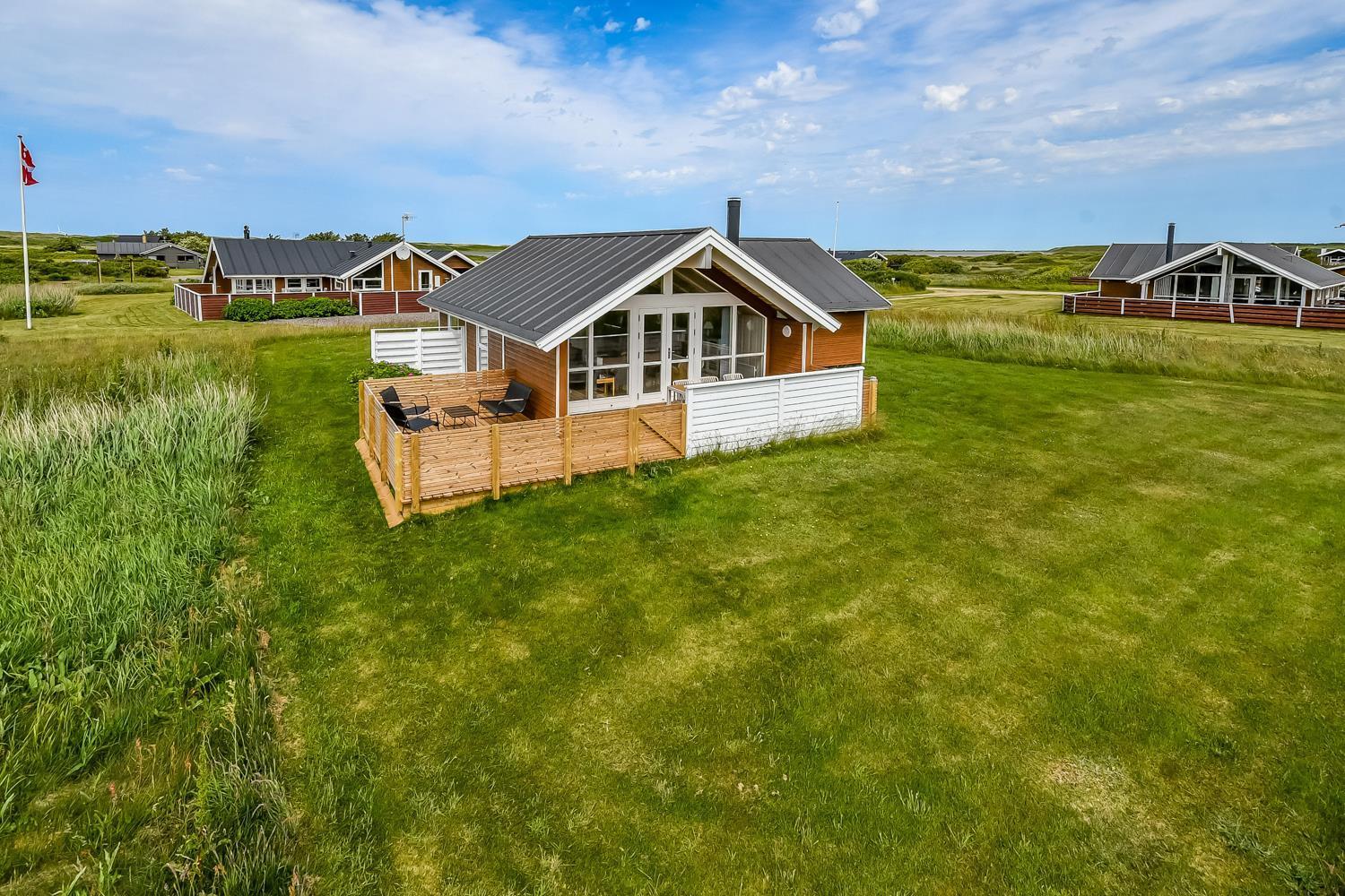 Huset ligger på en ca. 1.009 m2 stor naturgrund i rolige omgivelser og ud til et stort friareal. I Ferring er der rige muligheder for gå- og cykelture. Der er kun ca. 150m til Ferring Sø og ca. 400m til Vesterhavet. Fra stuen er der direkte udgang til en lækker ny terrasse med havemøbler, en solvogn og en gasgrill som kan flyttes rundt efter behov. Som et lille ekstra, er det lavet en lille vaskeplads til hunden, hvis man f.eks. har været ude og gå langs stranden med sin firbenede ven. Der er også et løst hegn m.m., som man selv kan sætte op, hvis det ønskes. Alt i alt er dette et særdeles attraktivt feriehus, med flot udsigt, der vil danne rammerne om en helt unik ferie tæt ved Vesterhavet. Besøg de mange attraktioner og oplevelser i Bovbjerg eller besøg fiskerbyen Thyborøn eller den dejlige handelsby Lemvig med masser af specialbutikker.