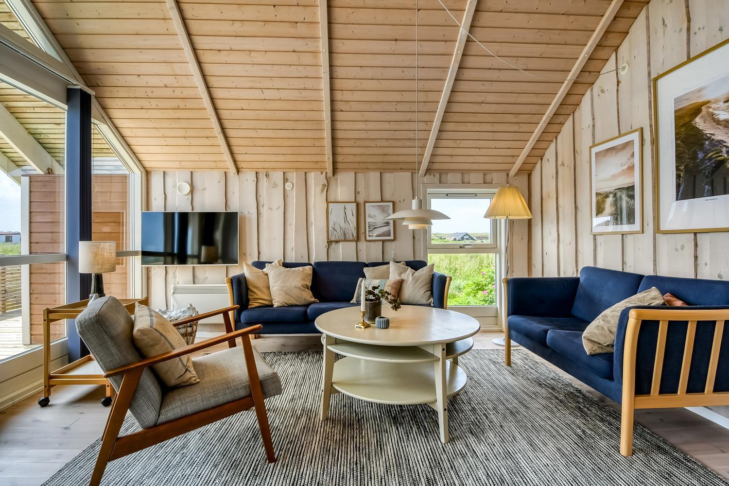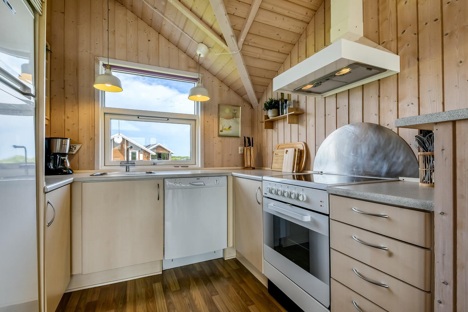 Så snart man har hentet nøglen til huset kan ferien begynde. Man bliver mødt af et hyggeligt indrettet hus på 70 m2 som er bygget 2005. En lille entré byder velkommen til et lyst og indbydende opholdsrum. Opholdsrummet består af en stor og godt udnyttet stue med loft til kip og et køkkenhjørne. I stuen er der et stort vinduesparti der giver et godt lysindfald og blik på den nye terrasse. Desuden er der hyggelige polstermøbler og fjernsyn med danske og tyske kanaler. Brændeovnen bidrager til god opvarmning og ekstra hygge på køligere dage, og lænestolen lige ved siden af indbyder til afslapning ved f.eks. at læse en bog. Køkkenhjørnet er veludstyret med blandt andet glaskeramisk komfur, emhætte, køle-/fryseskab, opvaskemaskine og mikroovn. I huset er der et fint lyst badeværelse med toilet, håndvask og bruser og der er også en vaskemaskine. Badeværelse opvarmes med gulvvarme. Til sidst er der tre hyggelige soveværelser. Et værelse er med dobbeltseng, det andet værelse er med to enkeltsenge og det sidste værelse er med en køjeseng.