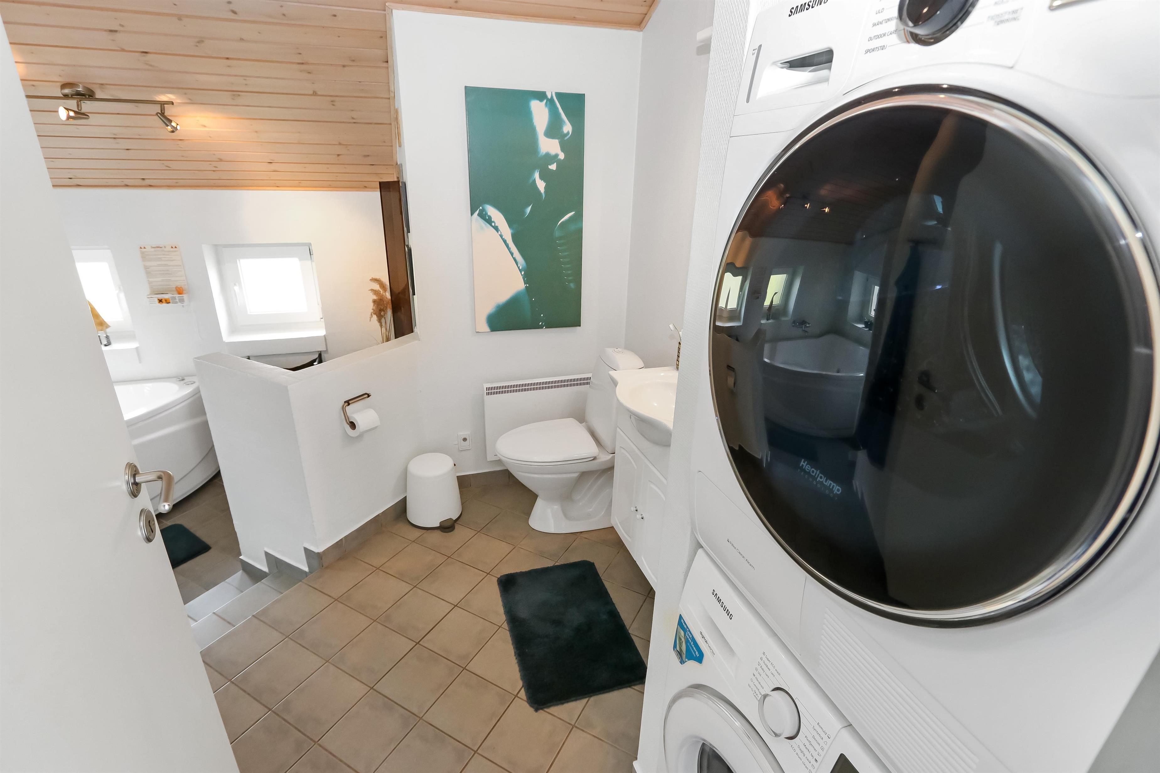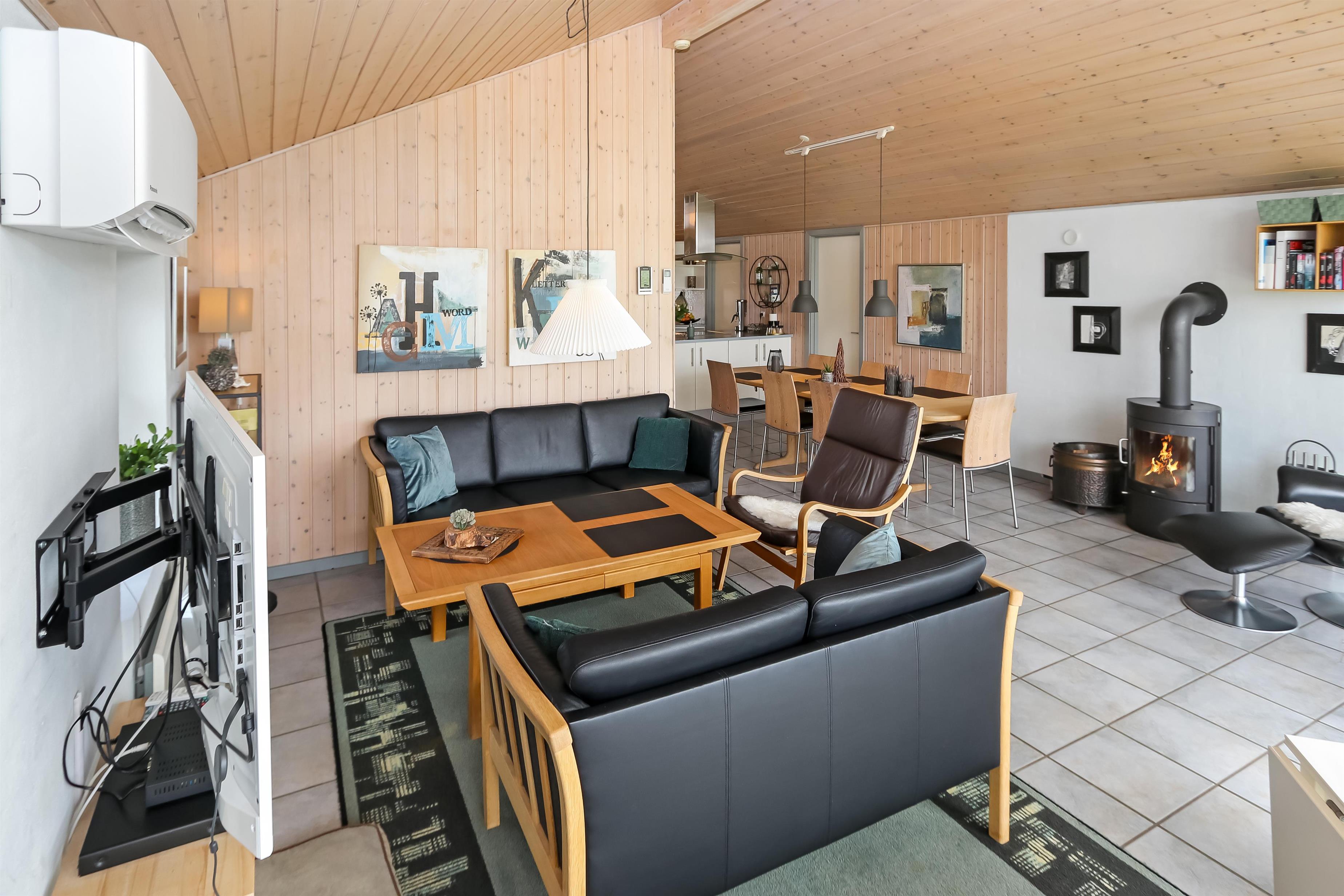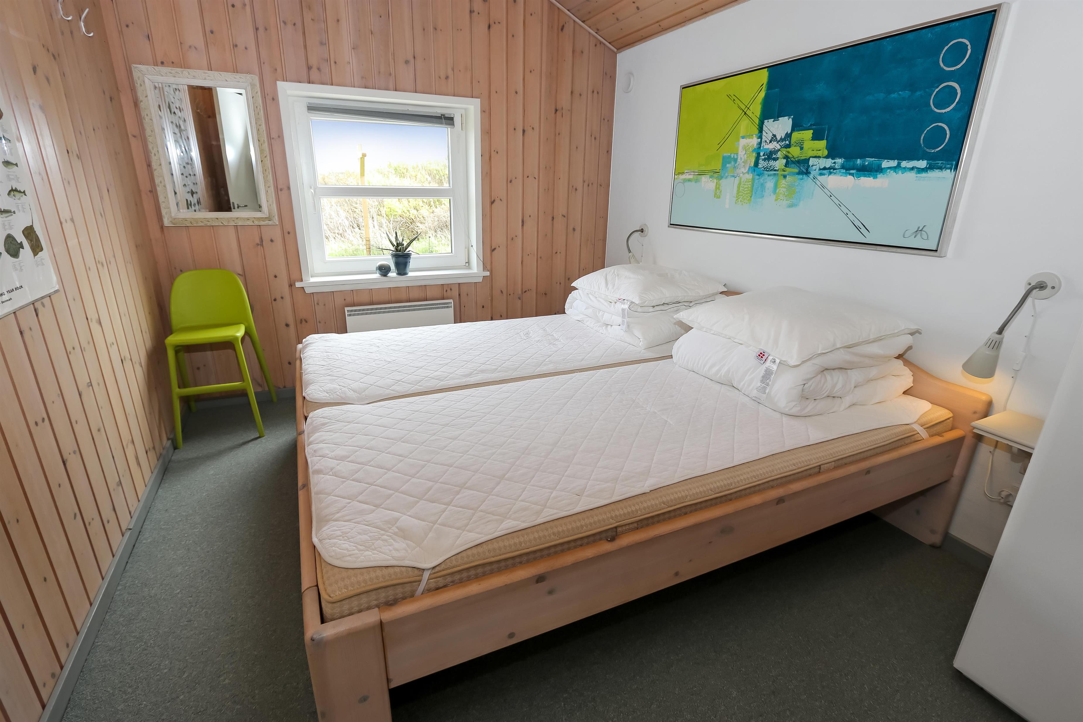 Godt udnyttet feriehus på ca. 105m2 som er bygget i 2003. Huset har 3 soveværelser (1DS, 1DS+2KS). Alle soverum har gulvtæpper. Huset er smagfuldt og praktisk indrettet i kvalitetsmaterialer og er holdt i flotte, afstemte farver. Allerede når I parkerer bilen lige ved huset bliver I klar over at det er noget specielt. Flot køkkenhjørne, byder jer velkommen. Køkkenhjørnet har alt i hårde hvidevarer og i service og køkkengrej. Der er keramiske kogeplader, emhætte, indbygningsovn, mikroovn, opvaskemaskine, køleskab samt separat fryser i teknikrums. I opholdsstuen er der bl.a. et dejligt spisebord tæt ved køkkenet, fladskærms-TV med tyske og danske kanaler, Chromecast, DVD-afspiller, bluetoothhøjtaler med mulighed for streaming fra din telefon eller medbragte device, læder møbler samt en hyggelig brændeovn der sammen med den opsatte varmepumpe er med til at minimere el-regningen. Opholdsrummene er bygget i kip og har praktiske klinkegulve. Det får huset til at fremstå luftigt, moderne og meget rengøringsvenligt. Flot badeværelse med toilet, håndvask, muret bruseniche, klinkegulv med gulvvarme, vaskemaskine, tørretumbler og nedsænket wellnesafdeling med spabad og direkte adgang til saunaen. Ekstra badeværelse med toilet, håndvask, bruser og klinkegulv med gulvvarme. Ikke ryger hus. Max 2 husdyr tilladt. Der er gratis brænde til brændeovnen i skuret