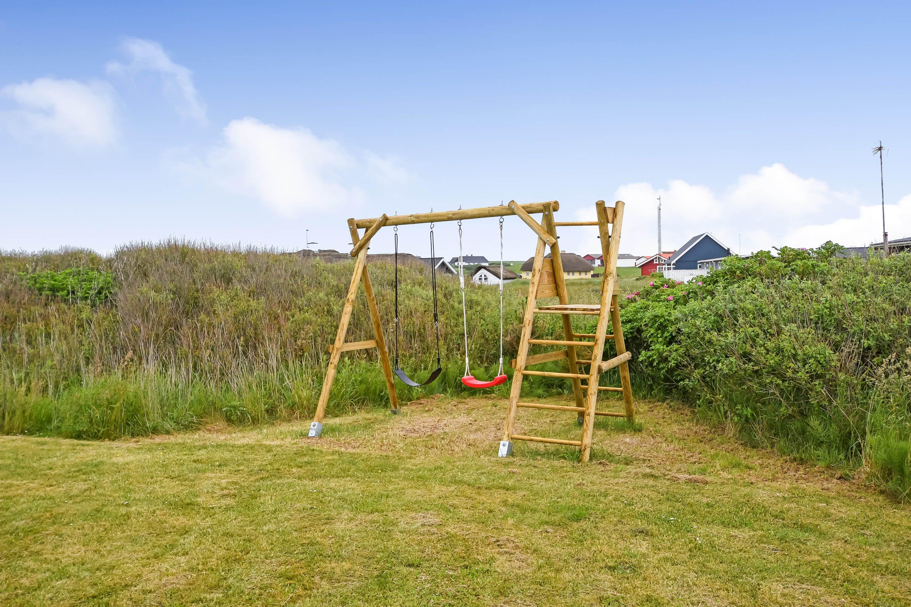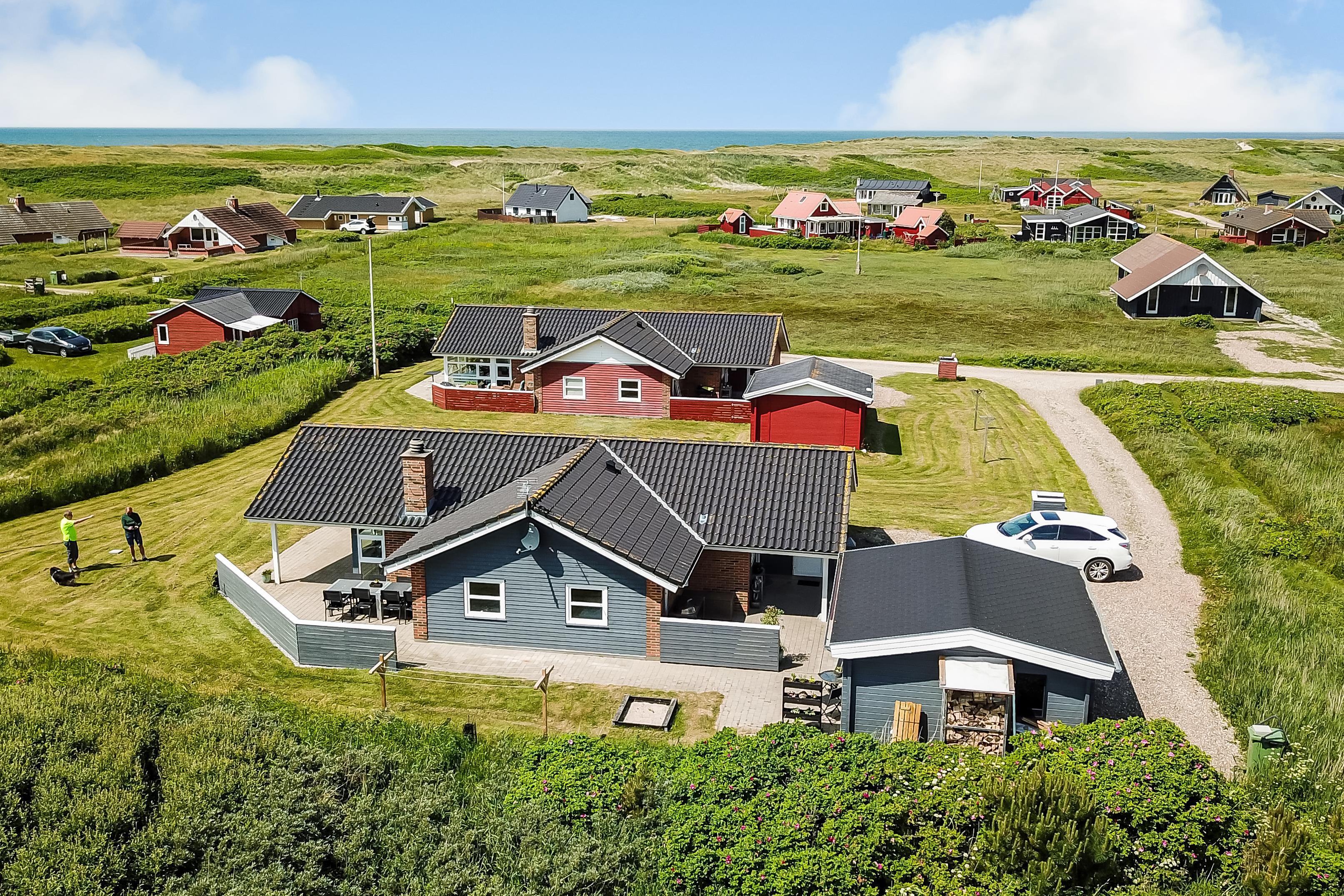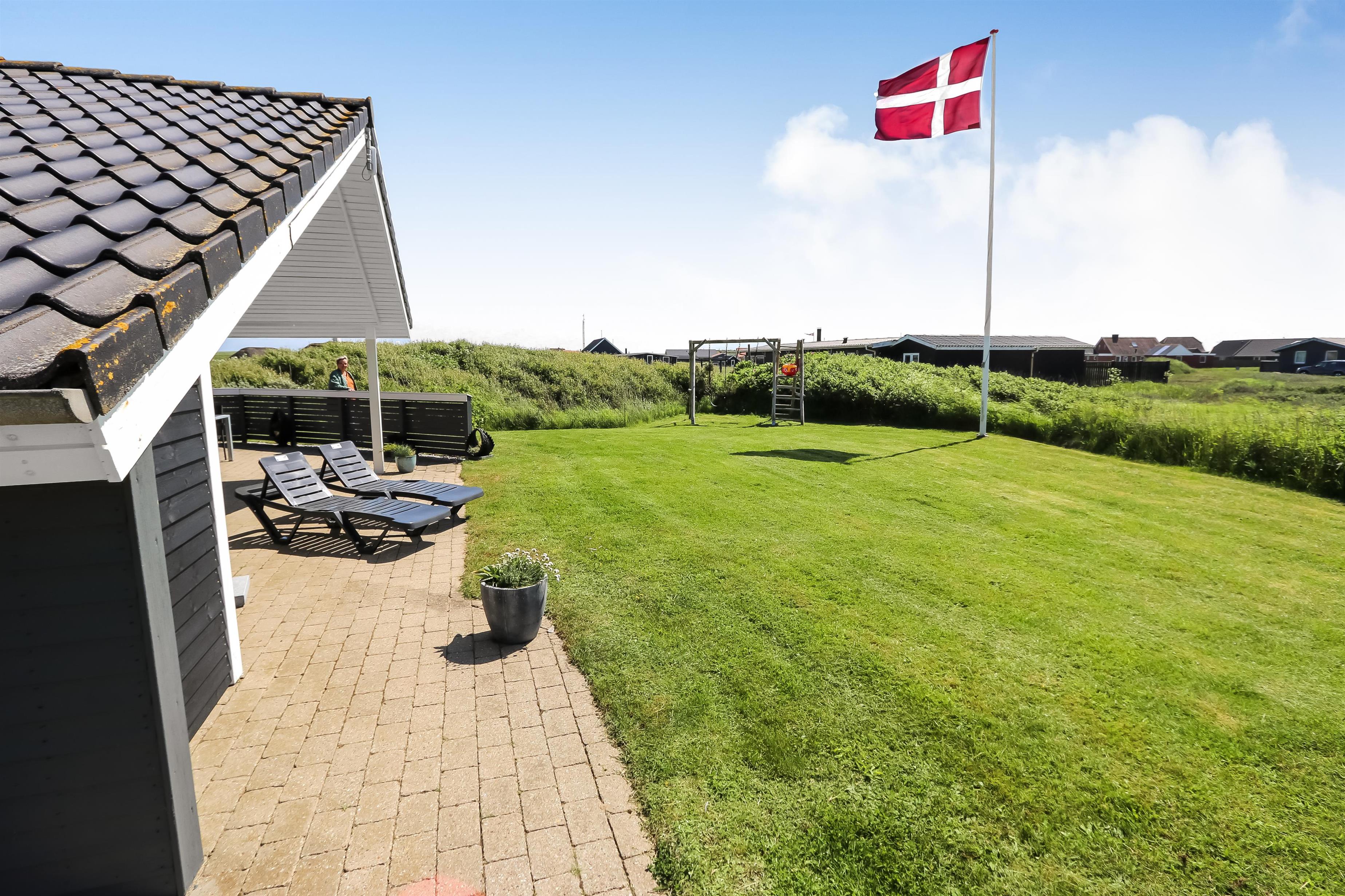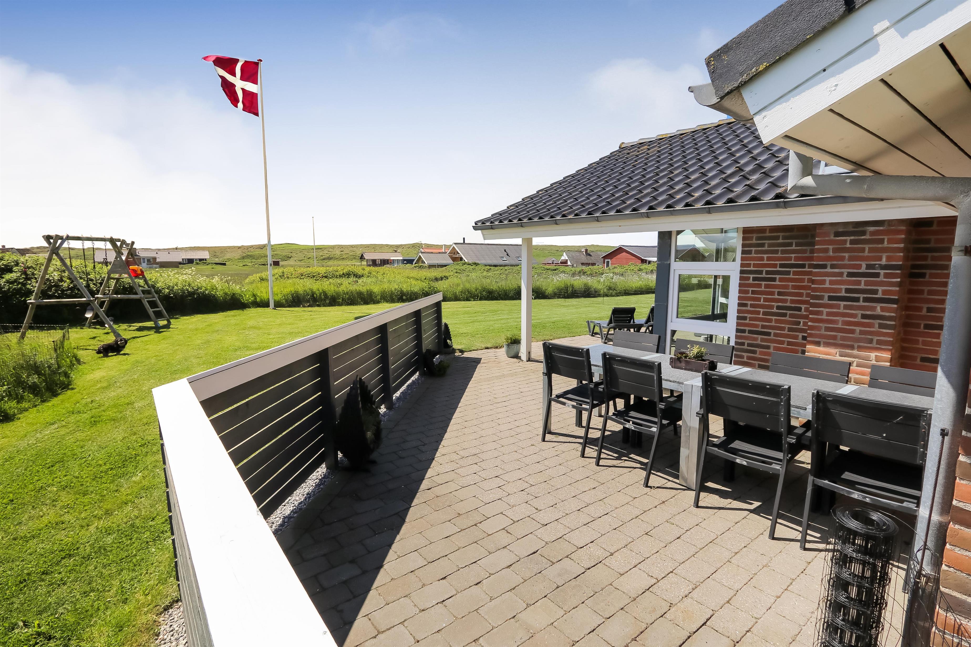 Huset ligger på en ca. 1.100 m2 stor, velholdt lukket grund i rolige omgivelser med rige muligheder for gå og cykelture. Der er kun ca. 300m til Ferring sø og ca. 300m til Vesterhavet. Der er utrolig gode terrasseforhold. Huset har i alt 3 fantastiske terrasser. Fra opholdsstuen er der udgang til dejlig, delvis overdækket og indhegnet terrasse samt en mindre solterrasse. Fra køkkenet er der også udgang til en dejlig, delvis overdækket terrasse. Der er altid sol på en af terrasserne og der er altid gode læ forhold. Det er en selvfølge at der er havemøbler, grill og liggestole som kan flyttes rundt efter behov. Alt i alt et særdeles attraktivt feriehus, med flot udsigt, der vil danne rammerne om jeres helt unikke ferie tæt ved Vesterhavet. Her er høj kvalitet og fantastiske omgivelser for de kræsne. Besøg de mange attraktioner og oplevelser som nås indenfor max 30 min eller besøg fiskerbyen Thyborøn eller den dejlige handelsby Lemvig med masser af specialbutikker. I Sommermånederne kan de mest nødvendige indkøb klares hos Bovbjerg Camping
