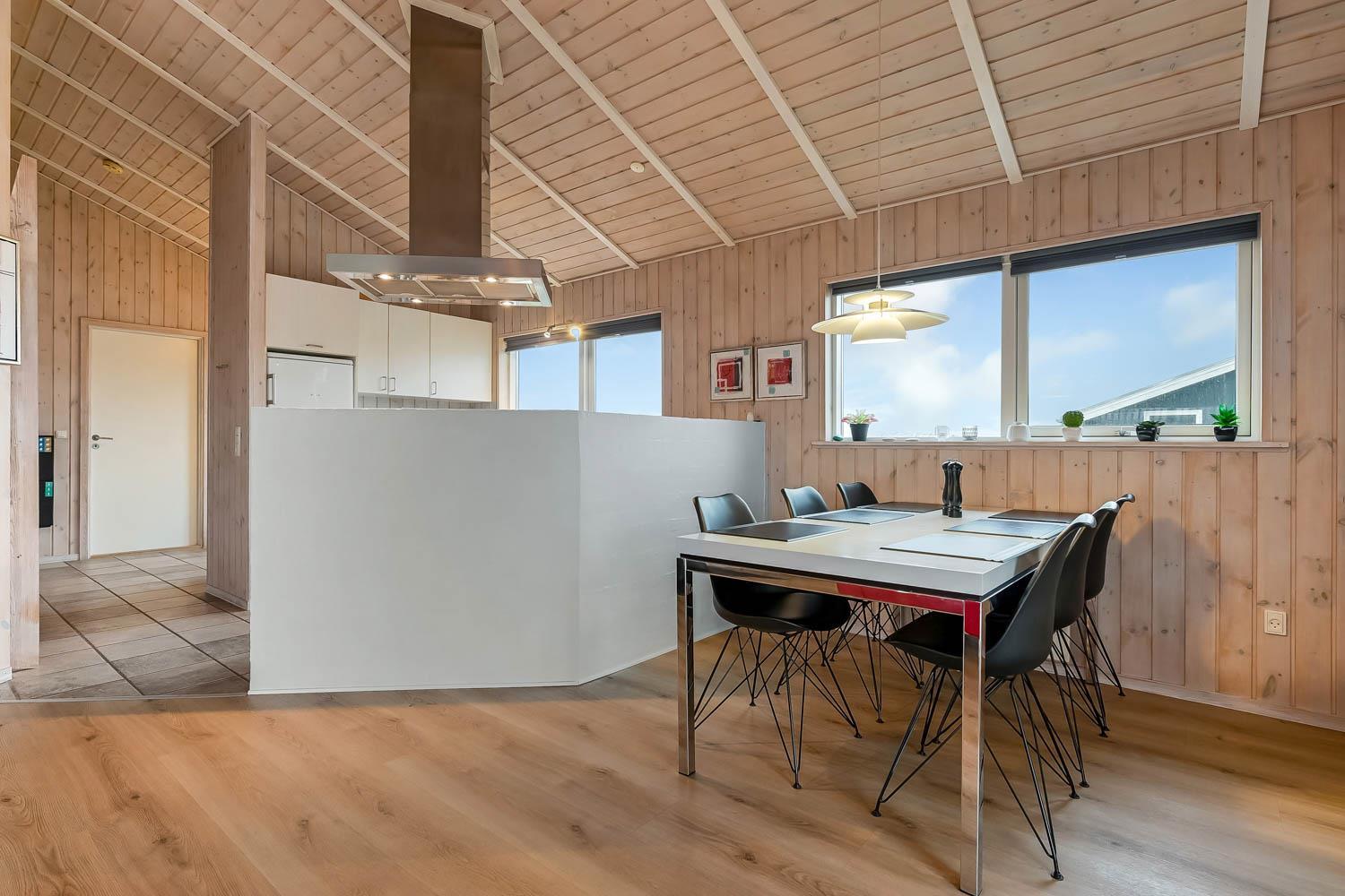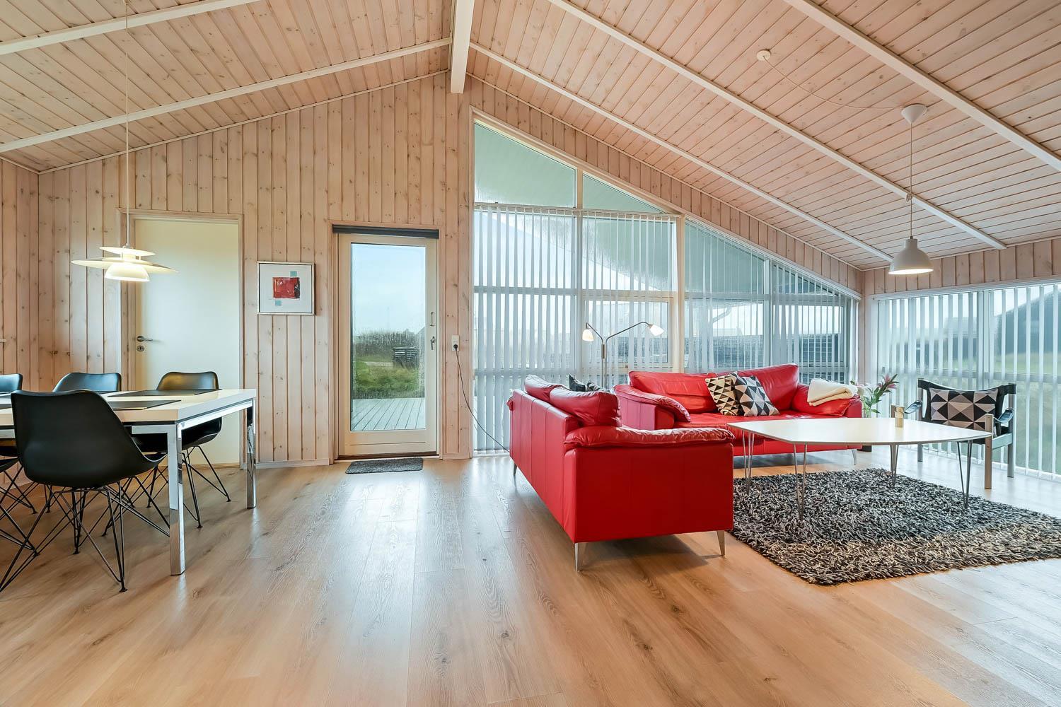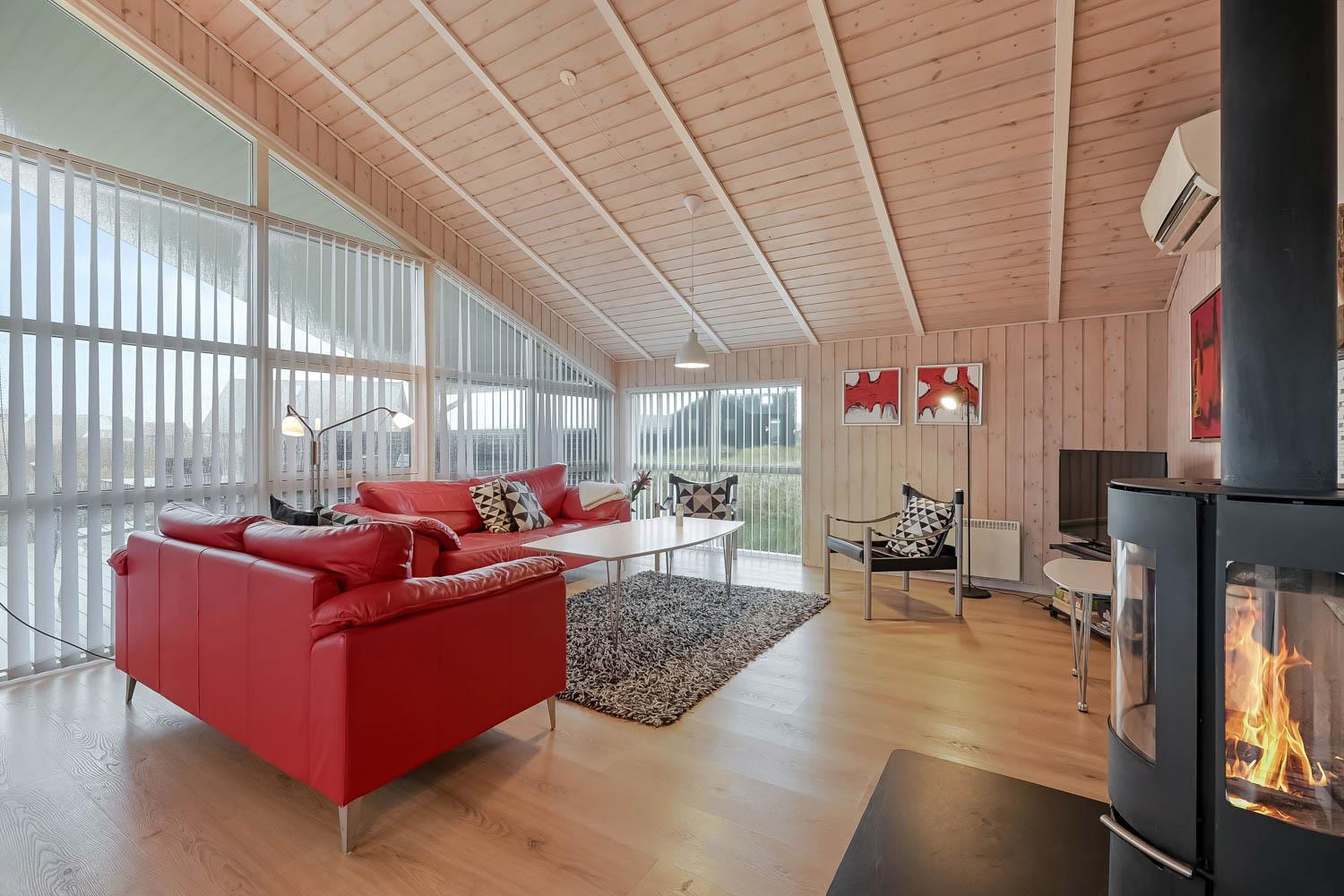 Veludstyret køkkenafdeling med bl.a. opvaskemaskine, mikroovn og køle-fryseskab, køkkenet er kombineret med husets dejlige stue, som er med komfortable møbler, fladskærms-TV med DR1 samt parabol til modtagelse af de tyske kanaler. Både stue og køkken er åbne til kip og det store vinduesparti mod terrasse giver et fantastisk lysindfald. Gulvbelægning i stue og værelser er træ, og køkken samt badeværelse er med klinker. Der er naturligvis også en skøn brændeovn, som kan nydes hele året rundt, desuden er der installeret en varmepumpe, som gør huset mere energibesparende. 3 soverum som er med 1DS + 1DS + 1DS. Husets badeværelse er med gulvvarme og har udover toilet og håndvask en skøn spa, hvor man kan få masseret kroppen. 1 husdyr er tilladt. Huset er et ikke-ryger hus.
