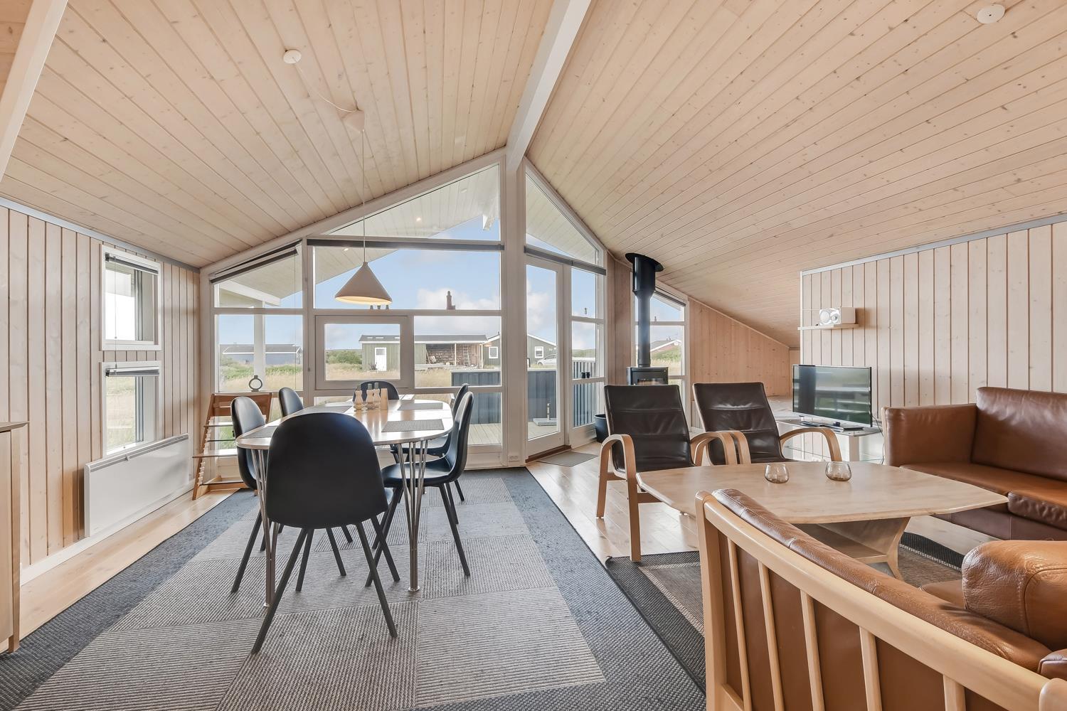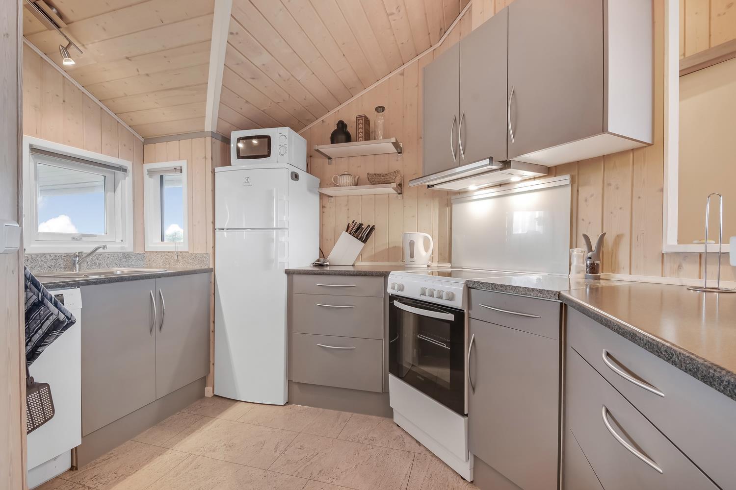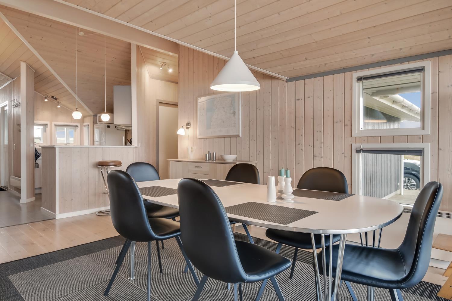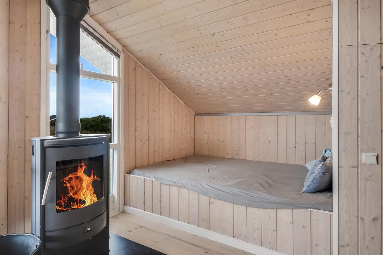 Virkelig dejligt og moderne feriehus bygget i 2005 med hvidlakerede lofte og vægge og trægulve med løse tæpper. Godt udstyret køkken med keramisk komfur, emhætte, køle-/fryseskab, opvaskemaskine, mikroovn og linoliumsgulv. Dejlig stue med lædermøbler, TV med cromecast og danske og tyske programmer, radio og en god brændeovn som sørger for en god og dejlig varme også på de kolde dage. Badeværelse med toilet, håndvask, bruser, spa og sauna. Ekstra badeværelse med toilet og håndvask, vaskemaskine og tørretumbler. 3 gode soverum: 1DS + 1DS + (1DS + 2K). Alkove med en sovemulighed. 2 husdyr er tilladt. Ikke rygerhus. 1 barnestol.