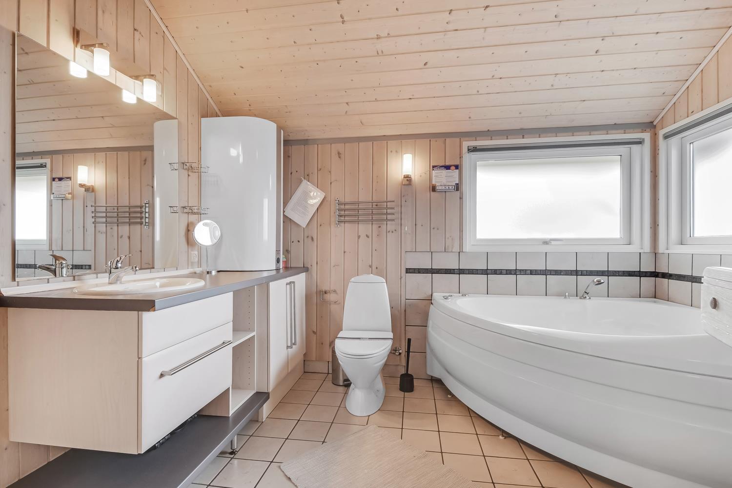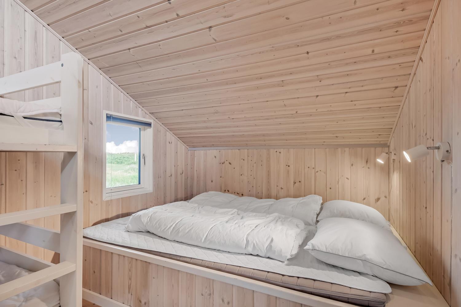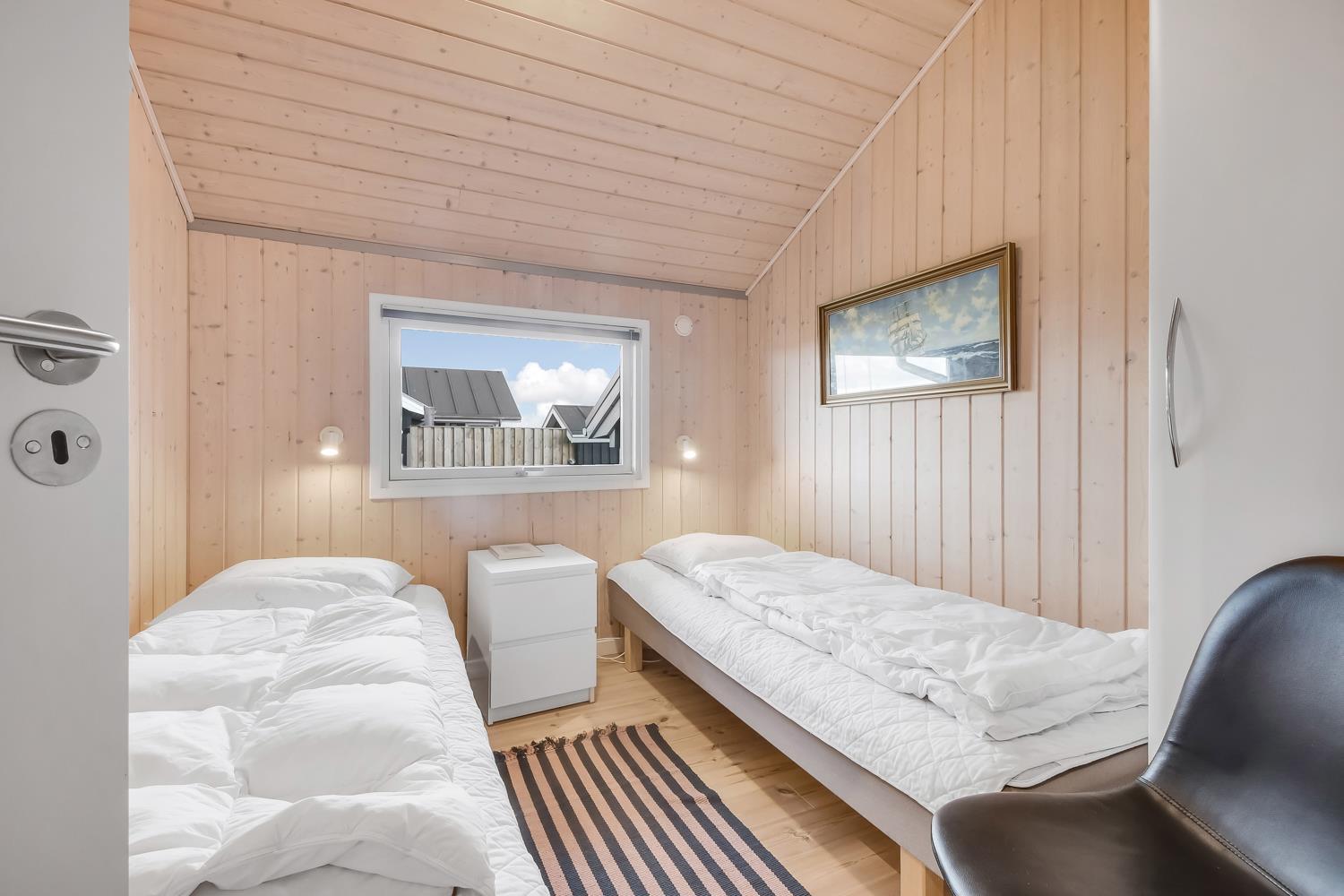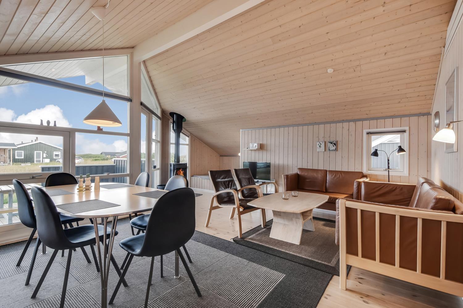 Virkelig dejligt og moderne feriehus bygget i 2005 med hvidlakerede lofte og vægge og trægulve med løse tæpper. Godt udstyret køkken med keramisk komfur, emhætte, køle-/fryseskab, opvaskemaskine, mikroovn og linoliumsgulv. Dejlig stue med lædermøbler, TV med cromecast og danske og tyske programmer, radio og en god brændeovn som sørger for en god og dejlig varme også på de kolde dage. Badeværelse med toilet, håndvask, bruser, spa og sauna. Ekstra badeværelse med toilet og håndvask, vaskemaskine og tørretumbler. 3 gode soverum: 1DS + 1DS + (1DS + 2K). Alkove med en sovemulighed. 2 husdyr er tilladt. Ikke rygerhus. 1 barnestol.