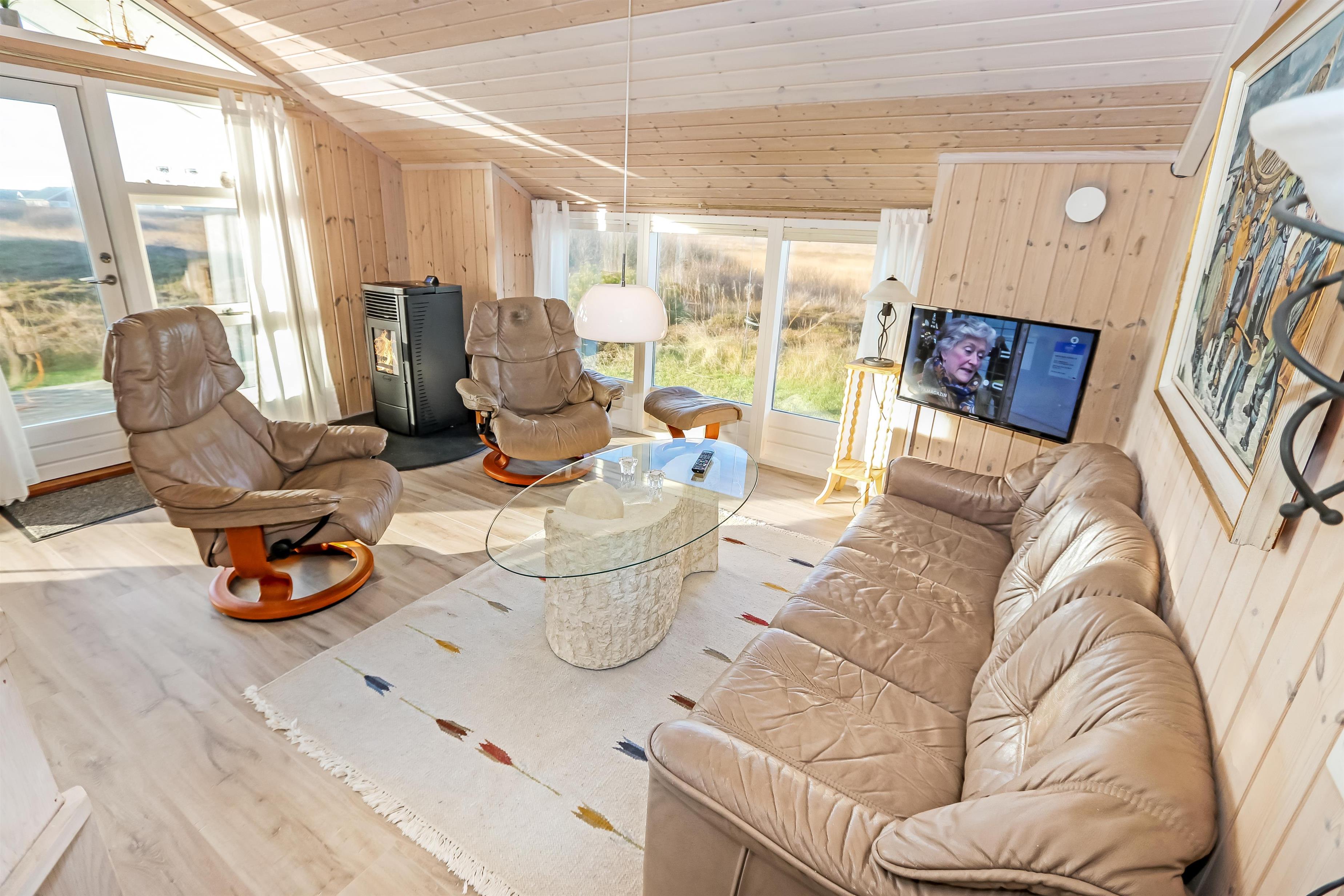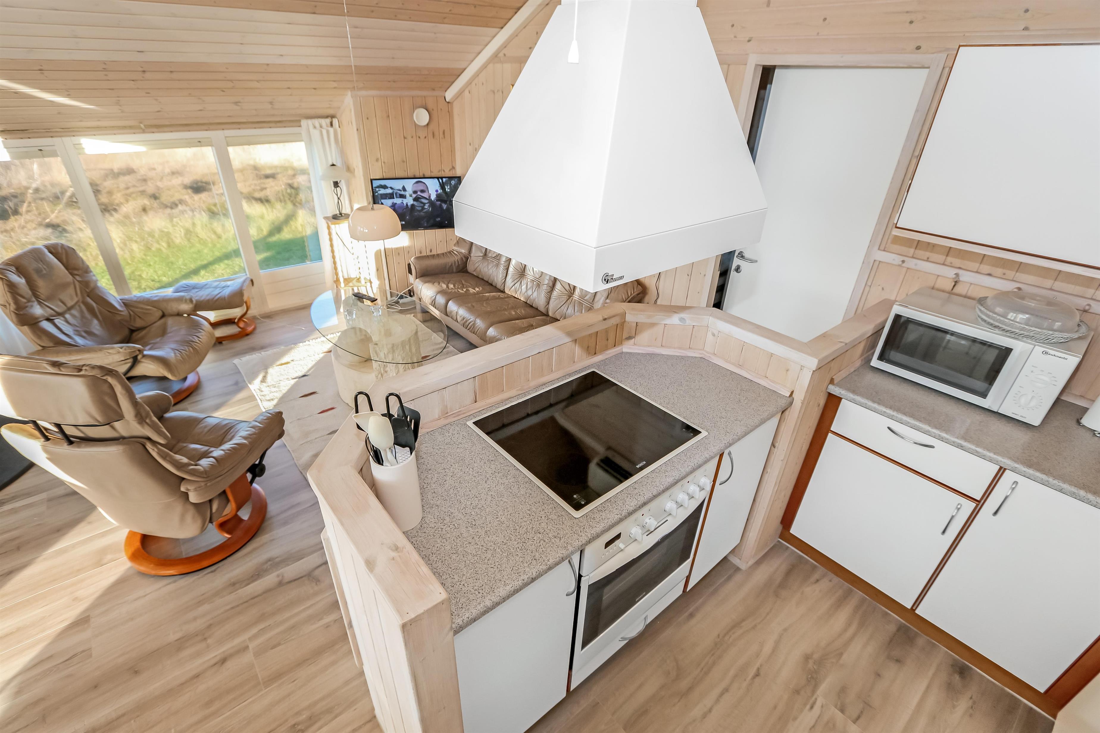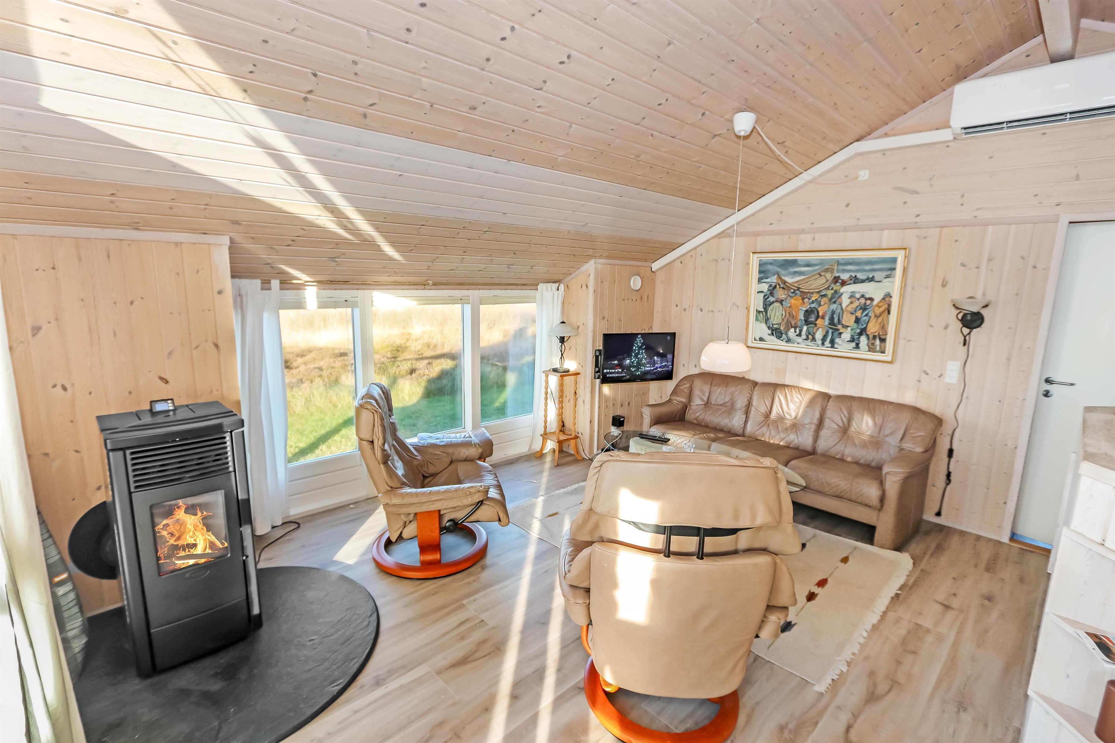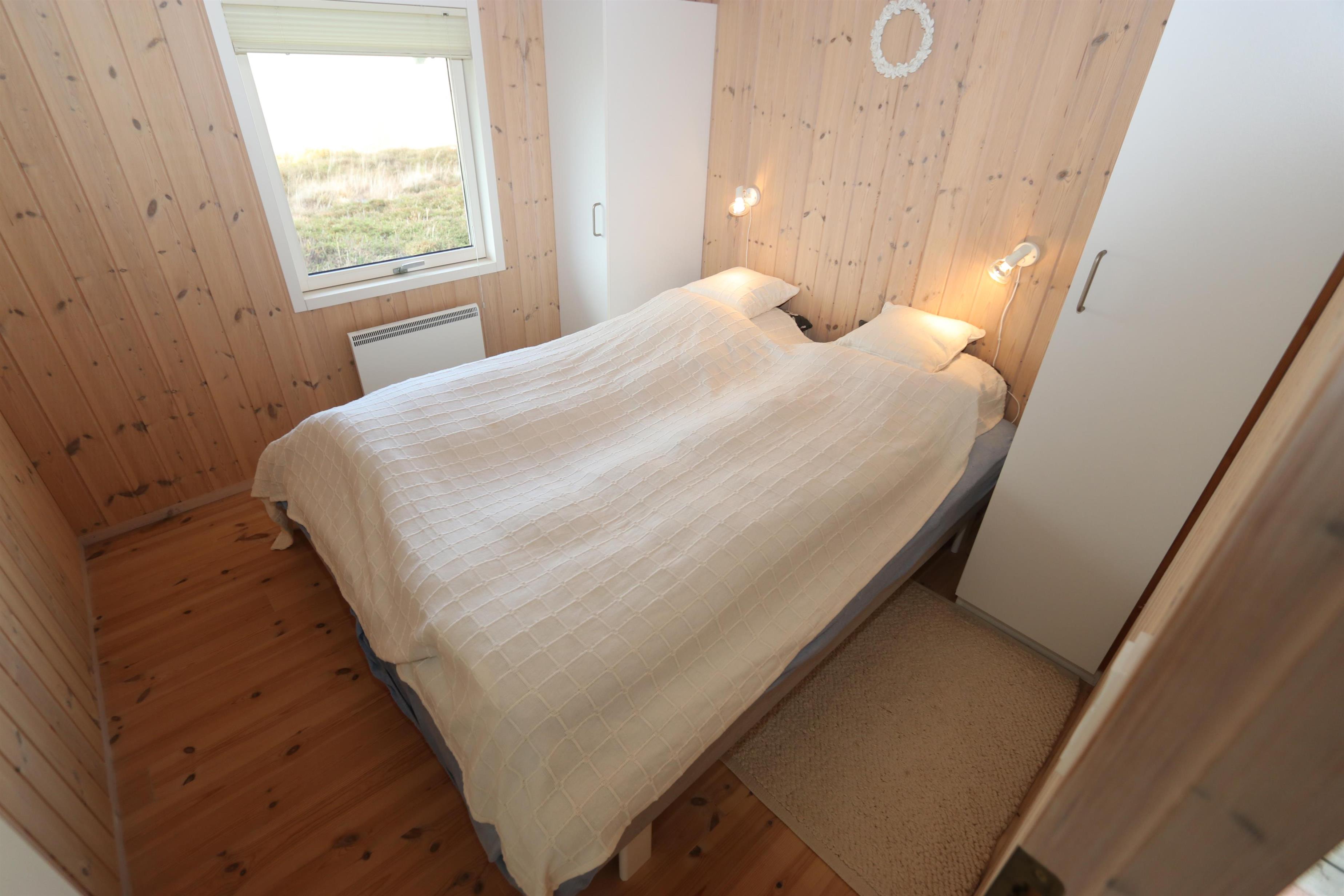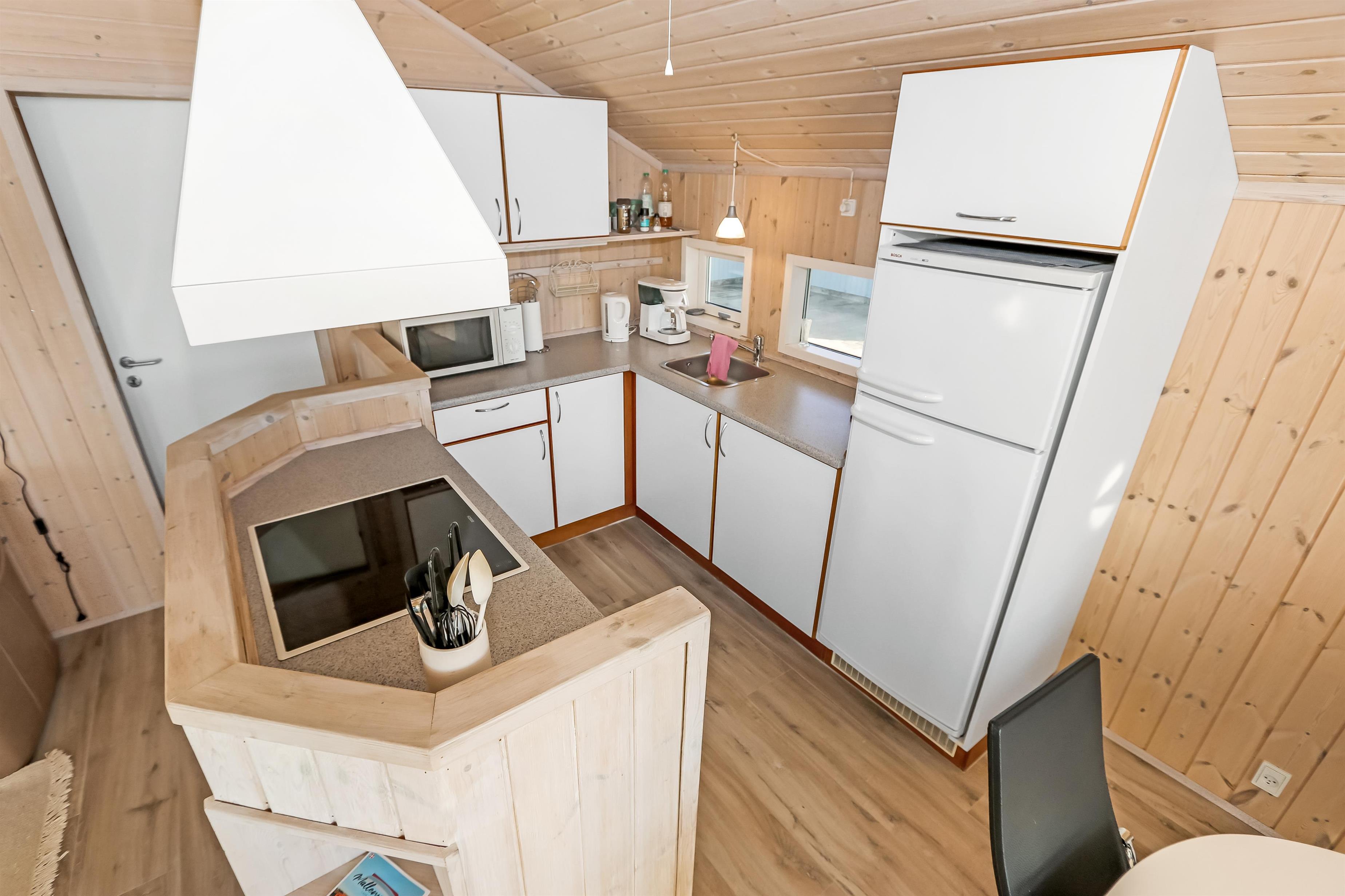 Godt udnyttet feriehus på ca. 64 m2 som er bygget i 2002. Huset har 2 soveværelser (1DS+1KS) + en alkove i stuen til glæde for børn og barnlige sjæle. Huset er praktisk indrettet. En lille entré byder jer velkommen. Køkkenhjørne med komfur med glaskeramiske kogeplader, emhætte, opvaskemaskine og køleskab med lille fryseboks. I opholdsstuen er der spisebord tæt ved køkkenet, nye møbler, TV med tyske og danske kanaler, samt en hyggelig stokerfyr (fungerer som en brændeovn, der er piller i ovnen til start og herefter skal ekstra købes hos Jem og Fix) samt varmepumpe. Badeværelse med toilet, håndvask, bruseniche, vaskemaskine og klinkegulv med gulvvarme. Der er praktiske trægulve i ophold- og soverum. Ikke ryger hus. Max 1 husdyr tilladt.