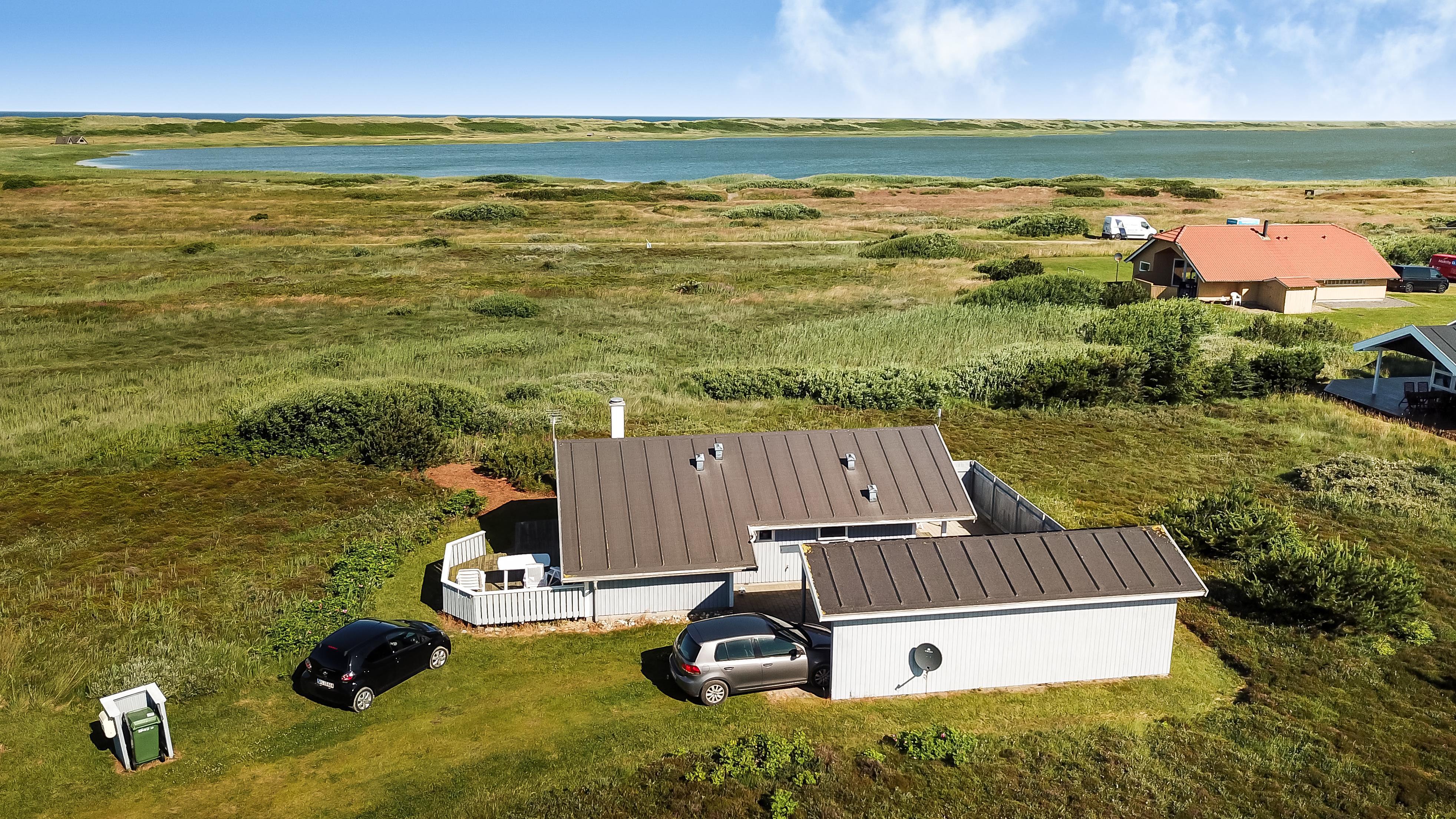 Hyggeligt, mindre træhus med udsigt til Ferrings Sø med de høje klitter ved Vesterhavet i baggrunden. Gratis internet. Perfekt til par men også til den lille familie.