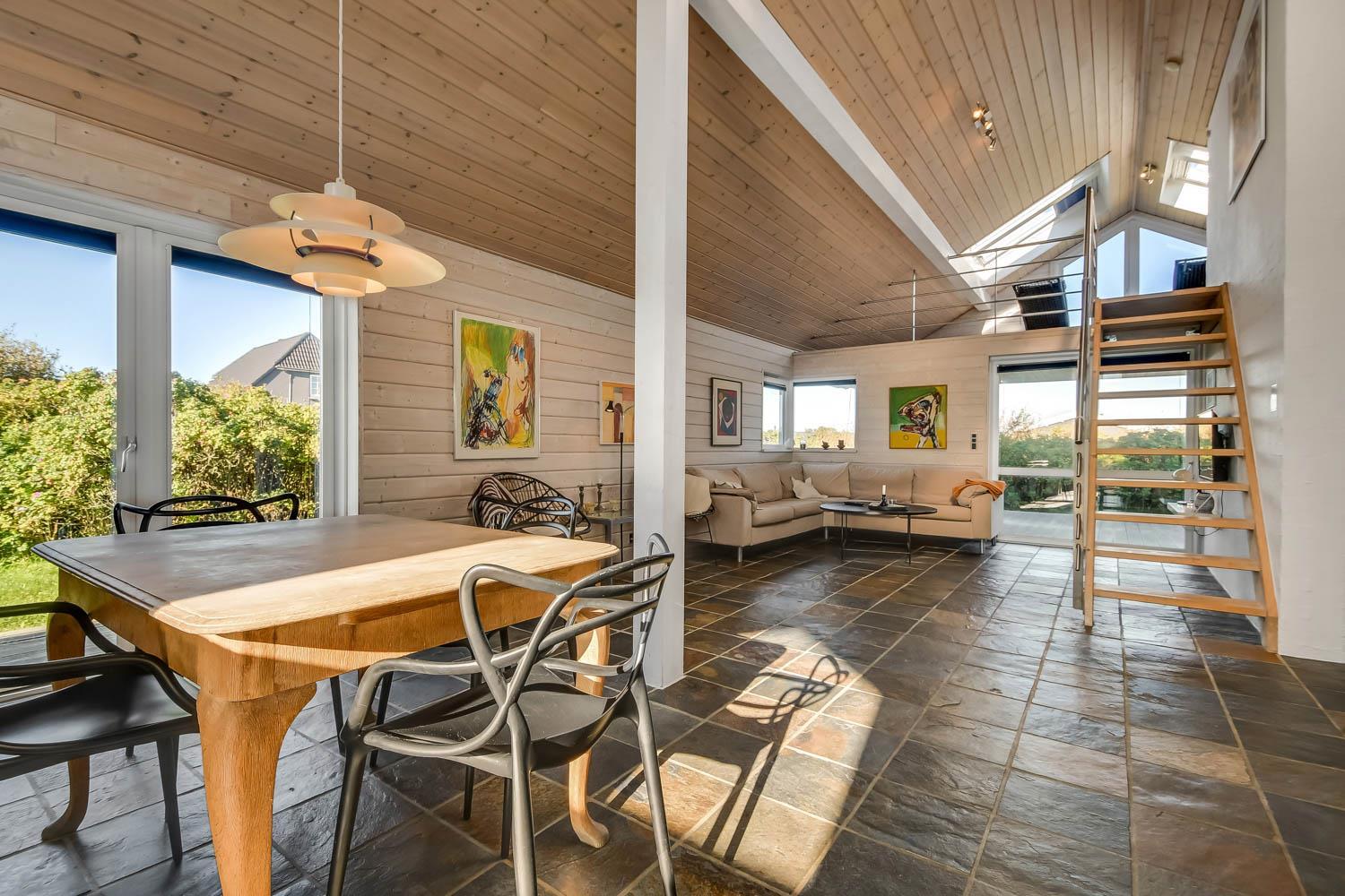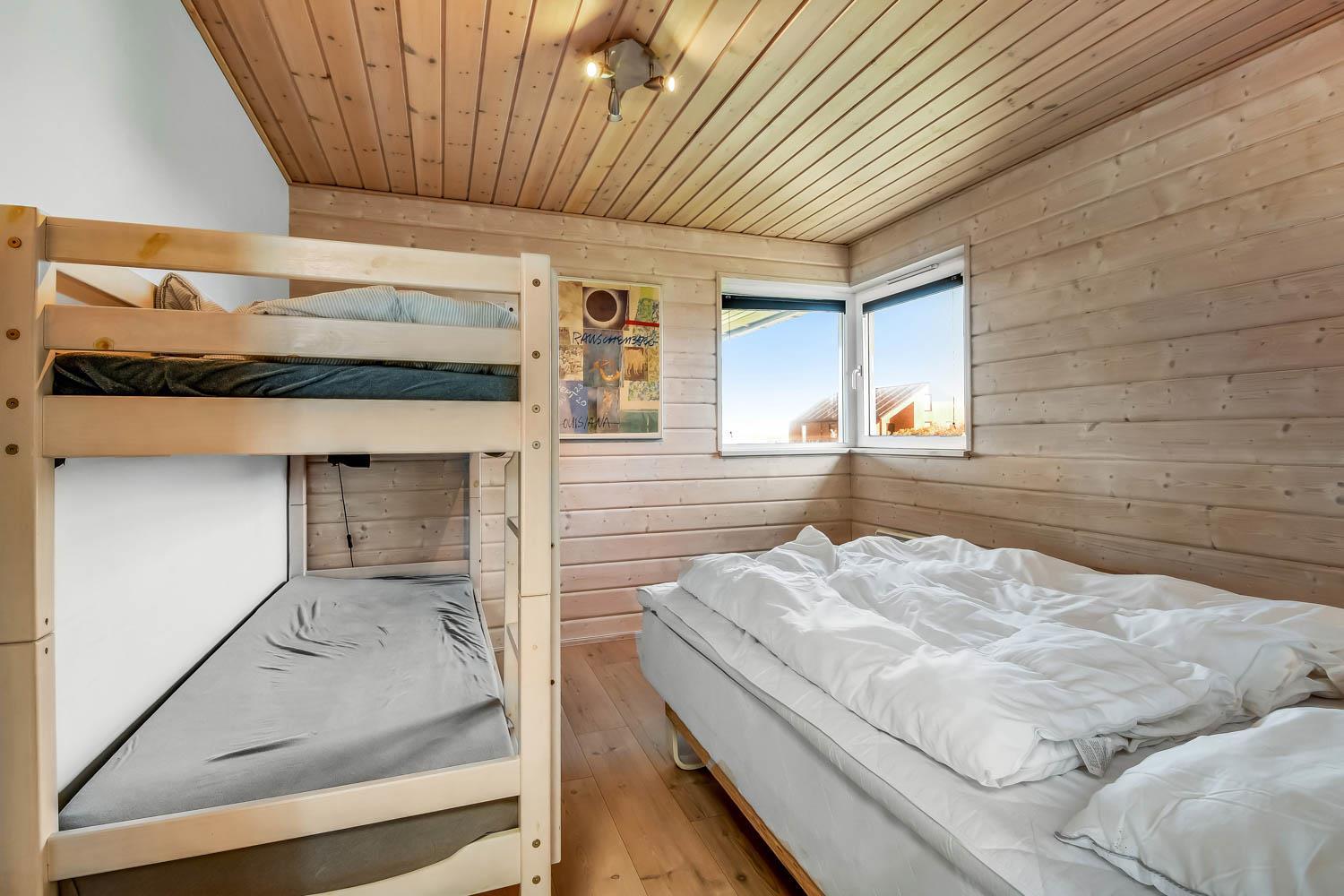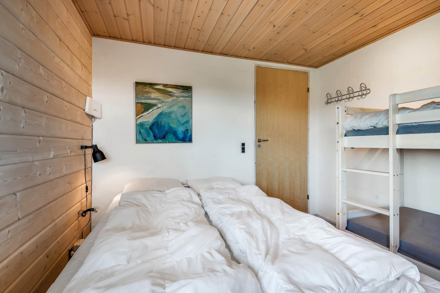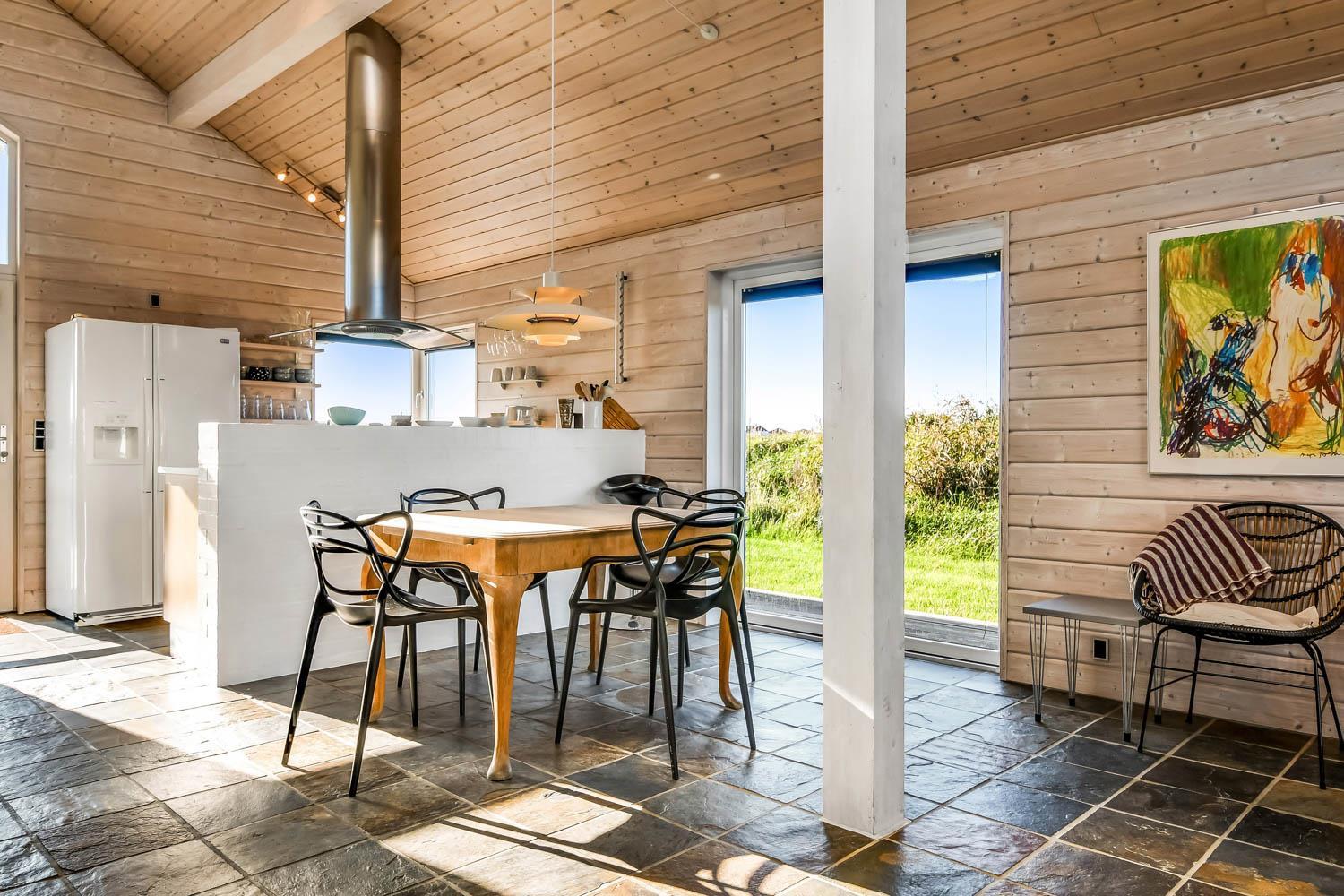 Godt udnyttet feriehus på ca. 93 m2 som er bygget i 2007. Huset har 2 soveværelser (1DS, 1DS+1KS). I huset er der også en hems, der er indrettet som en lille hule er med 2 skummadrasser og et med lille tv. Hemsen er til stor begejstring for mange børn og barnlige sjæle. Huset er moderne, smagfuldt og praktisk indrettet i med kvalitetsmaterialer og er holdt i flottet, afstemte farver. Allerede når i parkerer bilen lige ved huset bliver i klar over at det er noget specielt. En lille entré som er kombineret med køkkenhjørnet, byder jer velkommen. Køkkenhjørne har alt i hårde hvidevarer og i service og køkkengrej. Der er keramiske kogeplader, emhætte, indbygningsovn, opvaskemaskine, amerikansk køleskab/fryseskab. I opholdsstuen er der bl.a. et dejligt spisebord tæt ved køkkenet, faldskærms-TV med tyske og danske kanaler, Apple TV, dejlige polster hjørnesofa samt en hyggelig brændeovn. Opholdsrummene er bygget i kip og har praktiske klinkegulve i skifer med gulvvarme. Det får huset til at fremstå luftigt, moderne og meget rengøringsvenligt. Flot badeværelse med toilet, håndvask, muret bruseniche og klinkegulv med gulvvarme. Ekstra toilet ligeledes med toilet, håndvask, klinkegulv med gulvvarme samt vaskemaskine. Ikke ryger hus. Max 1 husdyr tilladt.