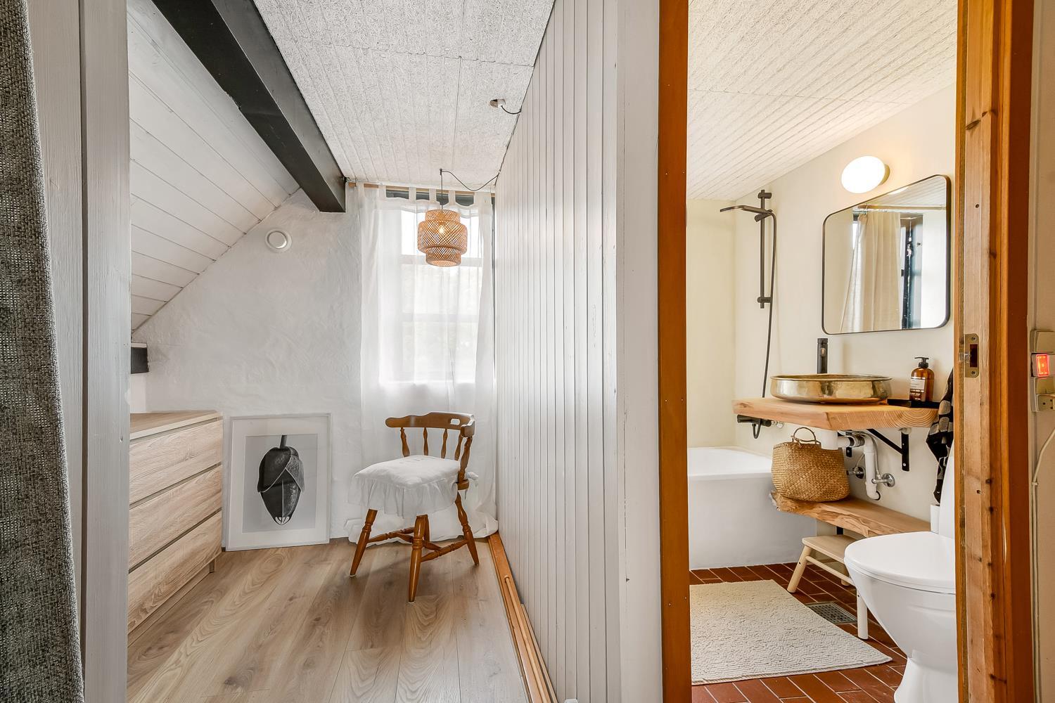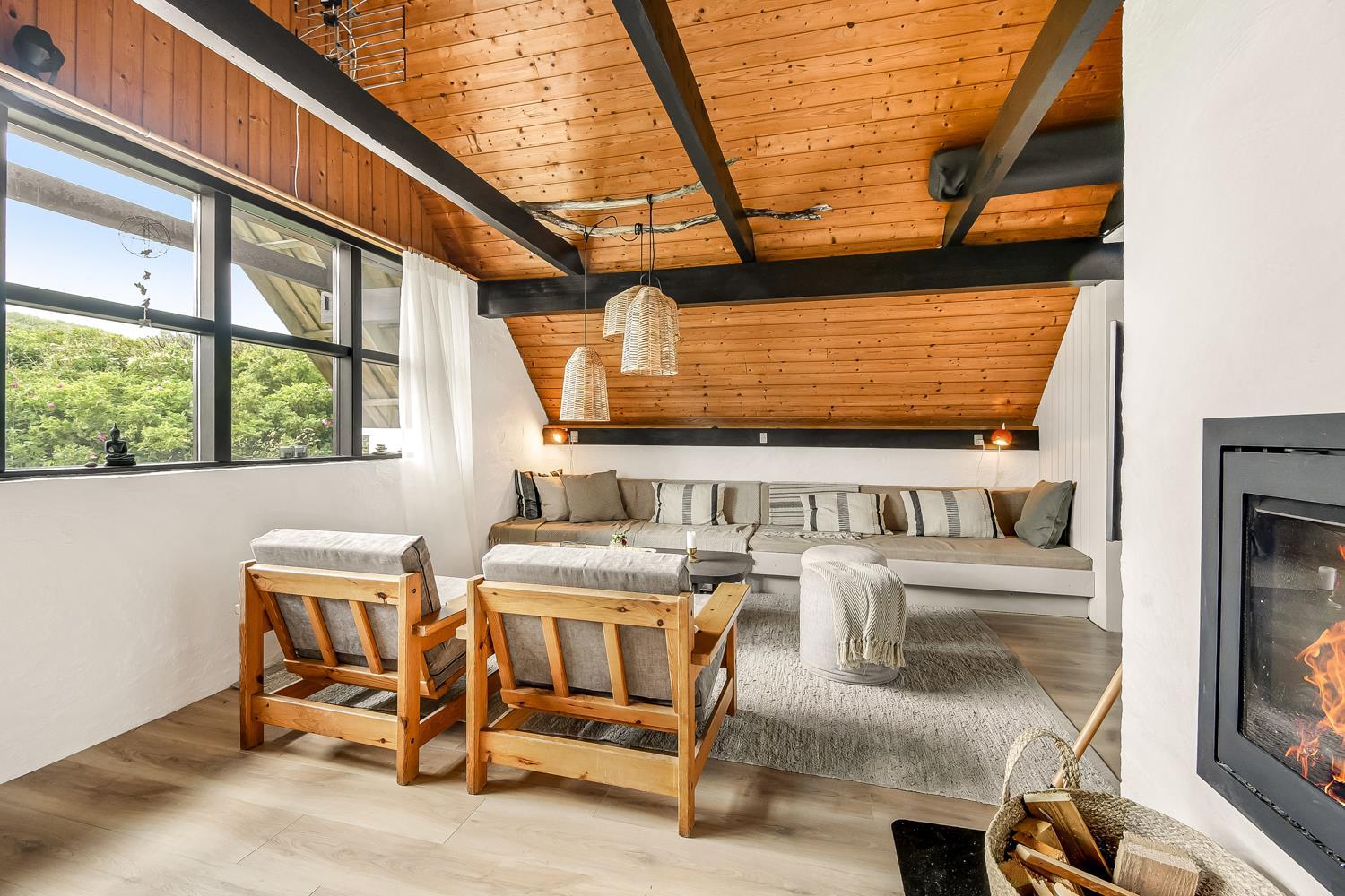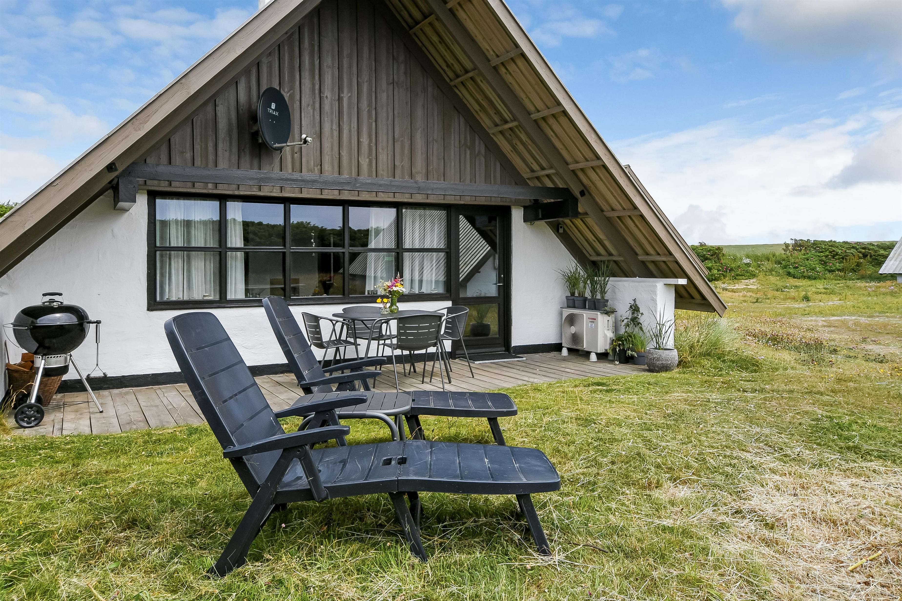 Fra opholdsstuen er der udgang til en lille, overdækket terrasse med havemøbler, 2 solvogne og Weber kulgrill. Huset er en del af Fjaltring Ferieby som består af 25 næsten identiske A-huse fordelt i 5 cirkler. Hele Feriebyen ligge i en dejlig ”gryde” i det fredede klitlandskab kun ca. 200m fra Vesterhavet. Ved fælleshuset er der el-bil-oplader til rådighed. Nyd en økonomisk ferie i et enkelt feriehus med en helt unik beliggenhed. Parker bilen og nyd at I resten af ferien kan gå til stranden på under 5 minutter. Oplev det brusende Vesterhav som hverdag byder på nye oplevelser. Gå en tur eller dyrk den daglige motion langs med havet, i det smukke landskab eller udforsk områdets mange andre muligheder.