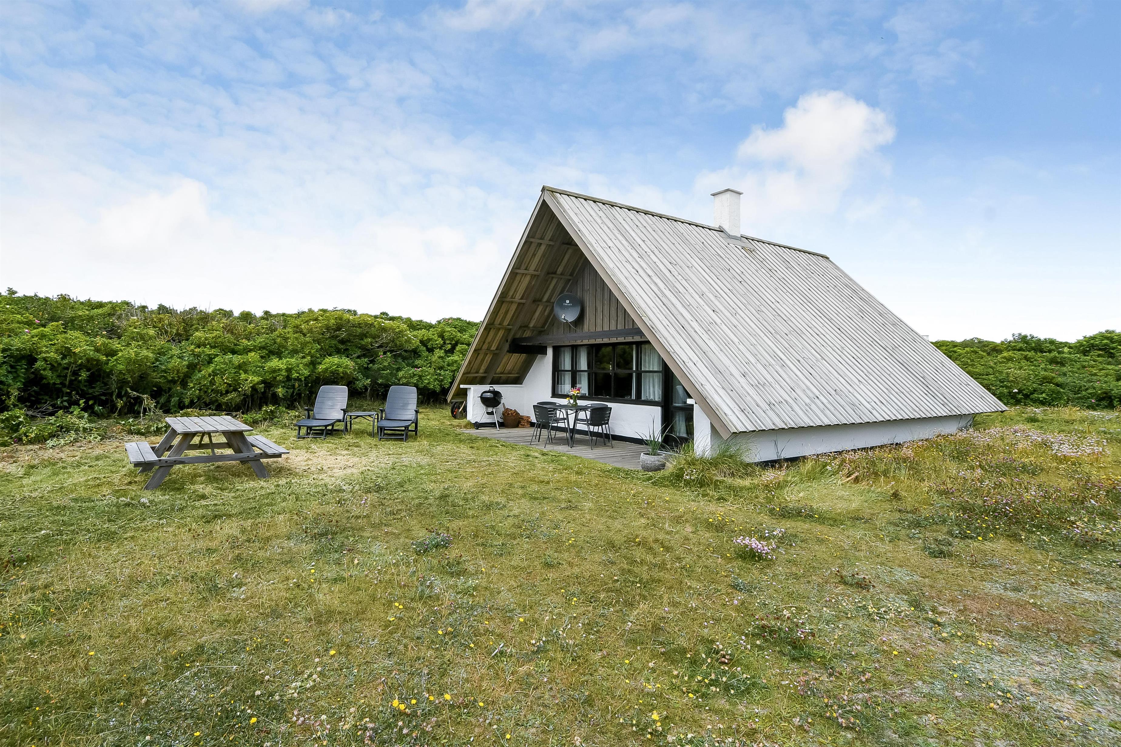 Fantastisk beliggende, ældre sommerhus med internet. Beliggende i første klitrække lige bag klitterne i den rolige og særegne Fjaltring Ferieby. Tættere på Vesterhavet kommer man ikke.