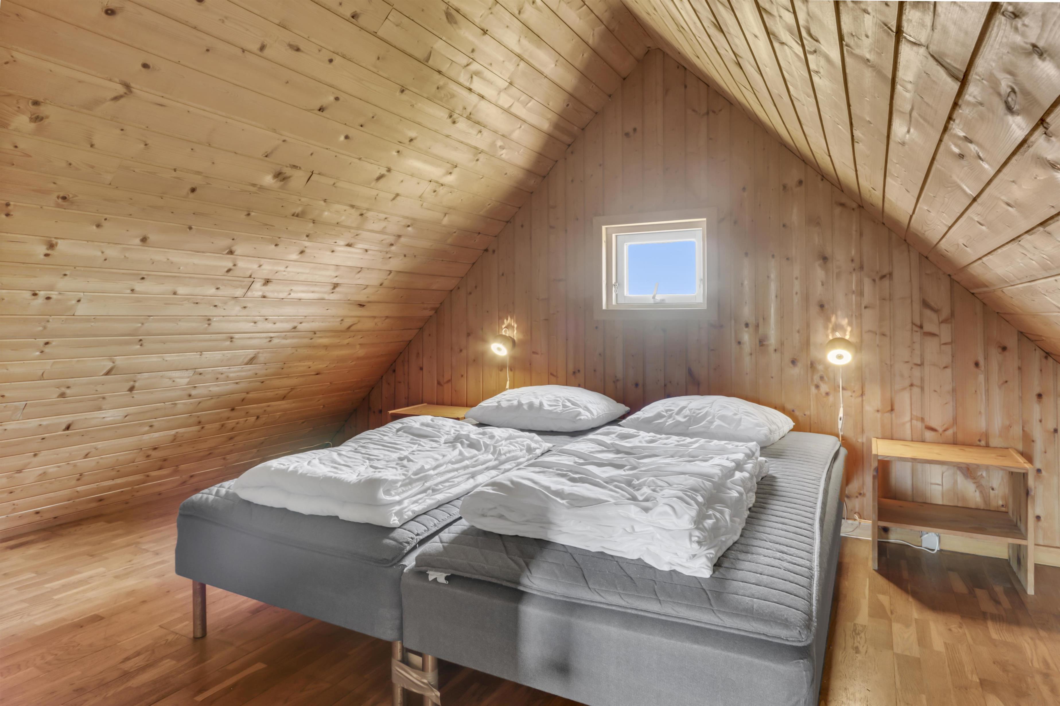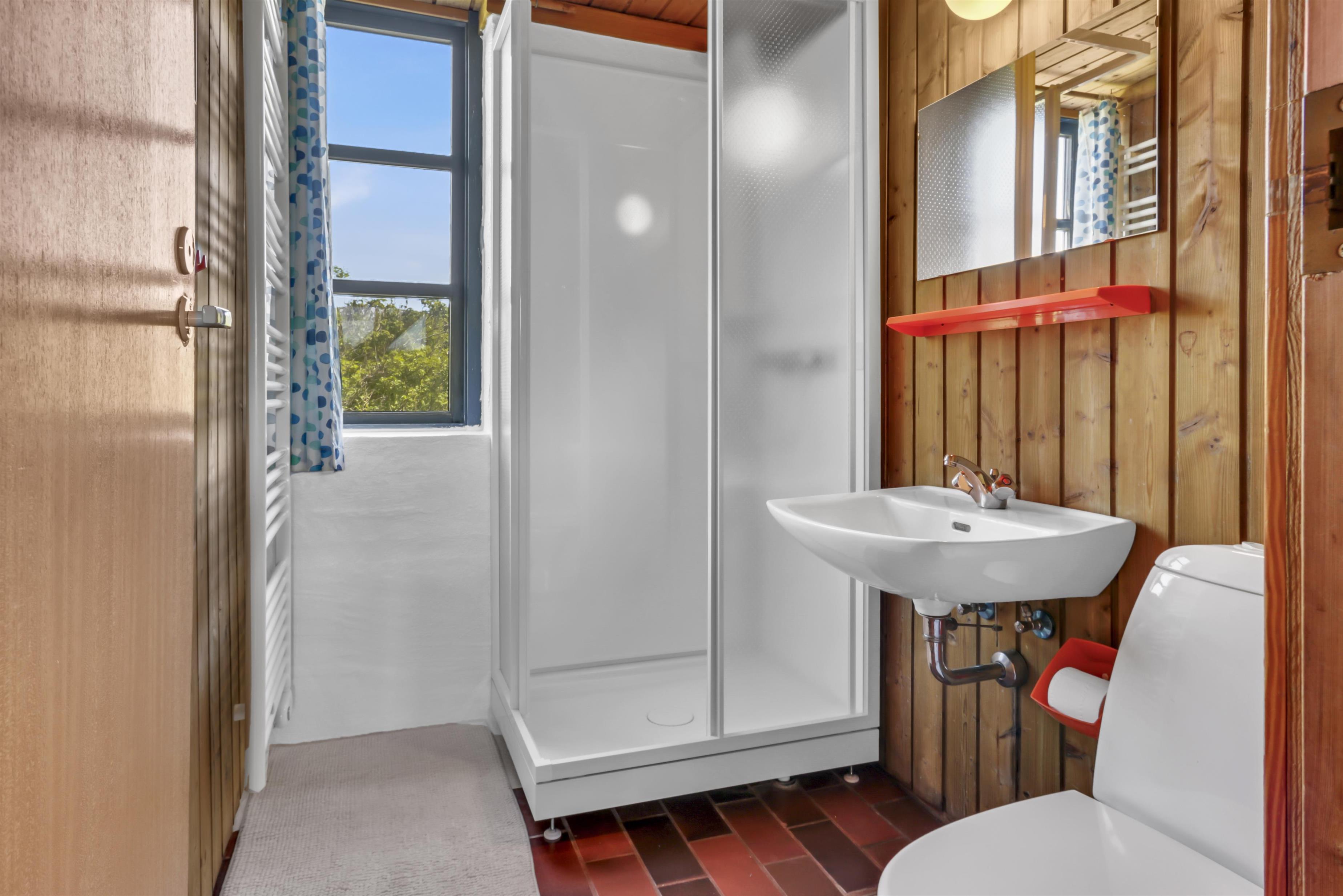 Rustikt sommerhus på100m2 med 2 soverum (1DS, 4ES). 2 åbne soverum på første sal med 1 DS og 2ES. sal. 2 ES i vinkel i værelse i stueplan. Huset er enkelt indrettet med en opholdsstue med polstermøbler, TV med danske og tyske programmer og pejs, varmepumpe. Enkelt køkkenhjørne med elektrisk komfur med 4 kogeplader og køleskab med lille fryseboks. Badeværelse med toilet, håndvask og bruser. Klinkegulve i stueplan. Ved huset er der en ladestander til elbiler. Husdyr er ikke tilladt.