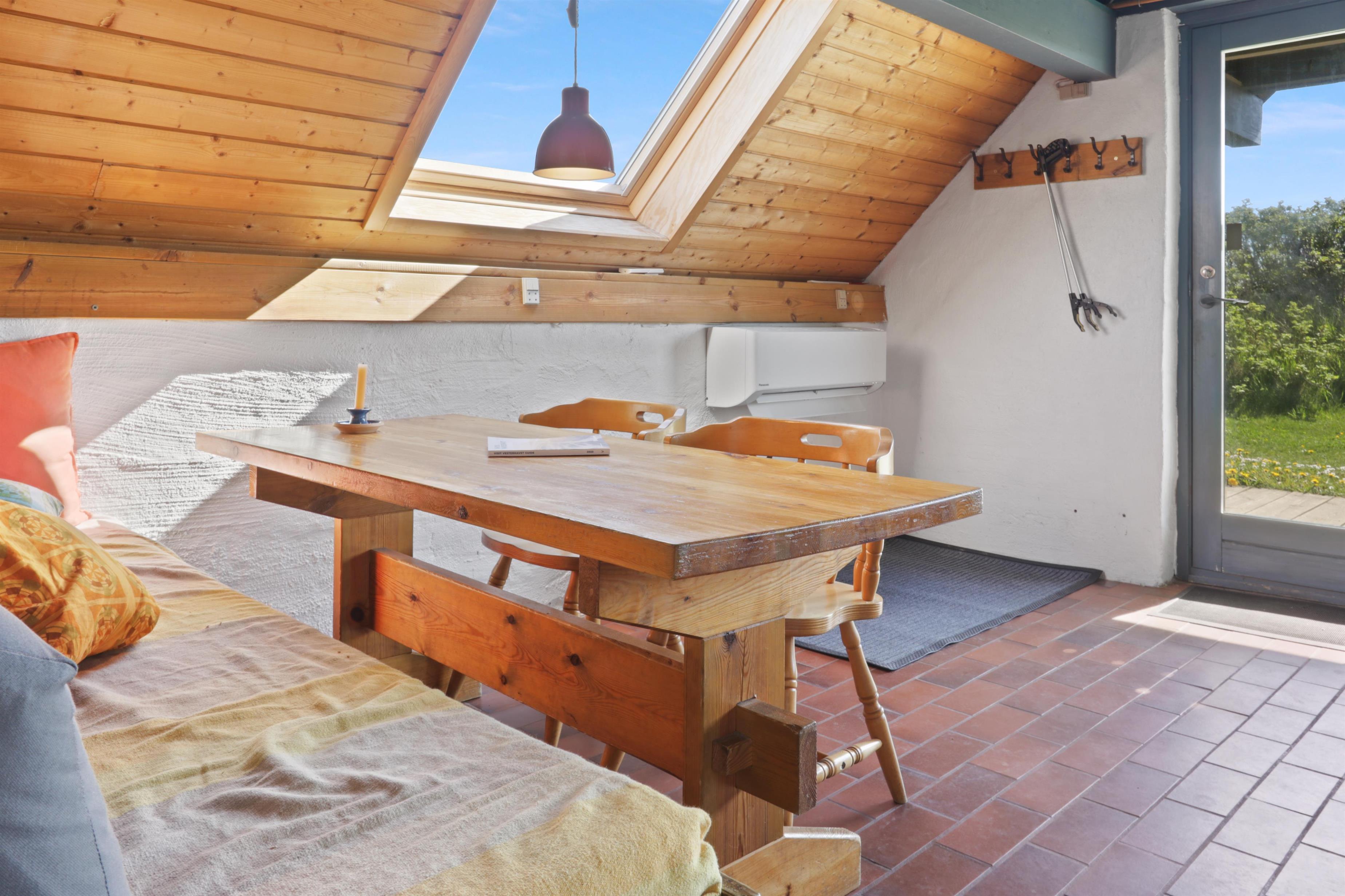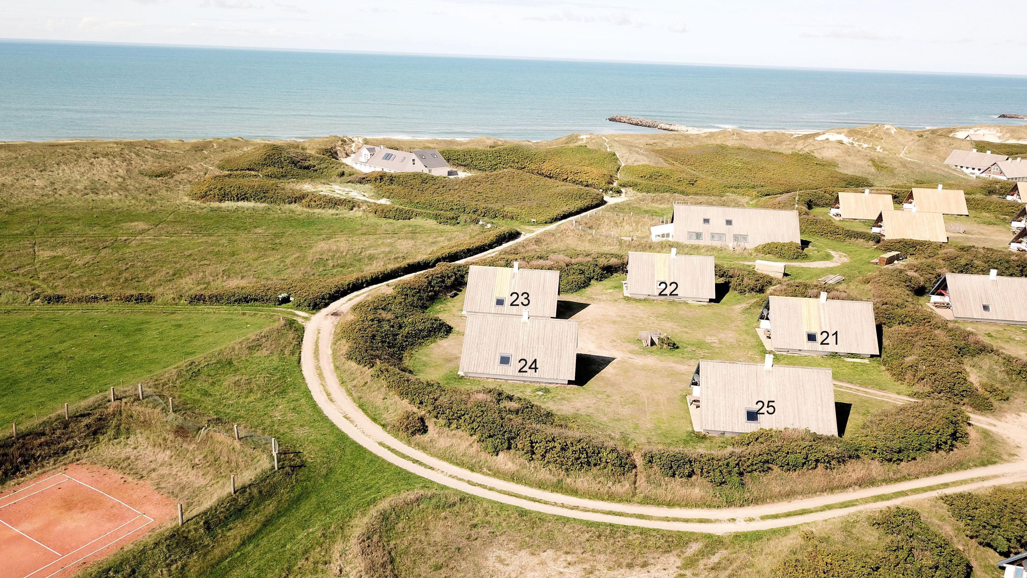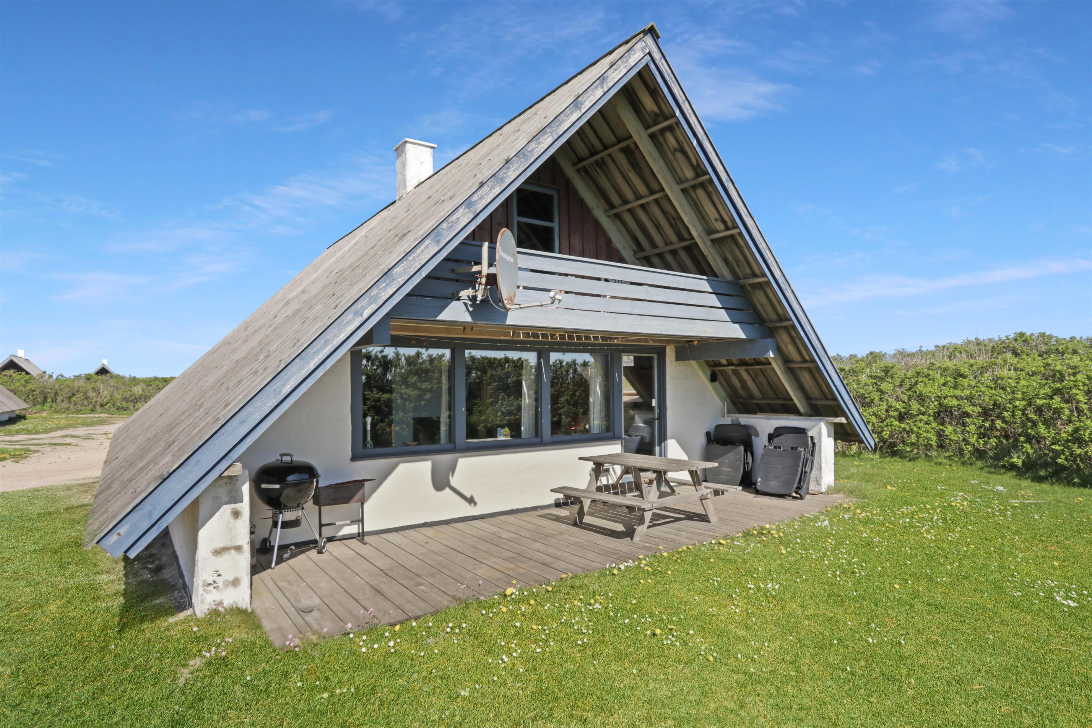 Fra opholdsstuen er der udgang til en lille, overdækket terrasse med havemøbler, 2 solvogne og grill og fra balkonen på 1. sal er der udsigt til Vesterhavet. Huset er en del af Fjaltring Ferieby som består af 25 næsten identiske A-huse fordelt i 5 cirkler. Hele Feriebyen ligge i en dejlig ”gryde” i det fredede klitlandskab kun ca. 200m fra Vesterhavet. Ved fælleshuset er der el-bil-oplader til rådighed. Nyd en økonomisk ferie i et enkelt feriehus med en helt unik beliggenhed. Parker bilen og nyd at I resten af ferien kan gå til stranden på under 5 minutter. Oplev det brusende Vesterhav som hverdag byder på nye oplevelser. Gå en tur eller dyrk den daglige motion langs med havet, i det smukke landskab eller udforsk områdets mange andre muligheder.