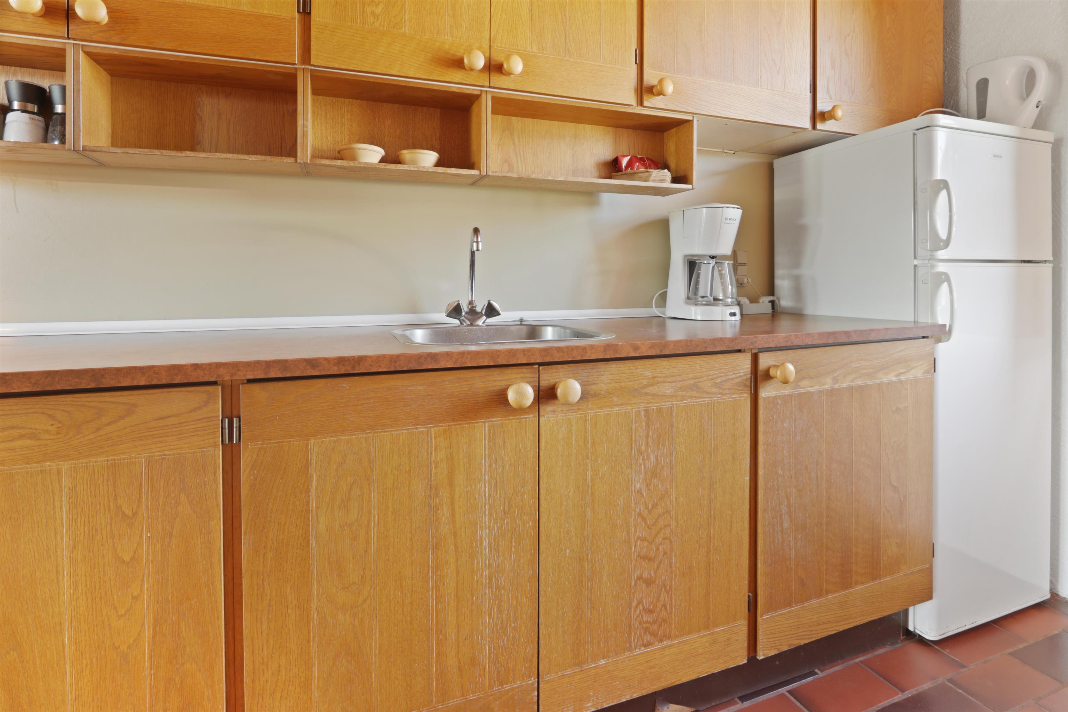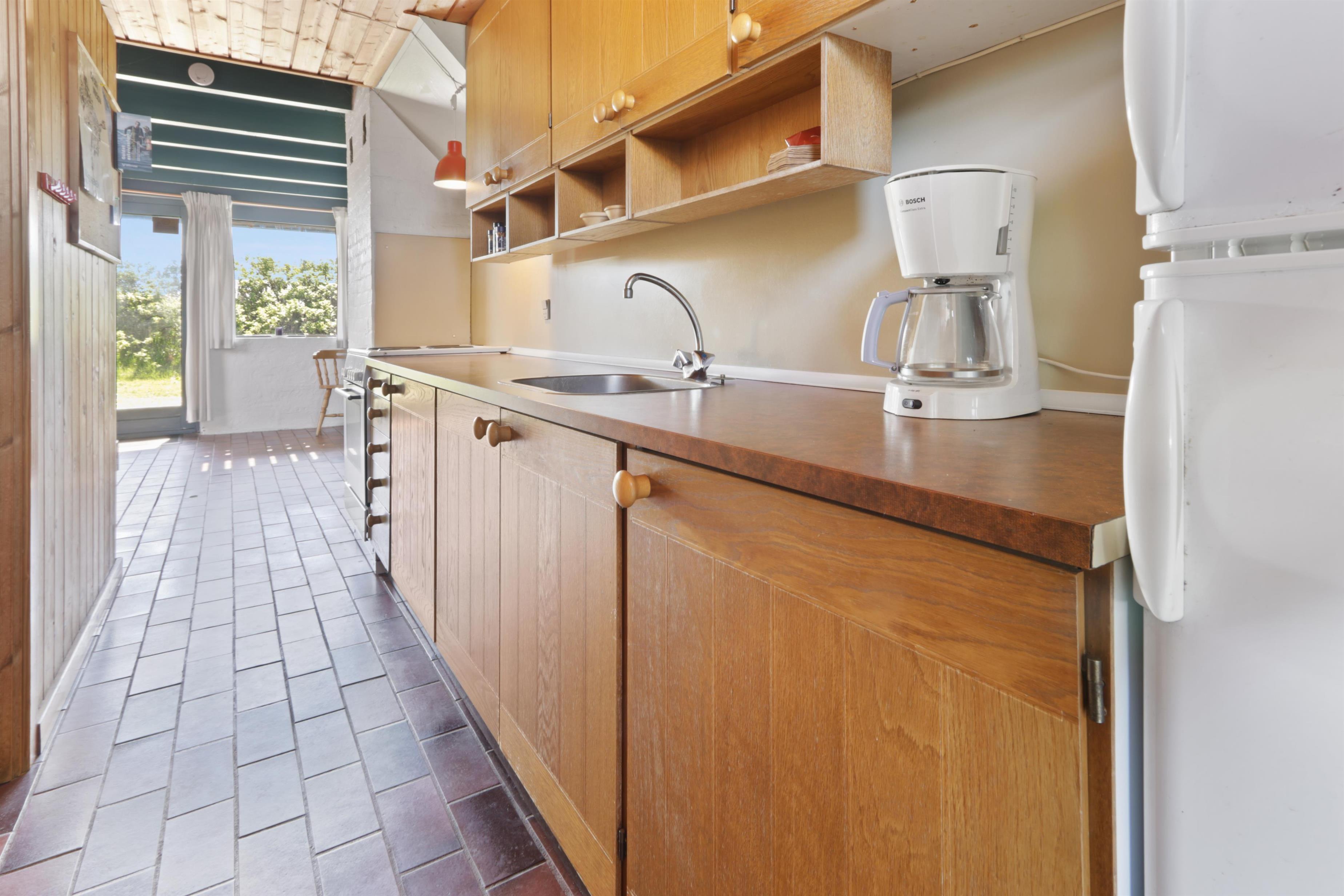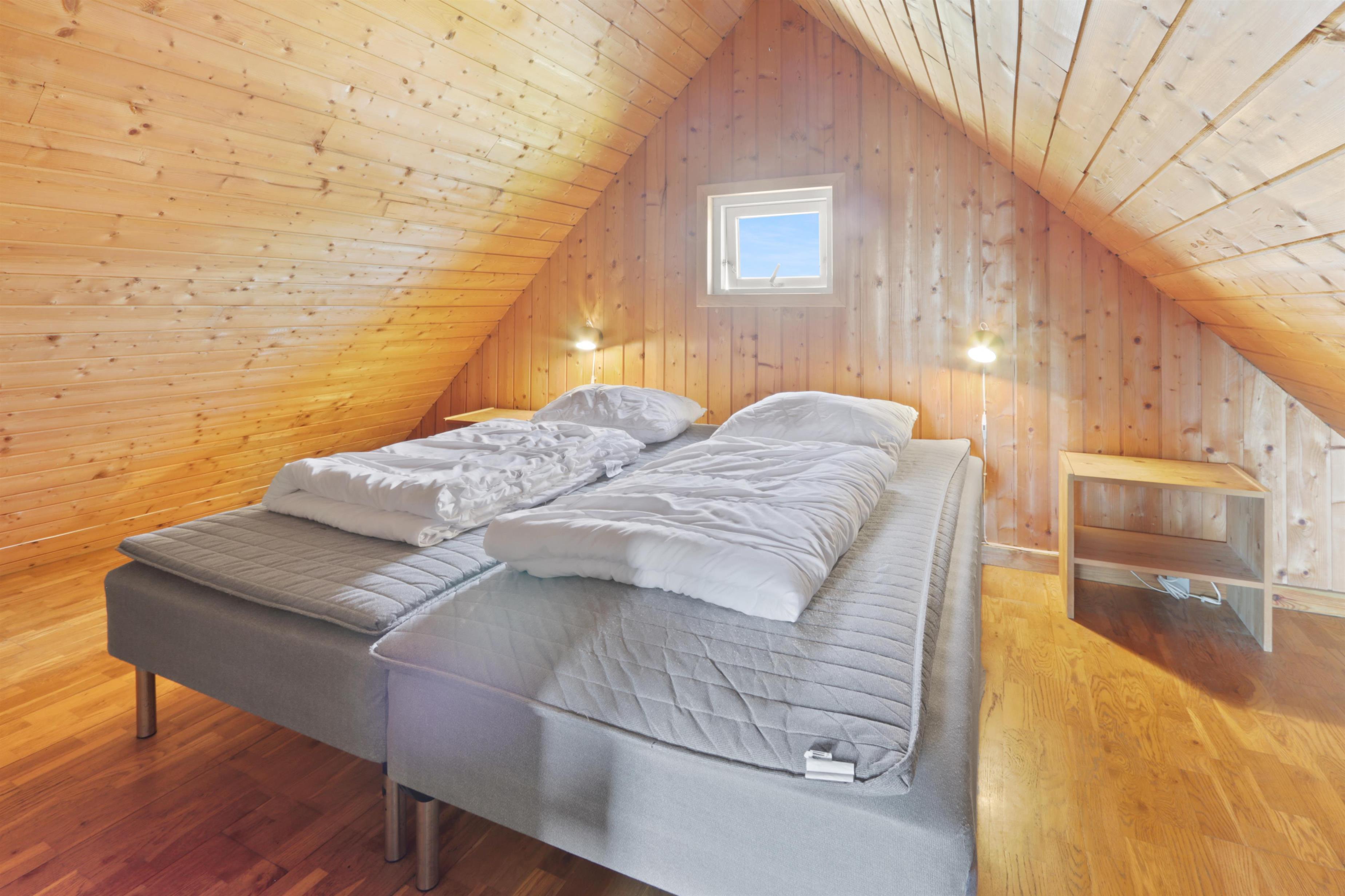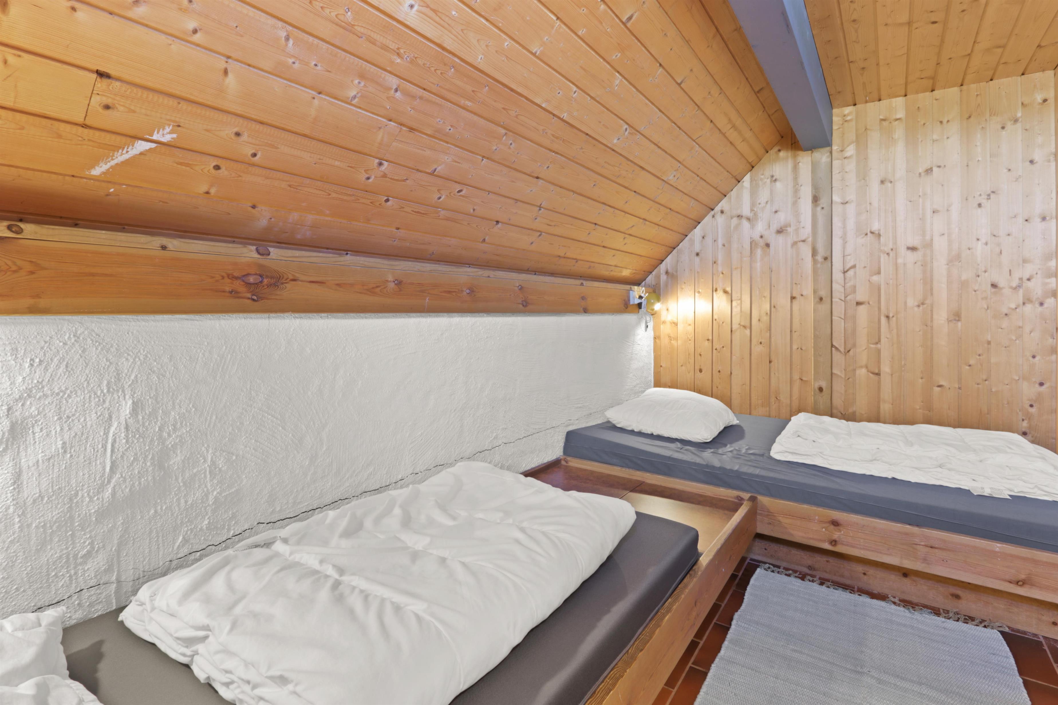 Rustikt sommerhus på100m2 med 2 soverum (1DS, 4ES). 2 åbne soverum på første sal med 1 DS og 2ES. sal. 2 ES i vinkel i værelse i stueplan. Huset er enkelt indrettet med en opholdsstue med polstermøbler, TV med danske og tyske programmer og pejs. Enkelt køkkenhjørne med elektrisk komfur med 4 kogeplader og køleskab med lille fryseboks. Der er installeret en varmepumpe. Badeværelse med toilet, håndvask og bruser. Klinkegulve med gulvvarme i stueplan. 2 husdyr tilladt.