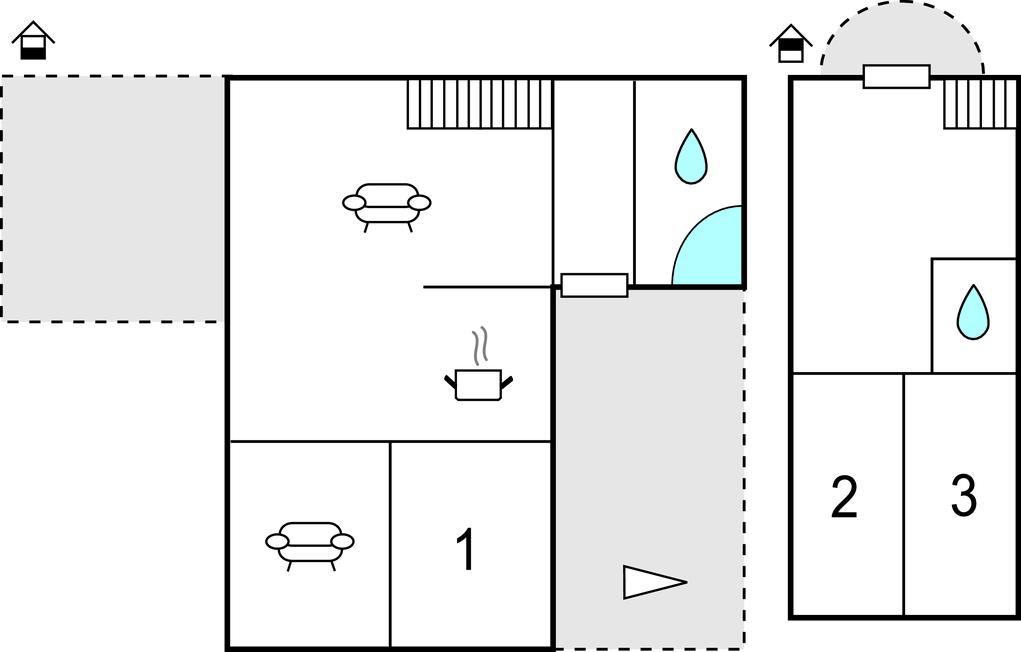 Soveværelse 10m2 (nr. 2) - 1 Soveplads. (Enkeltseng(e)). 2 Sovepladser. (Dobbeltseng(e)).