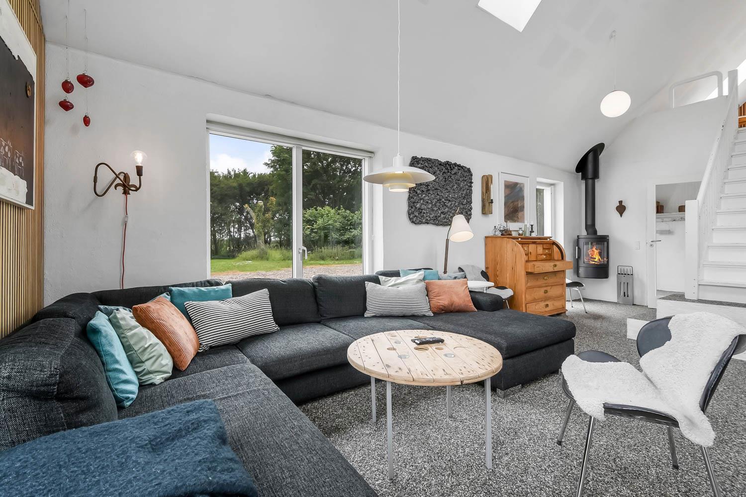 Fra huset er der en fantastisk smuk udsigt over de åbne marker. Her kan du nyde den dejlige have med anlagt terrasse, gynger. Der er 2 solvogne til huset samt en grill, så der er både noget til dag og aften. I haven er der også en bane til fodbold med mål. Der er kun seks km til Vesterhavets dejlige strand, hvor I kan få en god naturoplevelse, hvad enten det er sommer eller vinter.