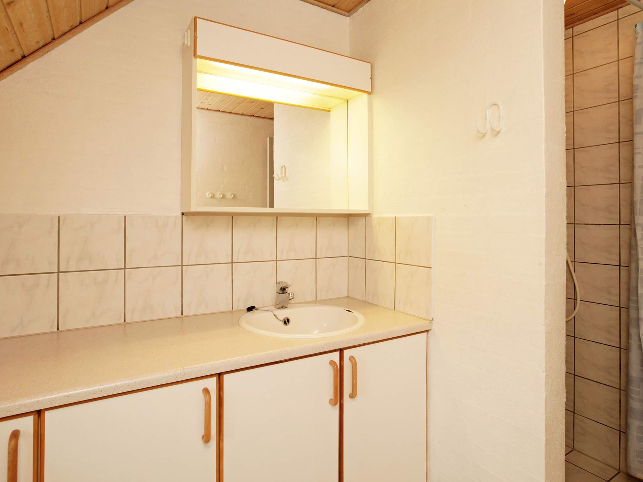 Sommerhuset er delt op i 2 soveafdelinger med hvert sit badeværelse. Der er 7 soverum. 5 med dobbeltsenge og 2 med 2 køjesenge i hver. En af soveafdelingerne er kørestolsvenlig og det tilhørende badeværelse er udstyret med toiletstøtter samt en badestol.
