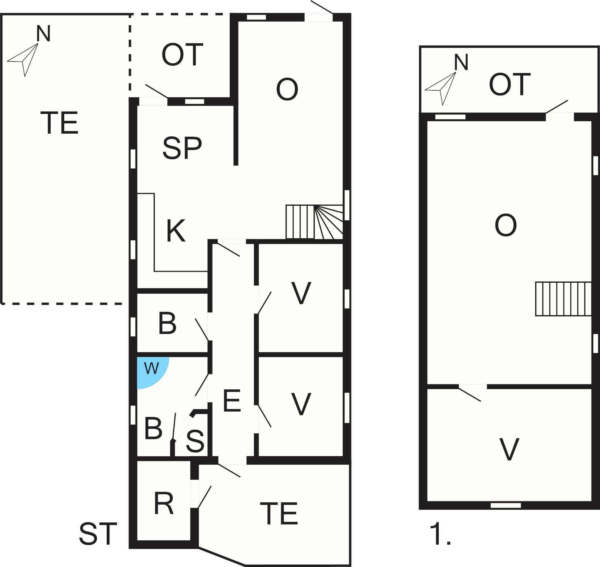 1 Opholdsstue: Brændeovn, radio, dvd-afspiller, tv, video, parabol, høj stol