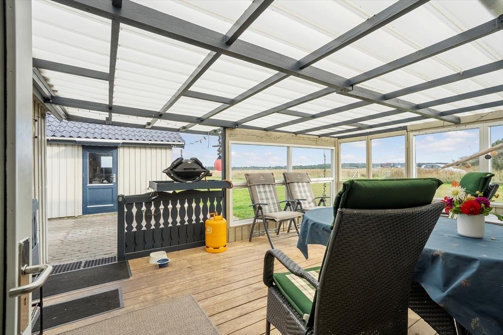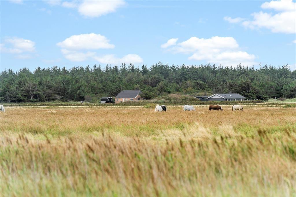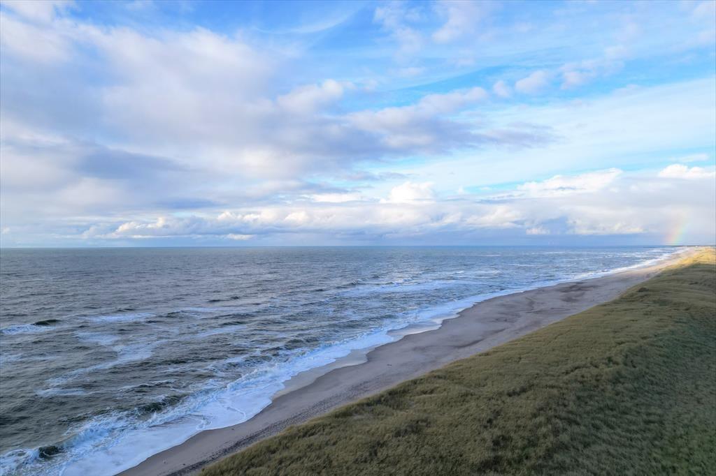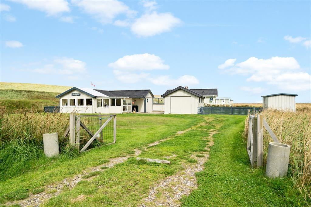 Haven og den imponerende grund på 12.636 m² giver både plads, privatliv og en udsigt i særklasse – klitterne mod vest og fjorden mod øst. Haven er indhegnet, så børn kan lege trygt, og hundene kan frit løbe omkring. På den sydvendte terrasse finder I læ og sol, perfekt til morgenkaffe, grillhygge eller afslapning med en god bog. Tag på opdagelse omkring bålpladsen eller spil en omgang fodbold på grunden. Kun 140 meter fra grunden venter Vesterhavet – råt, smukt og fascinerende. Om aftenen kan I tage et tæppe med op i klitterne og nyde solnedgangen, der maler himlen i varme farver.