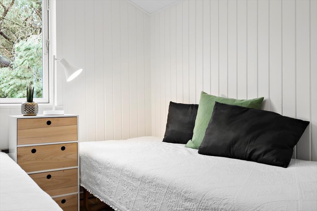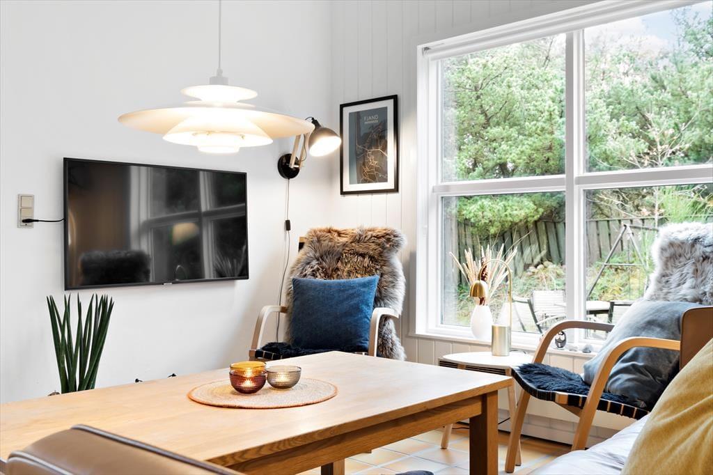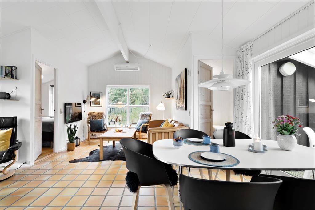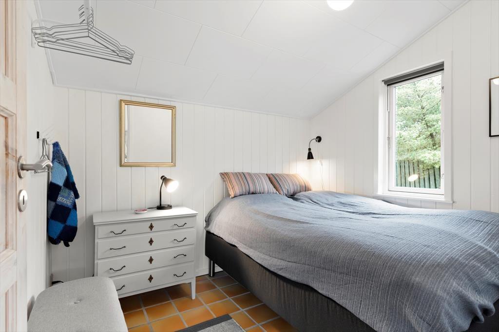 Varme hyggelige klinker og yderst flotte detaljer guider jer igennem dette lækre, arkitekttegnede feriehus. Nyd den dejlige rumlighed og det skønne køkken-alrum med loft til kip. Slå jer ned i det store køkken-alrum og nyd det smukke lysindfald, der bliver skabt af de store vinduer med fantastisk udsigt ud over grunden. I køkkenet kan I endda kigge lige ned på fjorden. Det store køkken-alrum gør det muligt for jer at være sammen, på trods af at I laver forskellige ting – nogle kan tilberede et lækkert måltid i køkkenet, mens andre nyder et hyggeligt spil kort og den gode samtale, der bare flyder, imens I nyder solens stråler gennem de store vinduer. Og når kroppen trænger til afslapning, kan I glæde jer over husets indbyggede sauna – den perfekte afslutning på en aktiv dag.