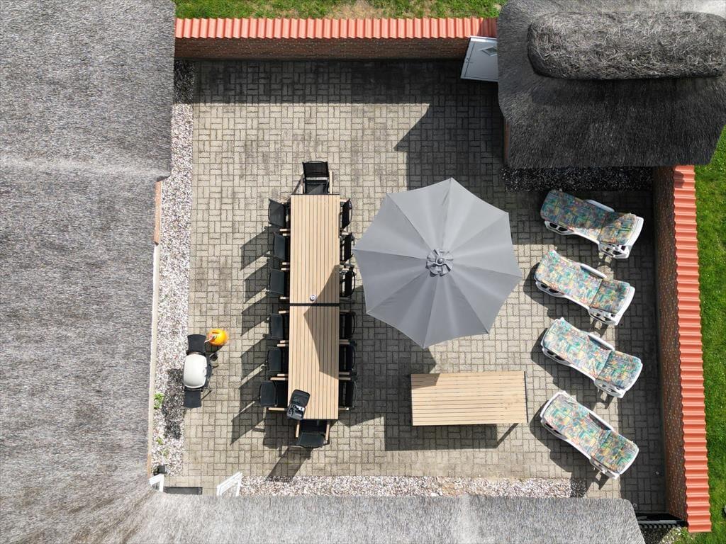 Fra stuen er der direkte adgang til en stor terrasse, hvor I altid kan finde et læhjørne og lægge jer på en solvogn med en god bog eller et koldt glas vin. Den omkringliggende naturgrund giver masser af plads til leg, boldspil eller bare afslapning i det fri. Her kan både børn og voksne boltre sig, mens I nyder solen og roen omkring huset. Med kun få minutters gang er I ved Vesterhavet, hvor lange strandture og frisk havluft giver en perfekt pause fra hverdagen.