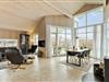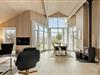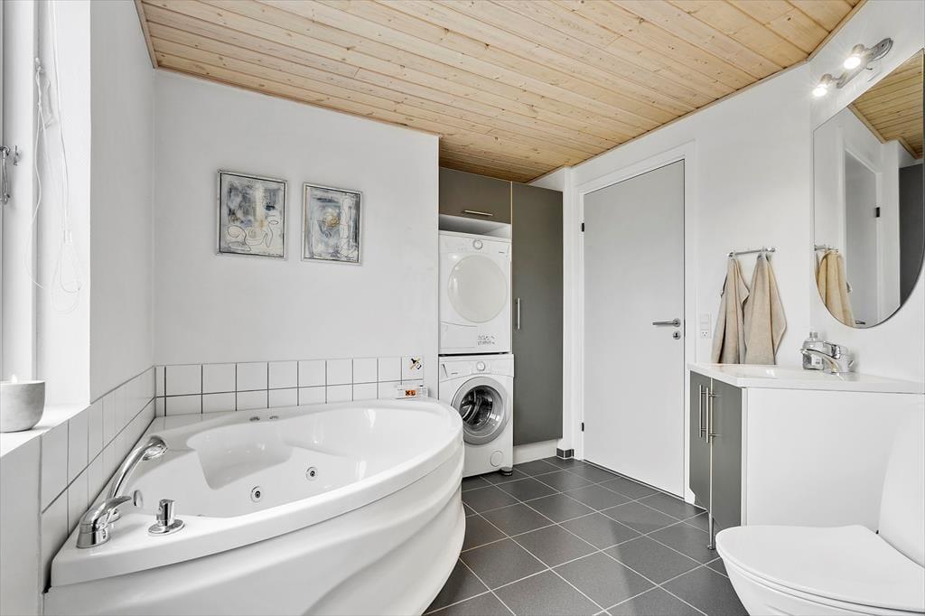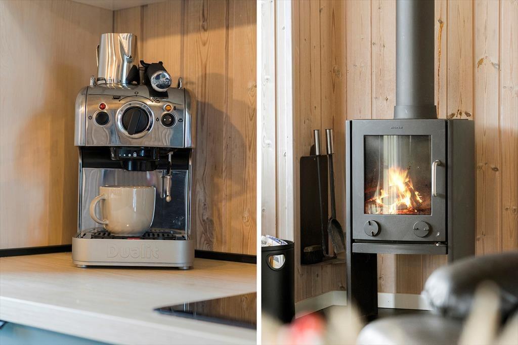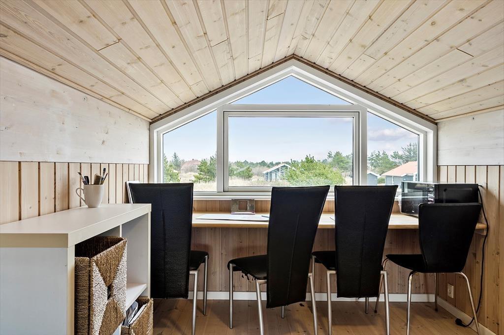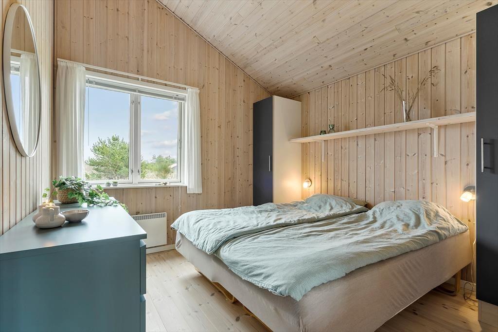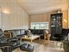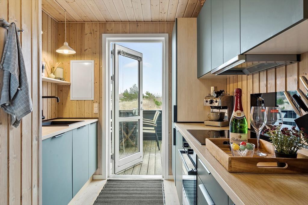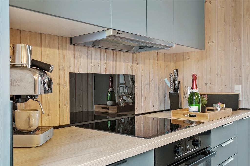 Når I træder ind i dette sommerhus, mærker I straks, hvordan roen tager over, og dagligdagens travlhed forsvinder. Her er plads til nærvær og hygge i smukke omgivelser. Det åbne køkken står klar, når sulten melder sig, og I kan samtidig følge med i livet i huset, mens maden bliver tilberedt. Lyset strømmer ind gennem vinduerne ved spisebordet og skaber den perfekte stemning til jeres måltider. Træk jer op på hemsen med en god bog – herfra har I stadig udsigt over rummet og kan føle jer en del af fællesskabet. Når aftenen falder på, kan I tænde op i brændeovnen og nyde varmen, der langsomt breder sig.