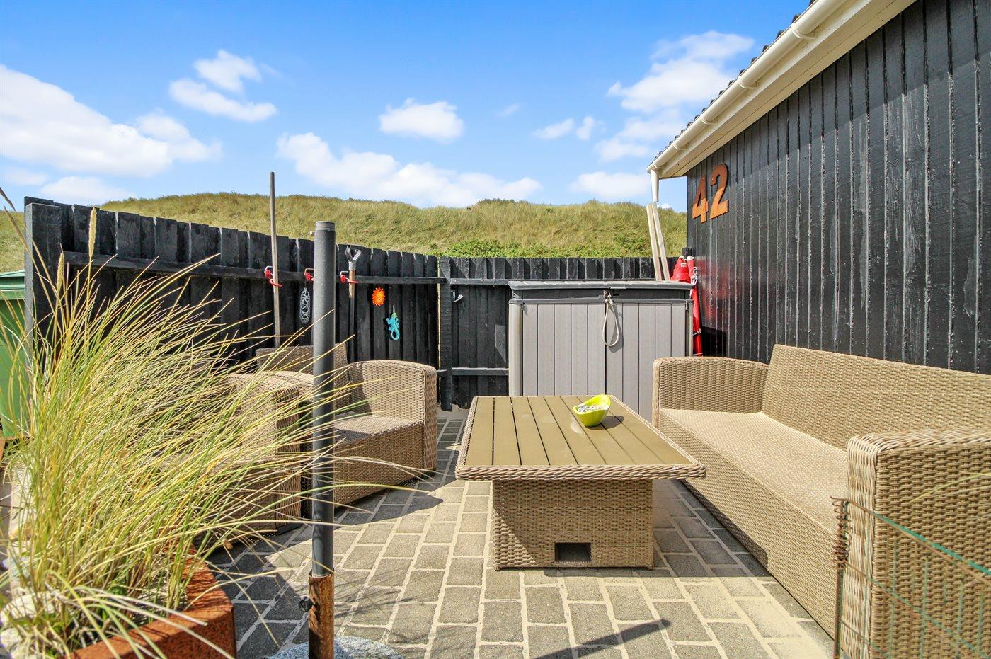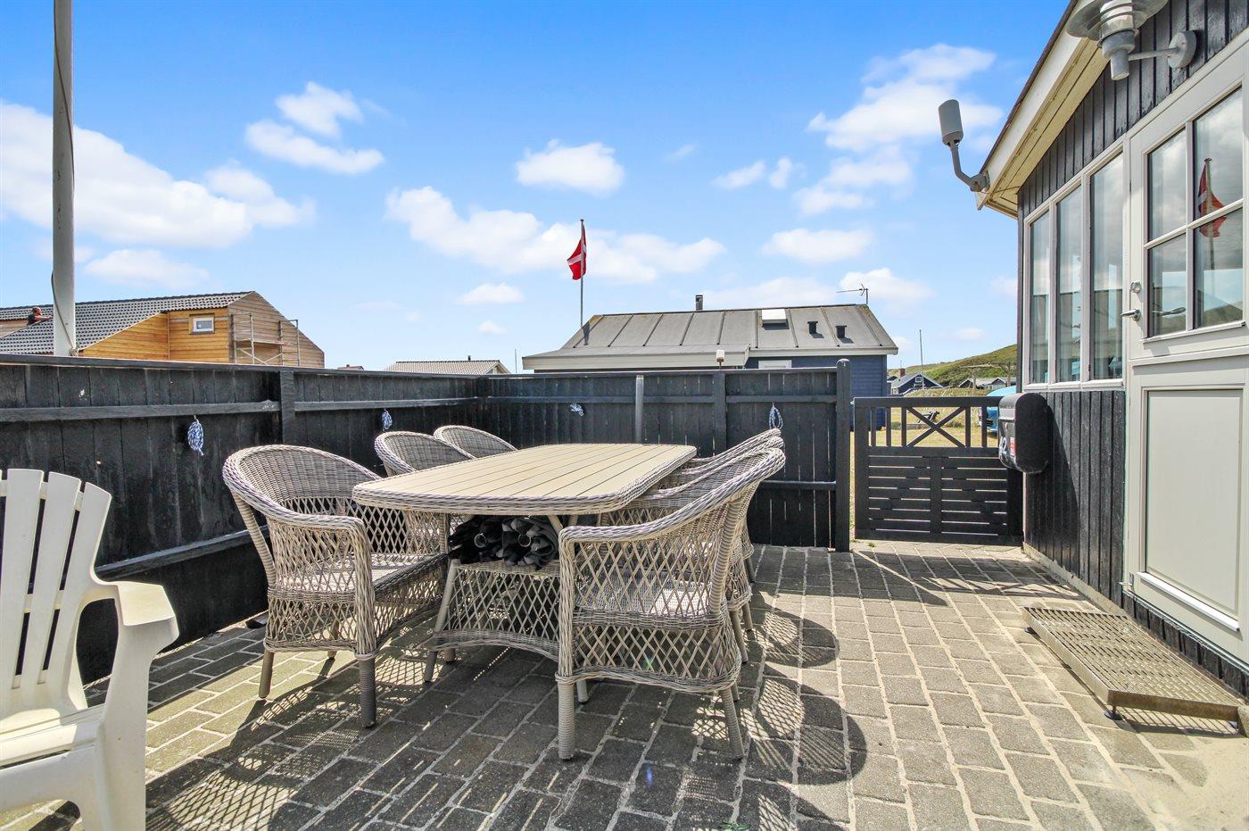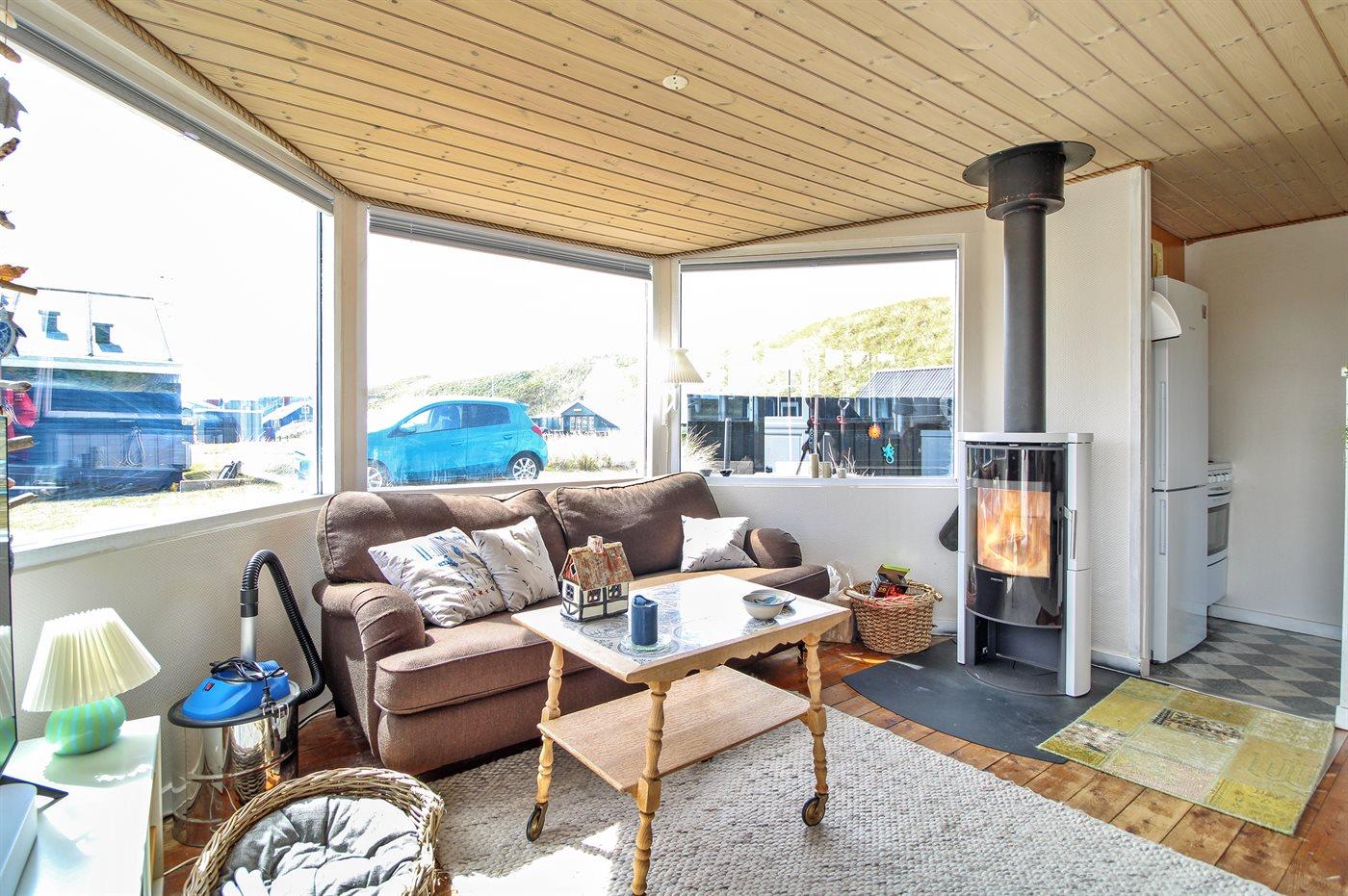 Hyggeligt lille sommerhus beliggende lige ved vandet, på en mindre grund, bag klitterne til Vesterhavet.