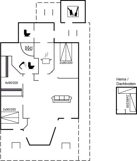 Der er i alt 3 soveværelser. Sovepladserne fordeler sig på: 6 sovepladser i enkeltsenge. 4 sovepladser i køjesenge. 2 af disse sovepladser befinder sig på husets hems. Derudover er der 1 stk. barneseng.