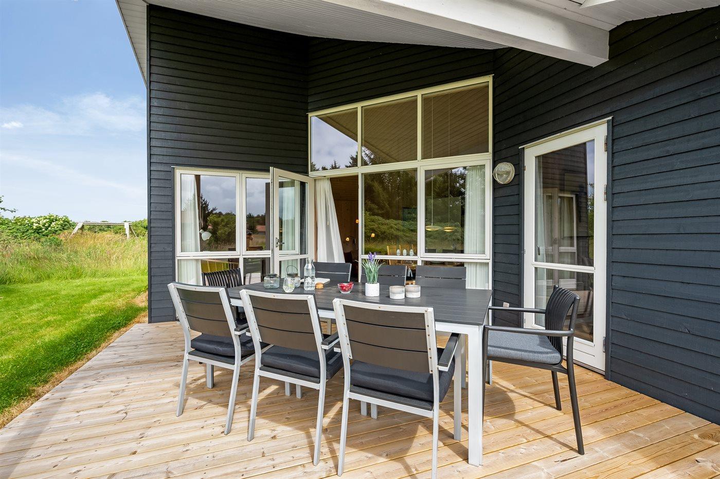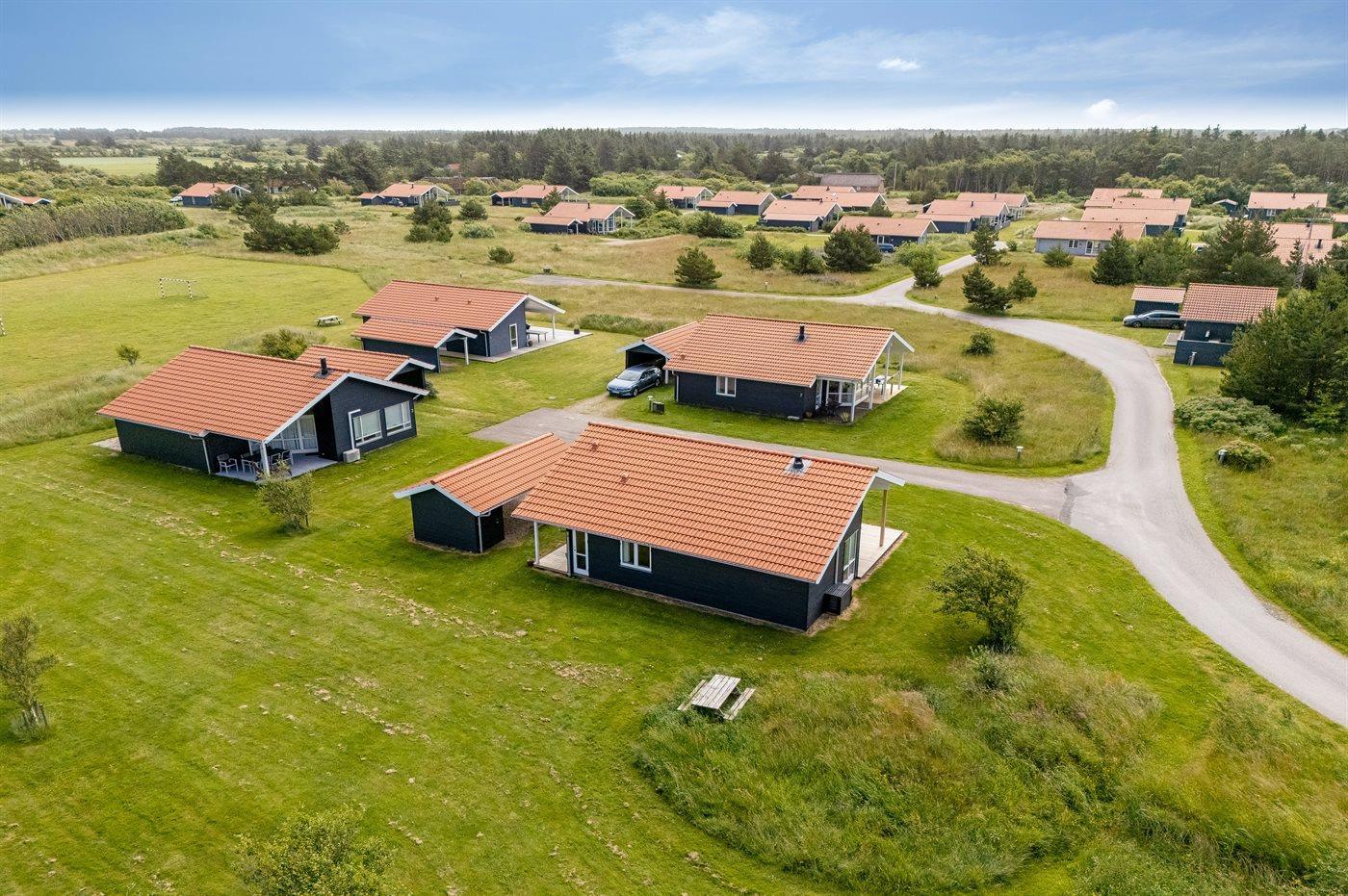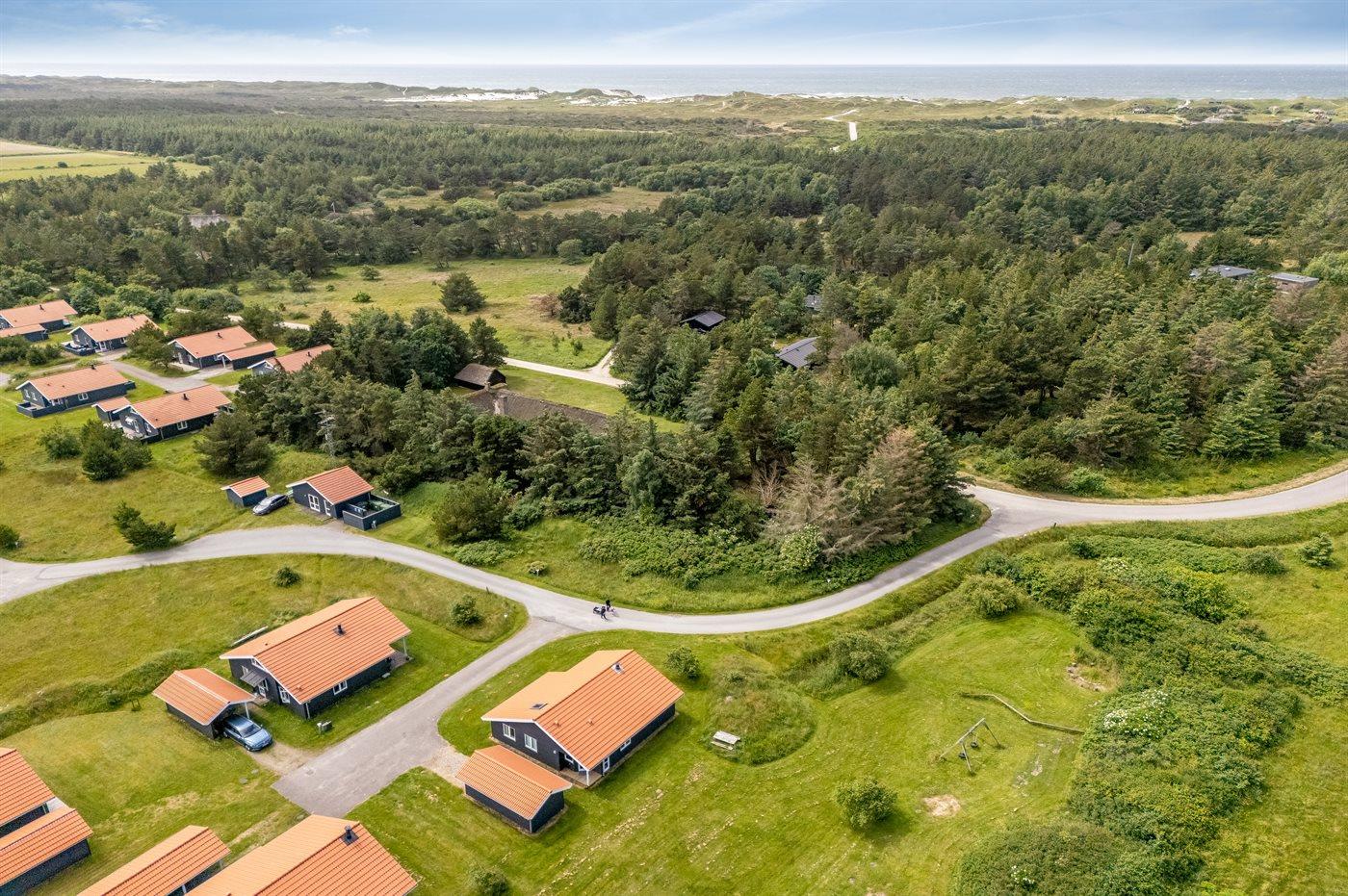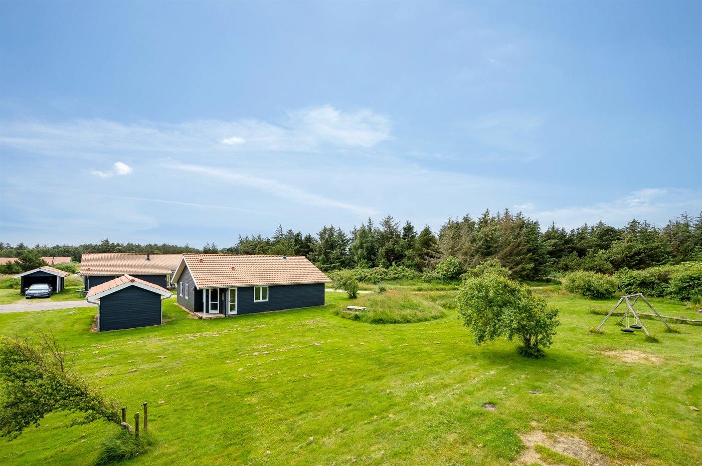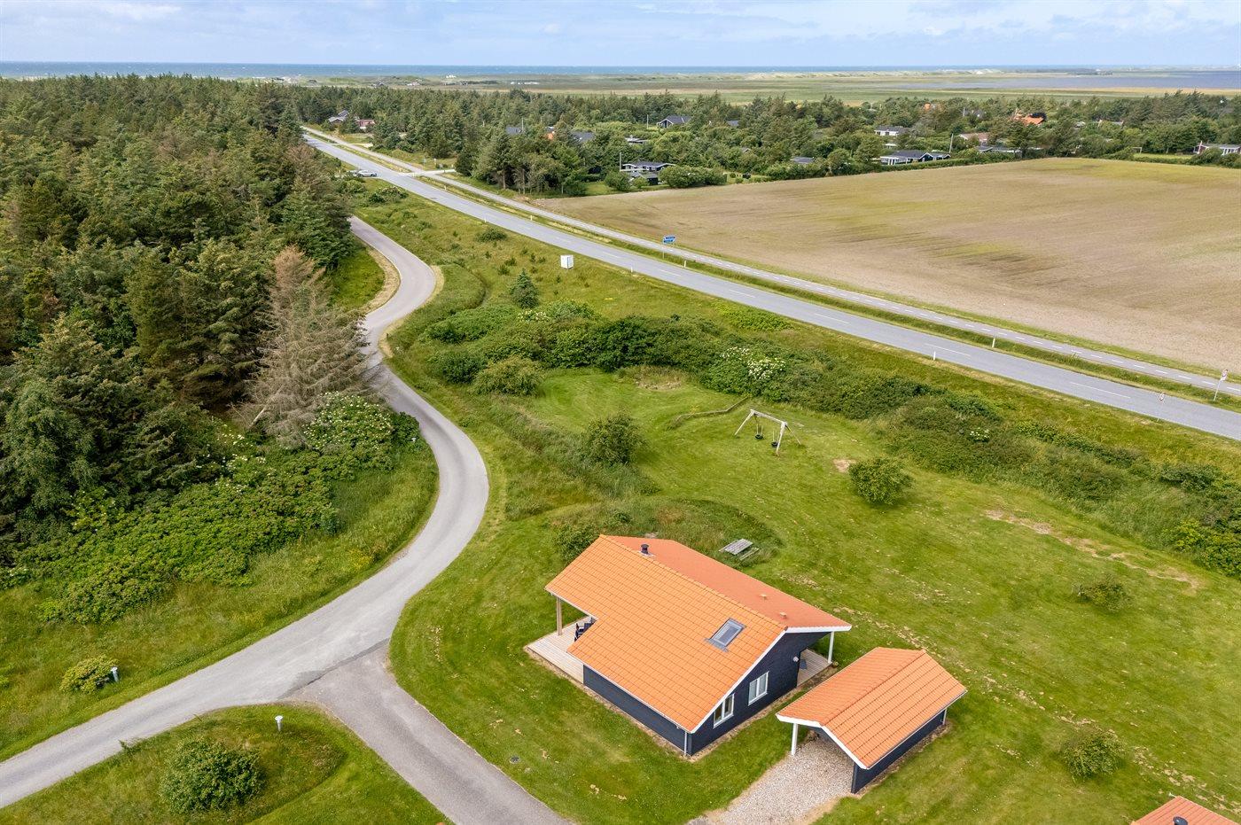 Ferieboligen er beliggende på en 400 m² stor naturgrund. Der er 800 m til havet. Der er 1000 m til fjorden. Nærmeste forretning er beliggende i en afstand af 3000 m. Til ferieboligen hører åbent terrasseareal. Desuden er der overdækket terrasse. Der er redskabsrum. Der ligger en legeplads i en afstand af 400 m. Der er carport til rådighed.
