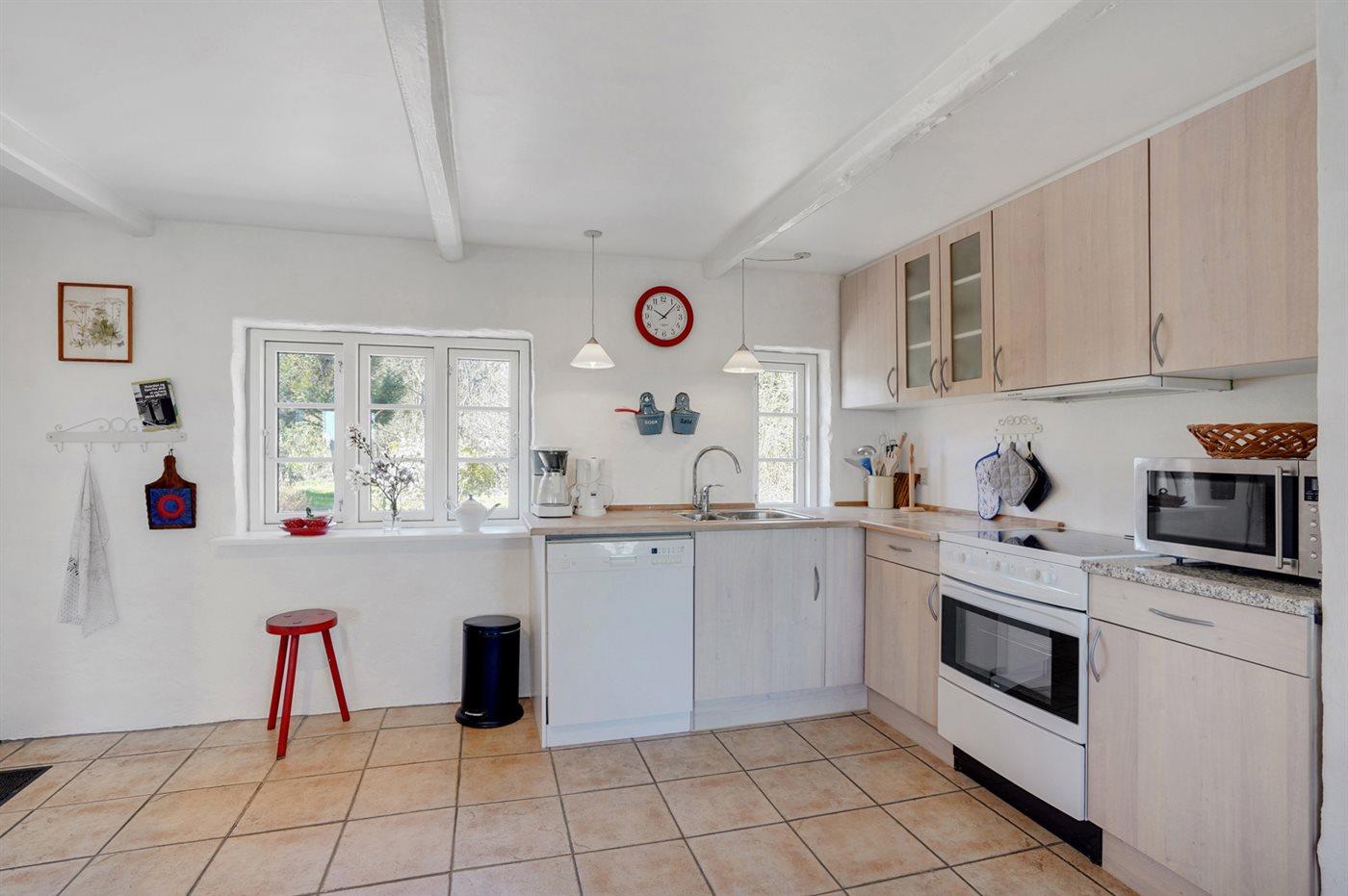 Køkkenet er udstyret med 1 køleskab. Der er 4 keramiske kogeplader, varmluftovn, mikrobølgeovn samt opvaskemaskine.