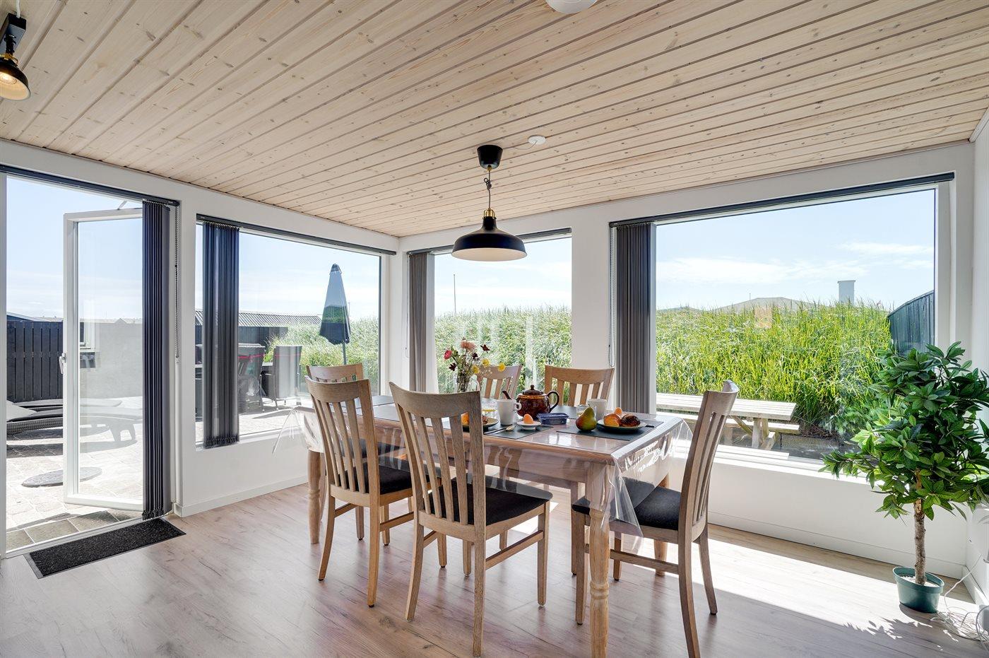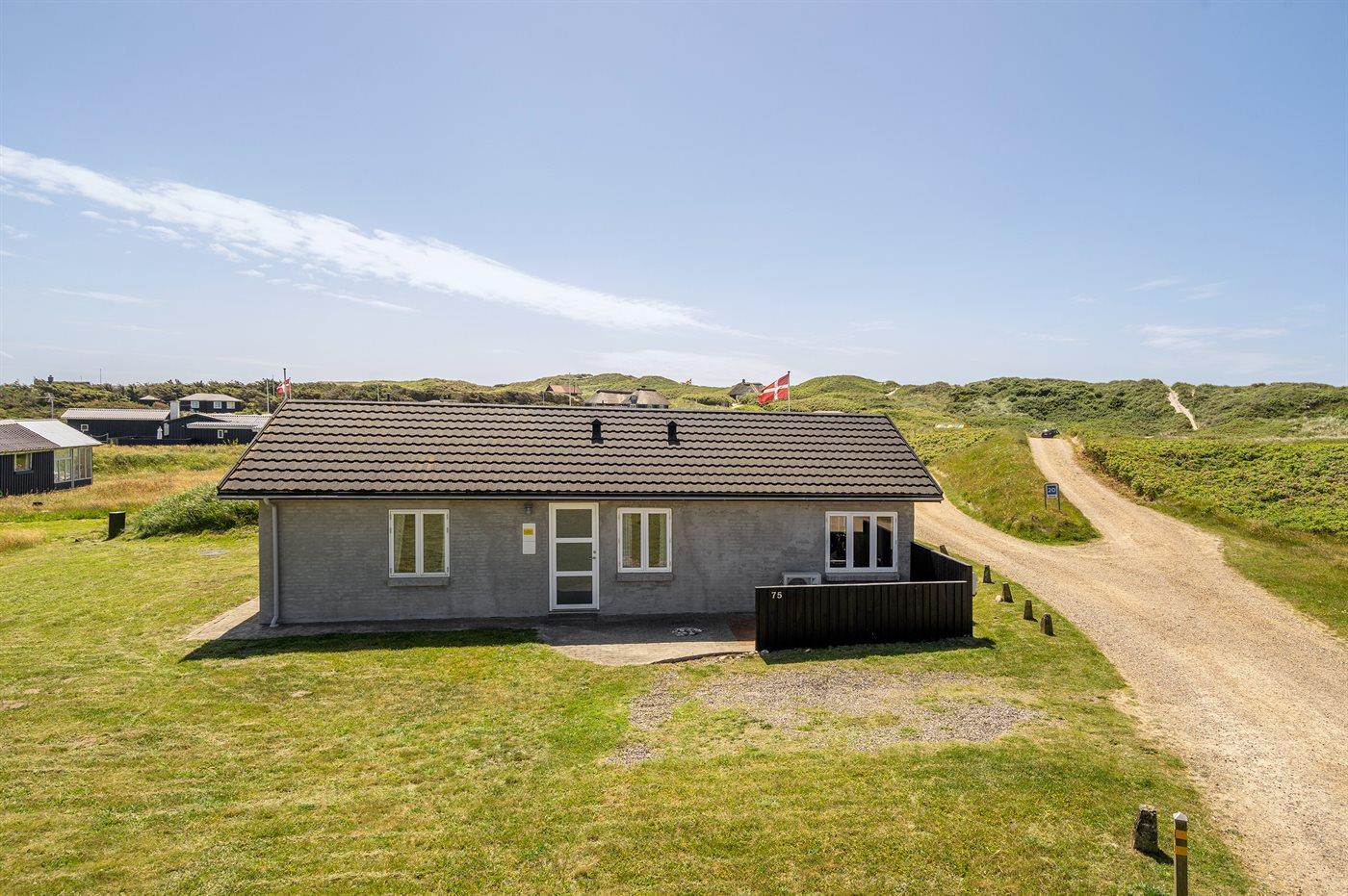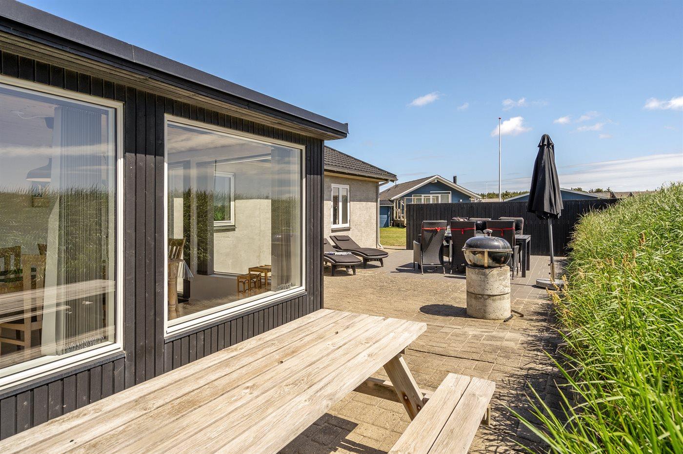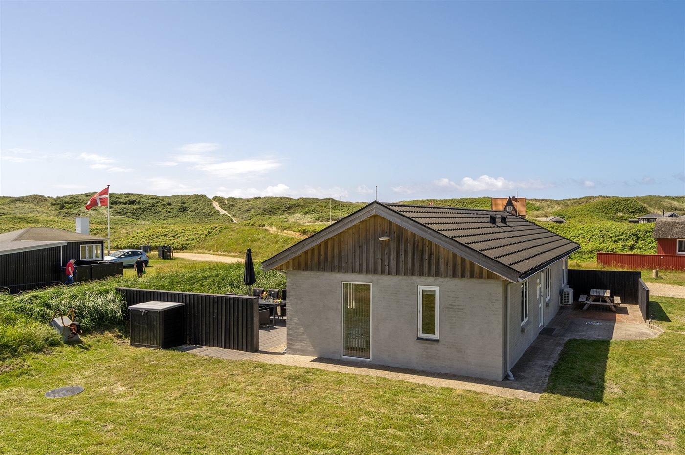I rolige omgivelser meget på Vesterhavet ligger dette hyggelige sommerhus, hvor man fra de store vinduespartier har en fantastisk udsigt over klitlandskabet. I den integrerede udestue kan man nyde morgenkaffen, slappe af med en god bog eller bare nyde livet.