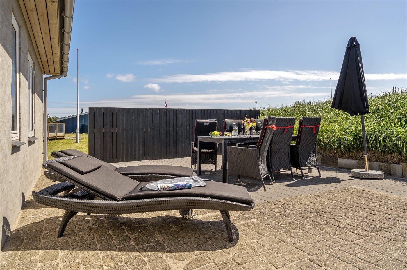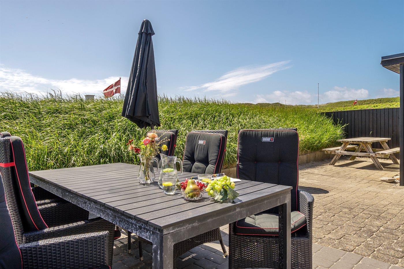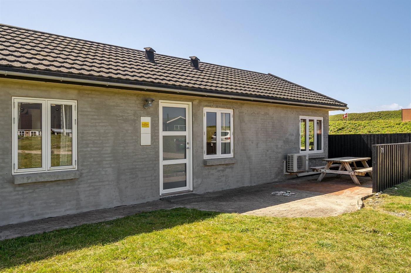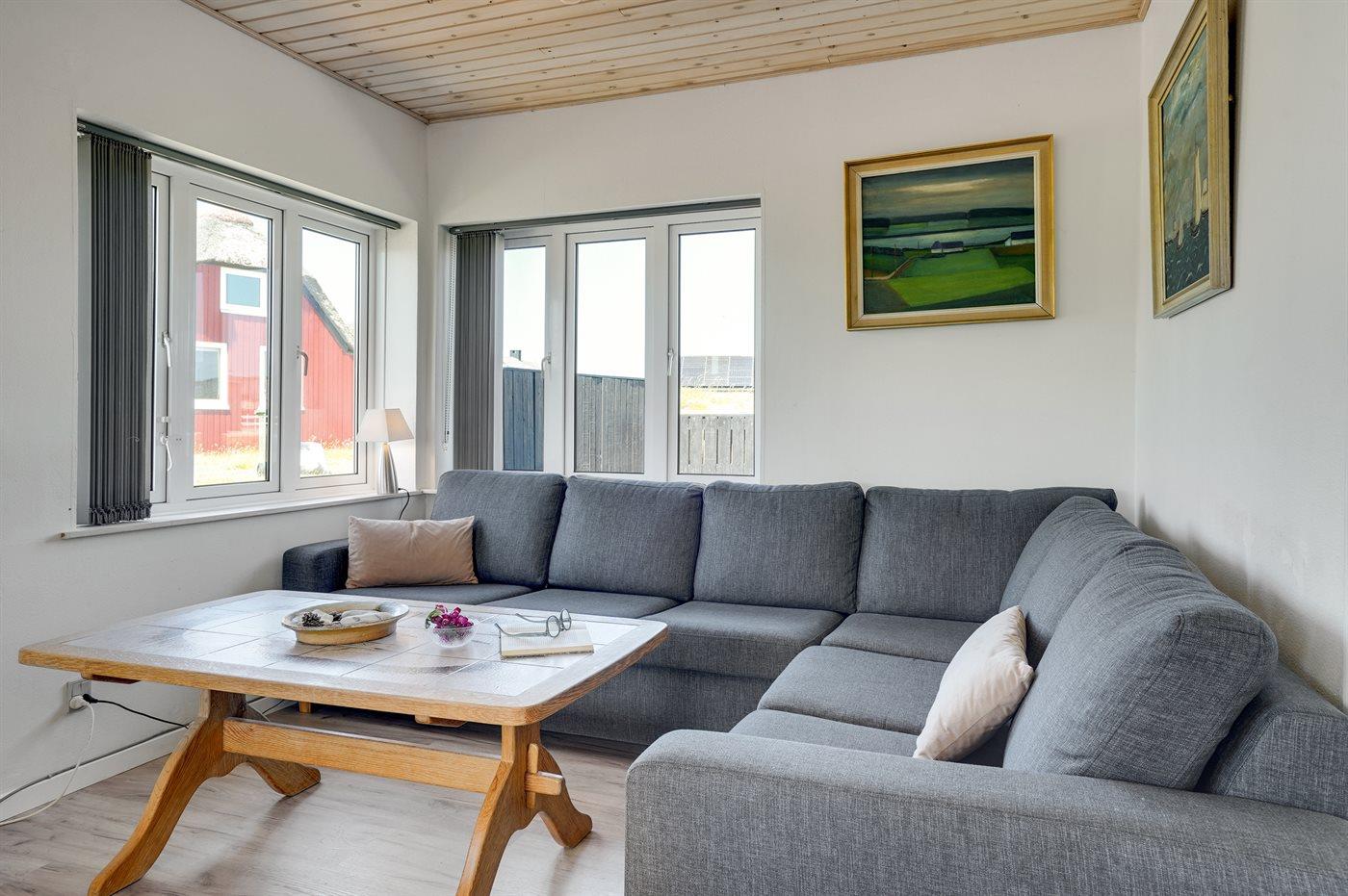 I rolige omgivelser meget på Vesterhavet ligger dette hyggelige sommerhus, hvor man fra de store vinduespartier har en fantastisk udsigt over klitlandskabet. I den integrerede udestue kan man nyde morgenkaffen, slappe af med en god bog eller bare nyde livet.