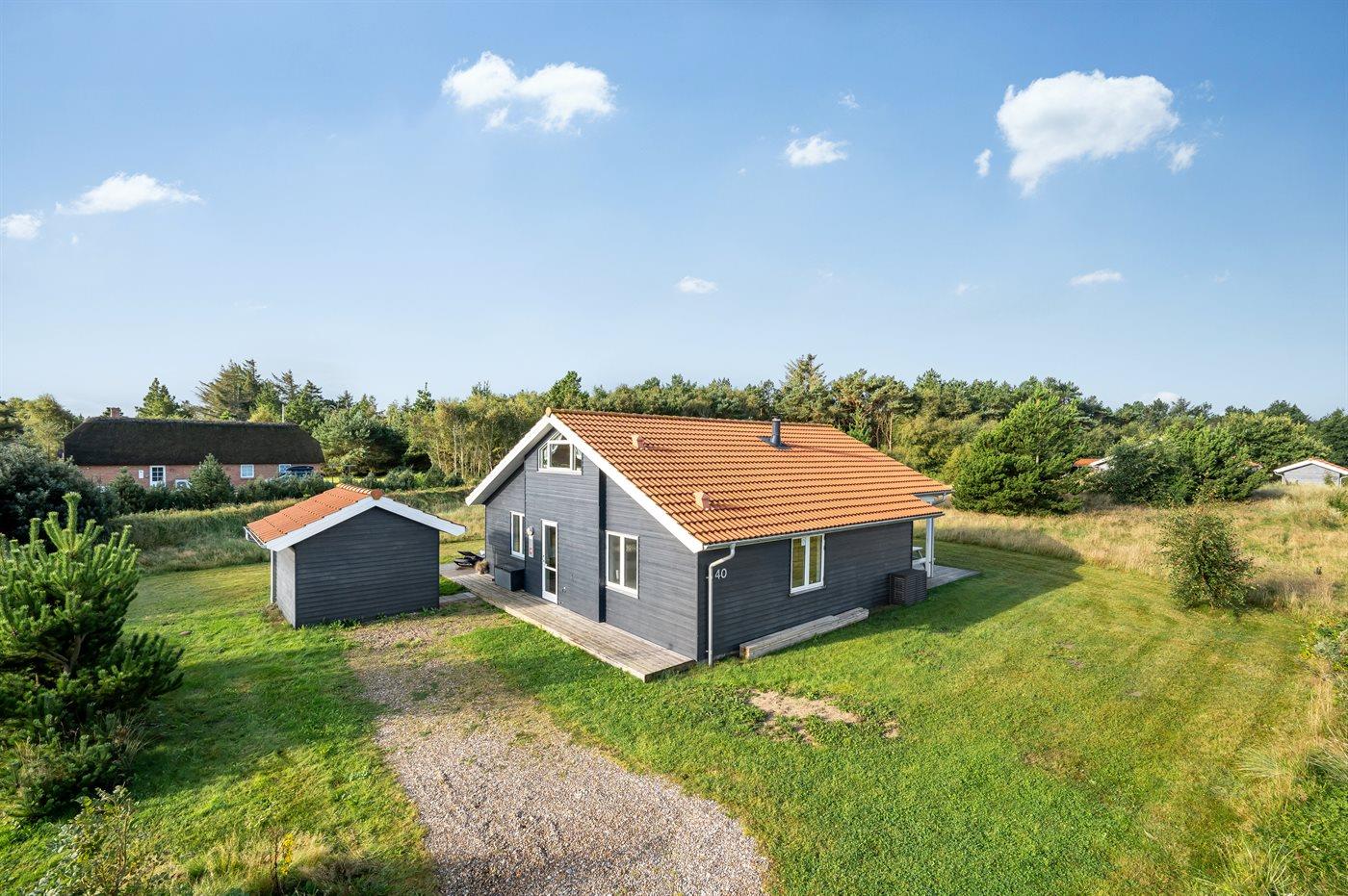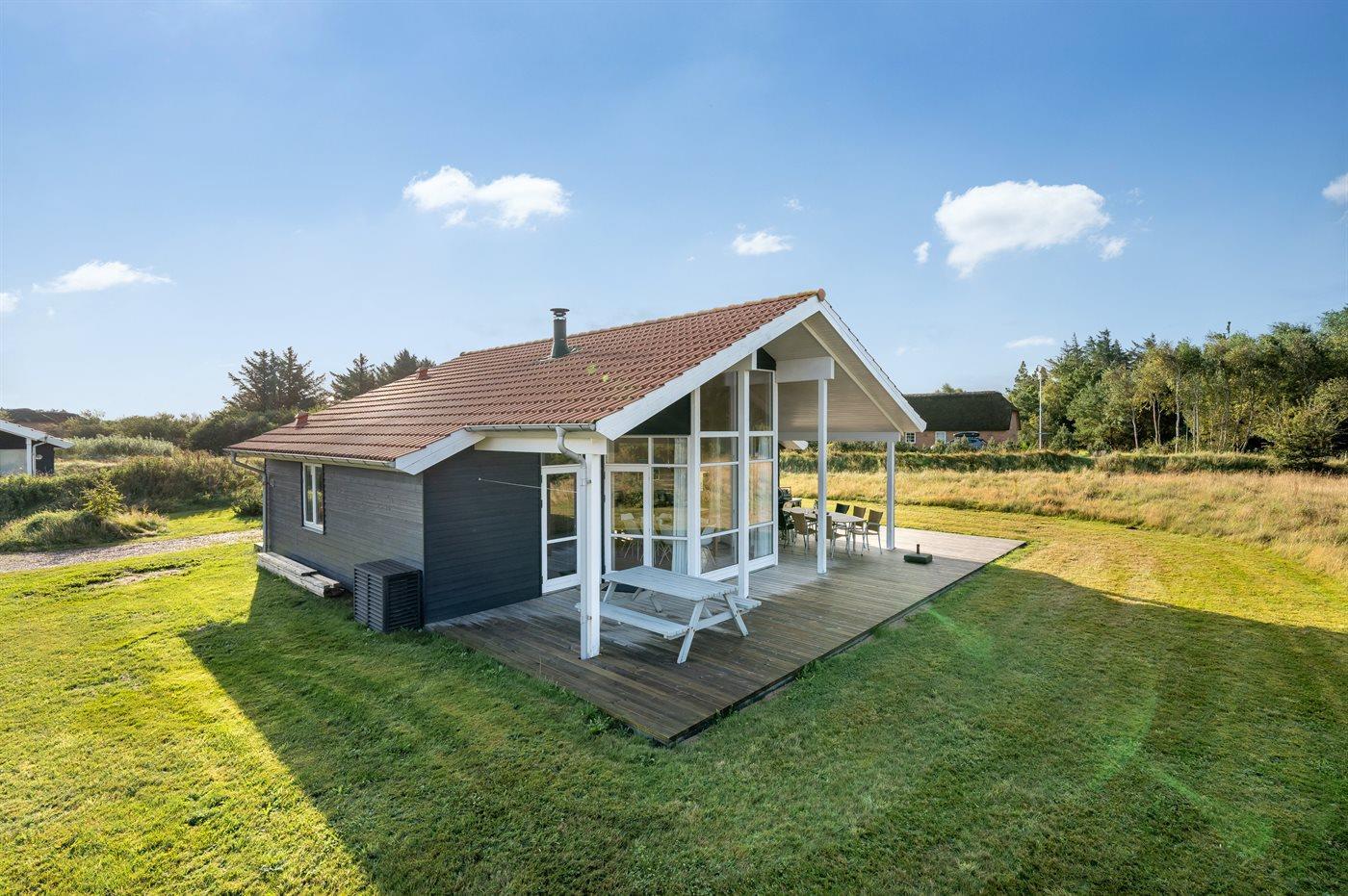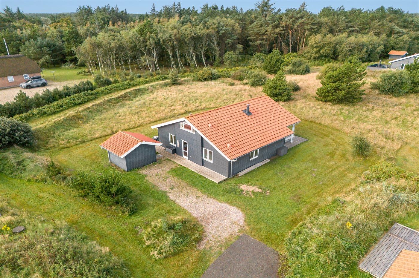 Charmerende sommerhus i naturskønne omgivelser – i gåafstand til hvide sandstrande og en hyggelig naturlegeplads.