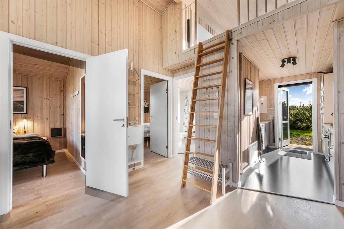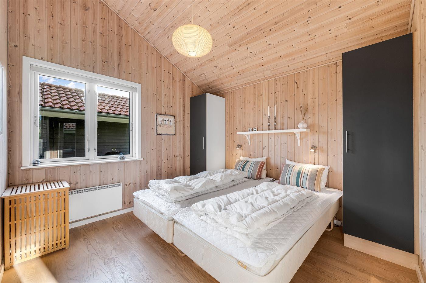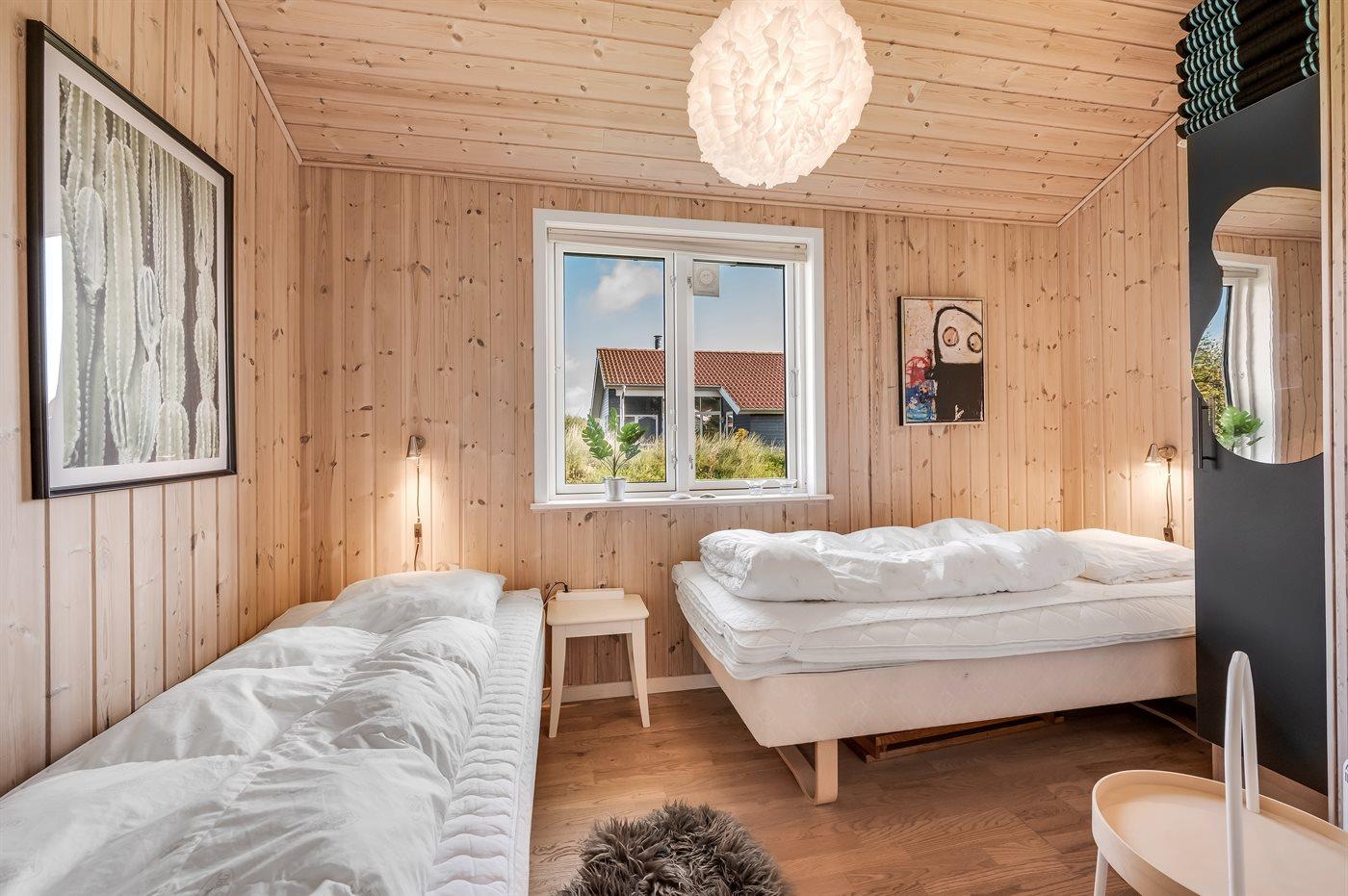 Der er i alt 3 soveværelser. Sovepladserne fordeler sig på: 4 sovepladser i dobbeltsenge. 4 sovepladser i enkeltsenge. 2 af disse sovepladser befinder sig på husets hems.