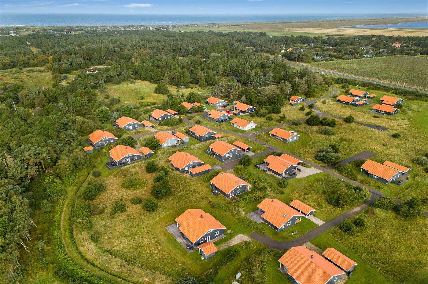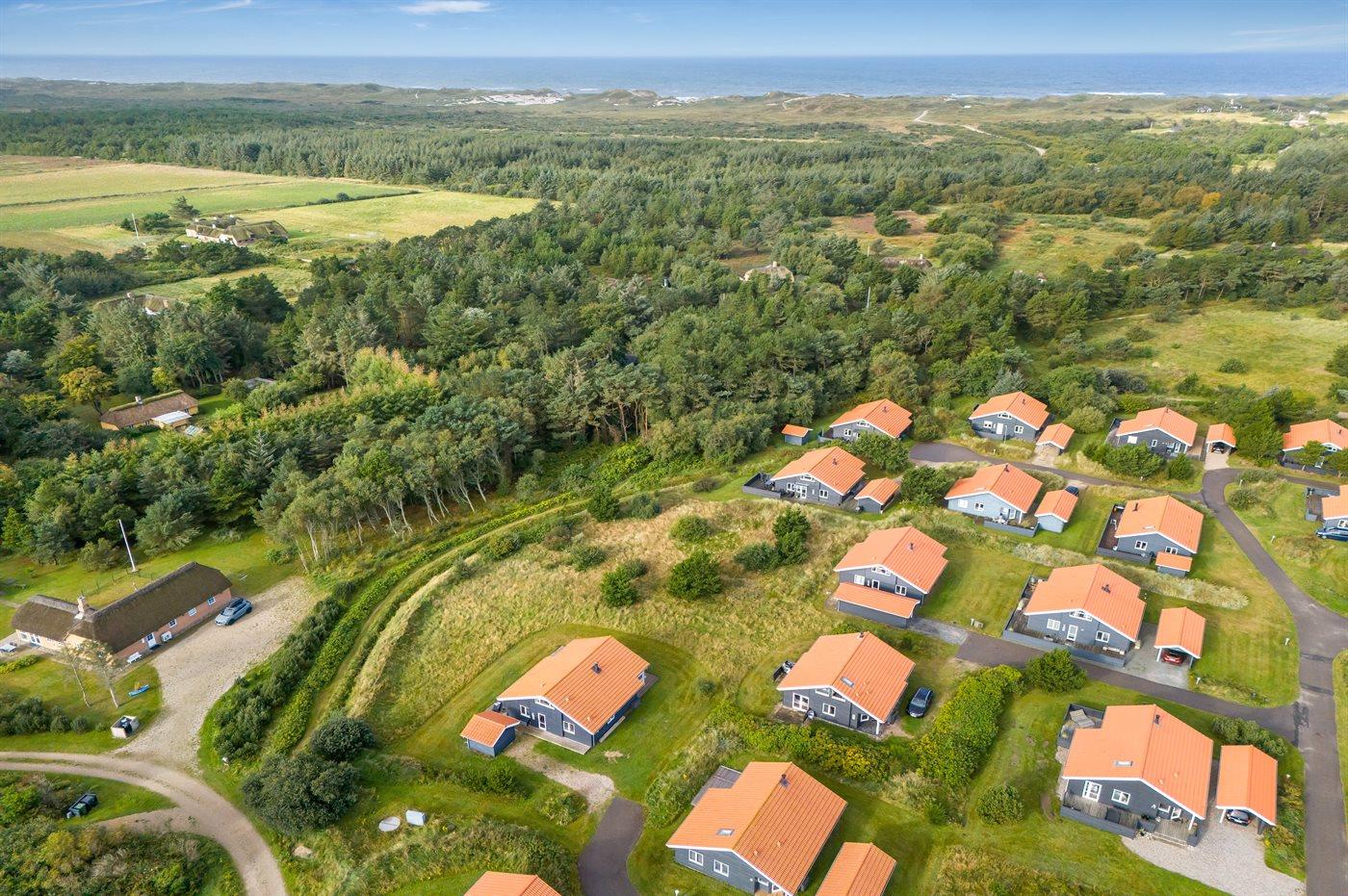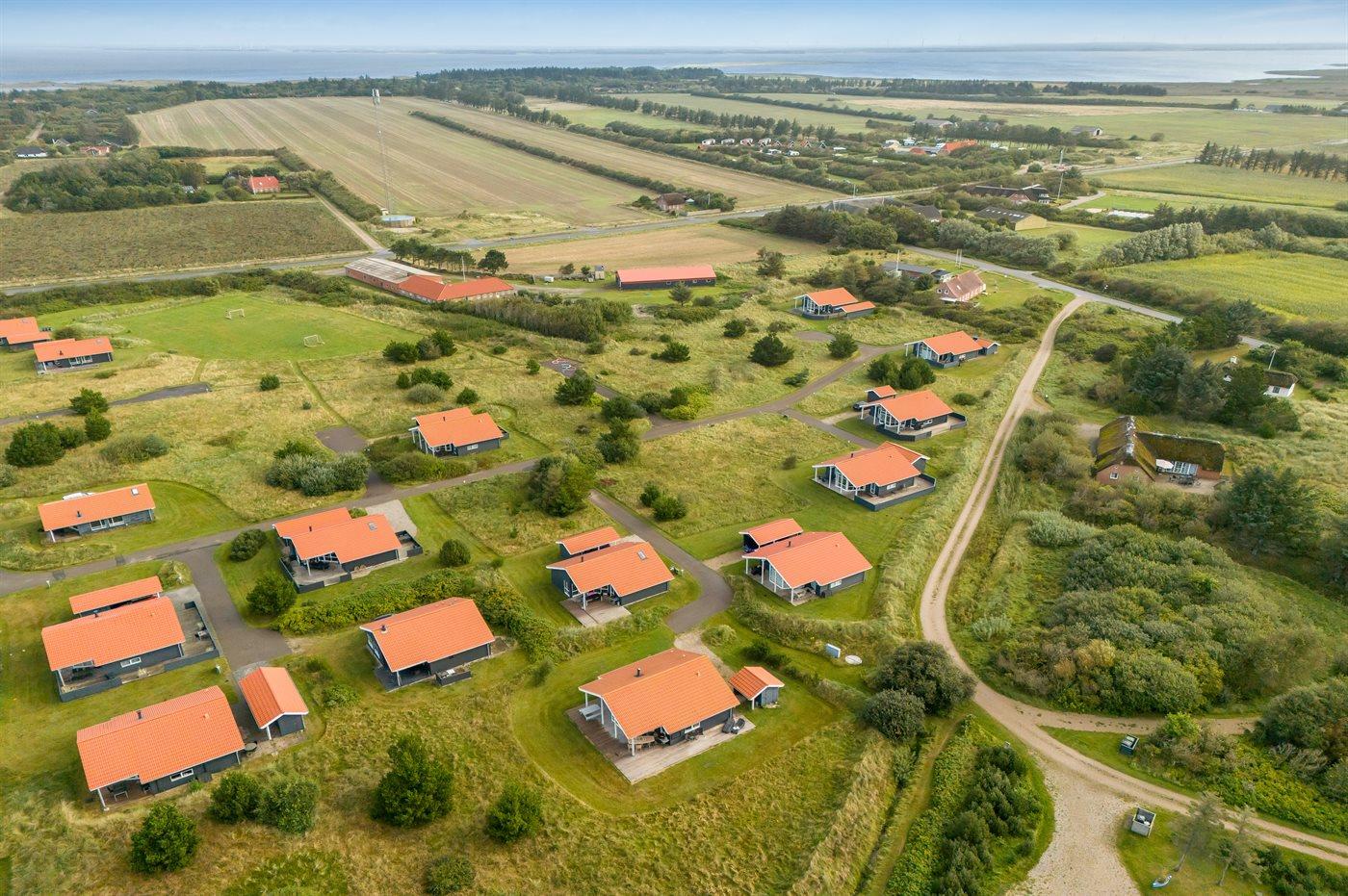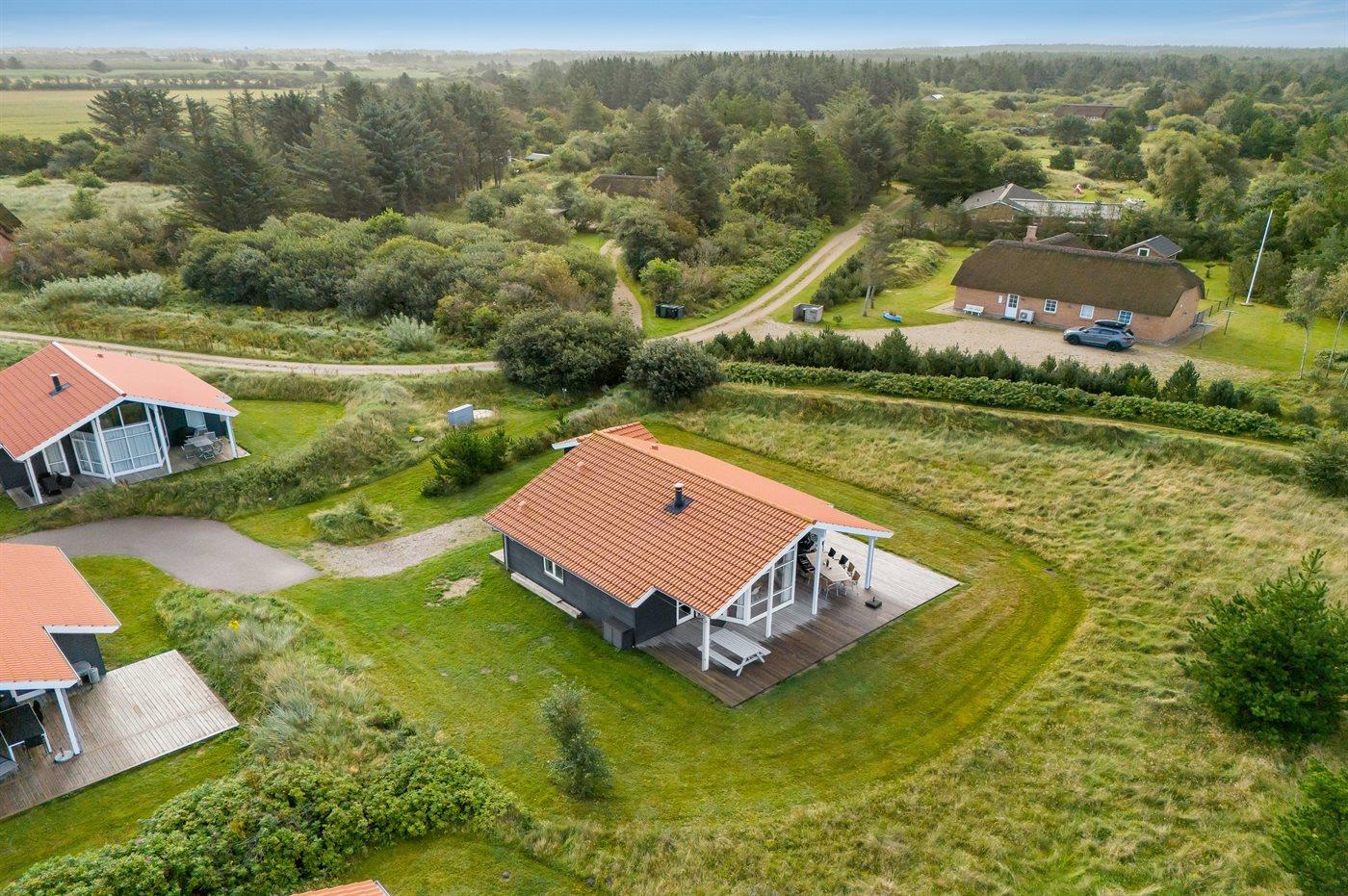Ferieboligen er beliggende på en 500 m² stor naturgrund. Der er 800 m til havet. Der er 1000 m til fjorden. Nærmeste forretning er beliggende i en afstand af 3000 m. Til ferieboligen hører åbent terrasseareal. Desuden er der overdækket terrasse. Der er redskabsrum. Der ligger en legeplads i en afstand af 150 m. Parkering ved ferieboligen.
