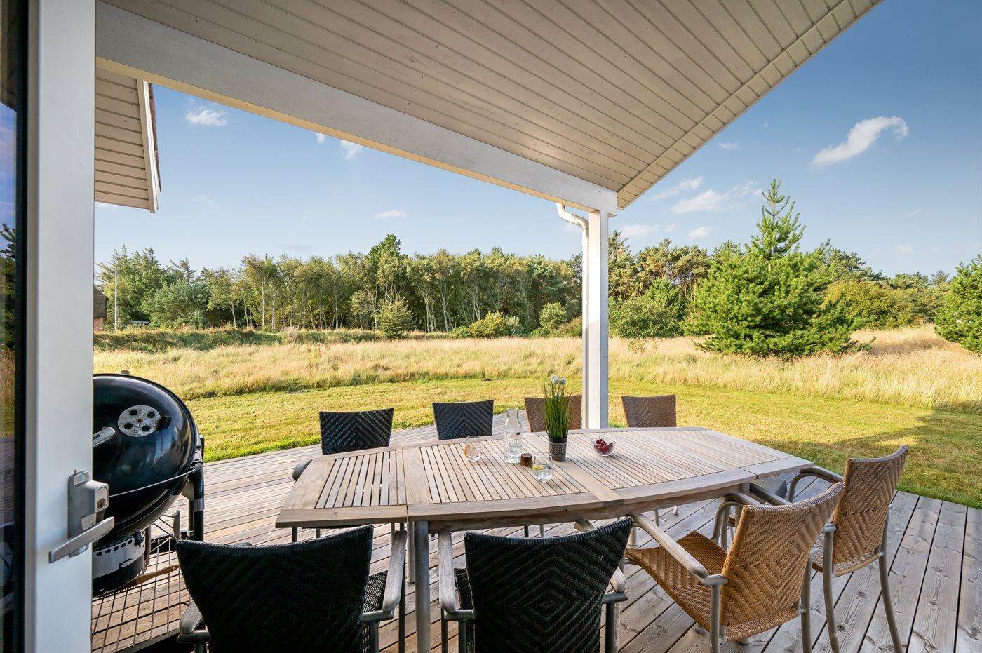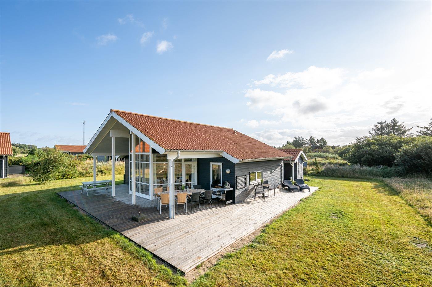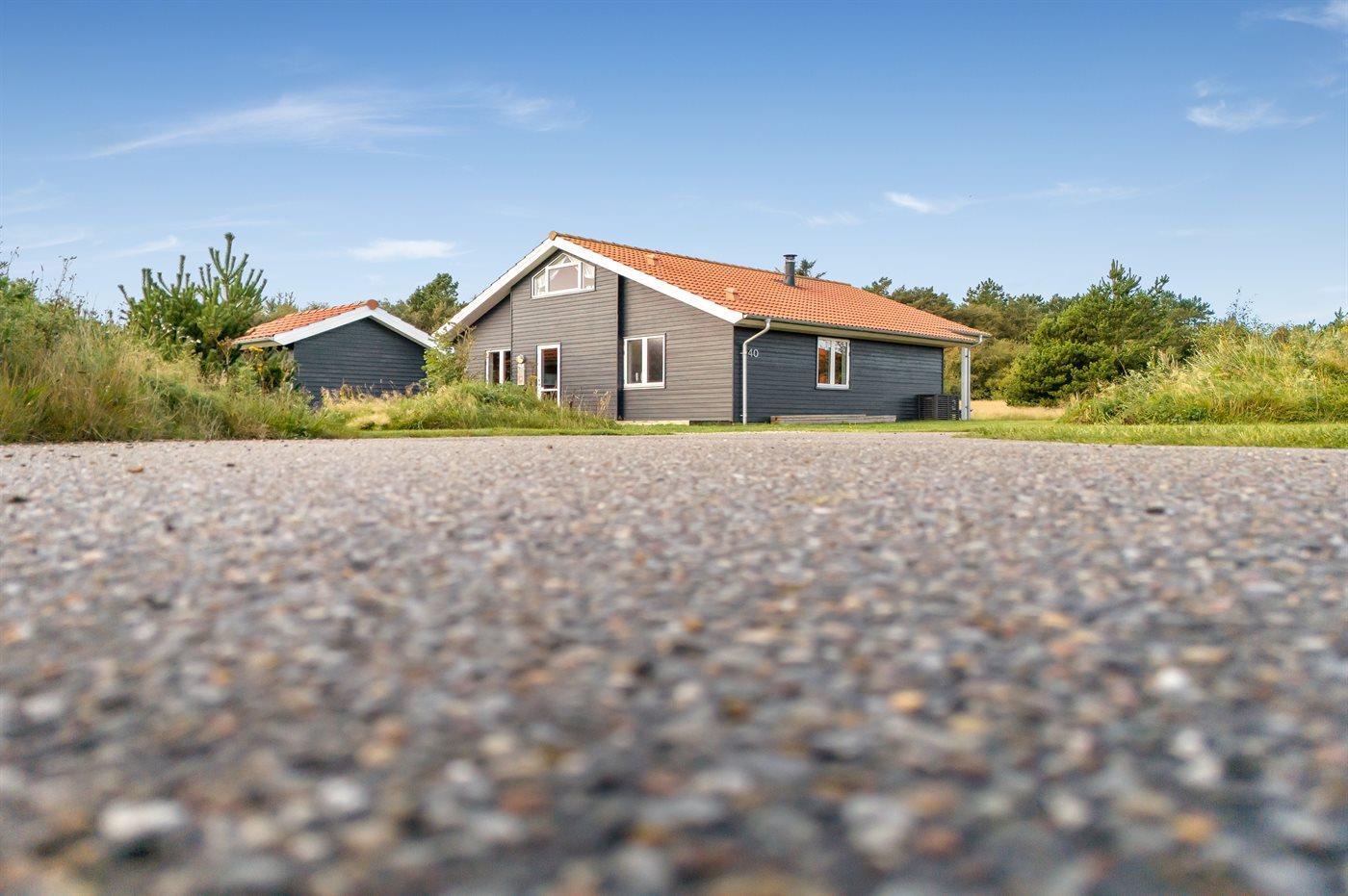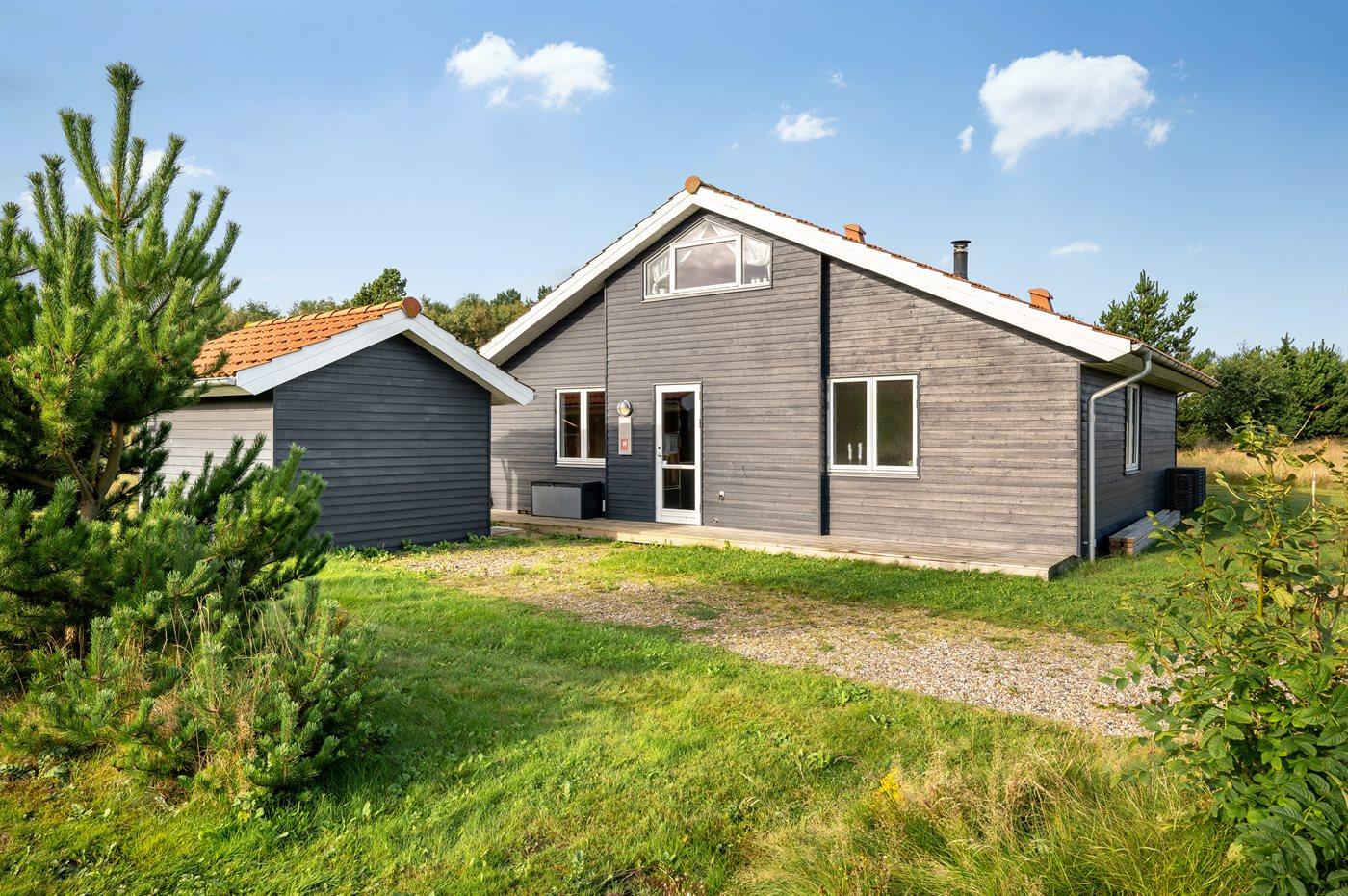 Ferieboligen er beliggende på en 500 m² stor naturgrund. Der er 800 m til havet. Der er 1000 m til fjorden. Nærmeste forretning er beliggende i en afstand af 3000 m. Til ferieboligen hører åbent terrasseareal. Desuden er der overdækket terrasse. Der er redskabsrum. Der ligger en legeplads i en afstand af 150 m. Parkering ved ferieboligen.