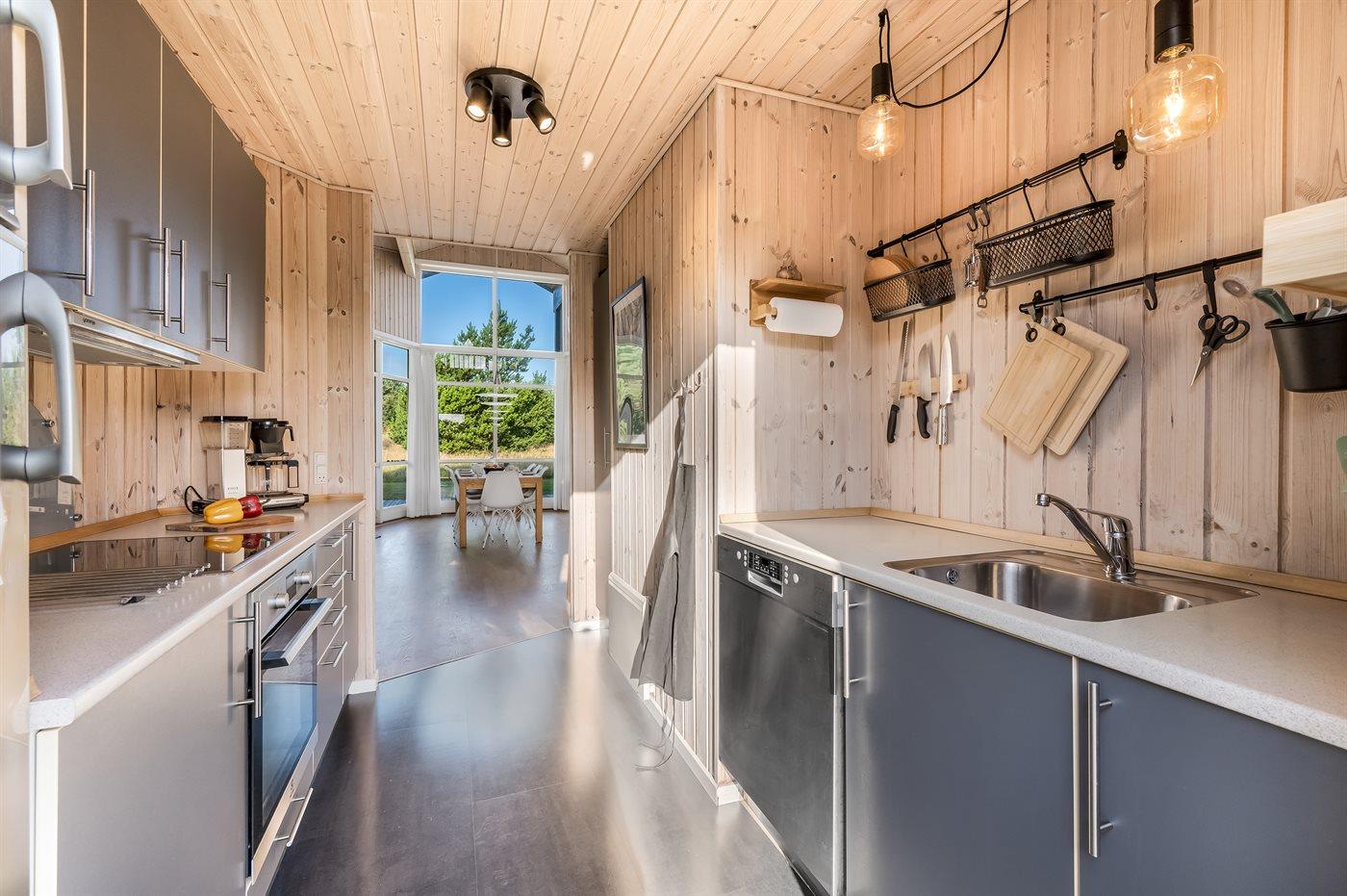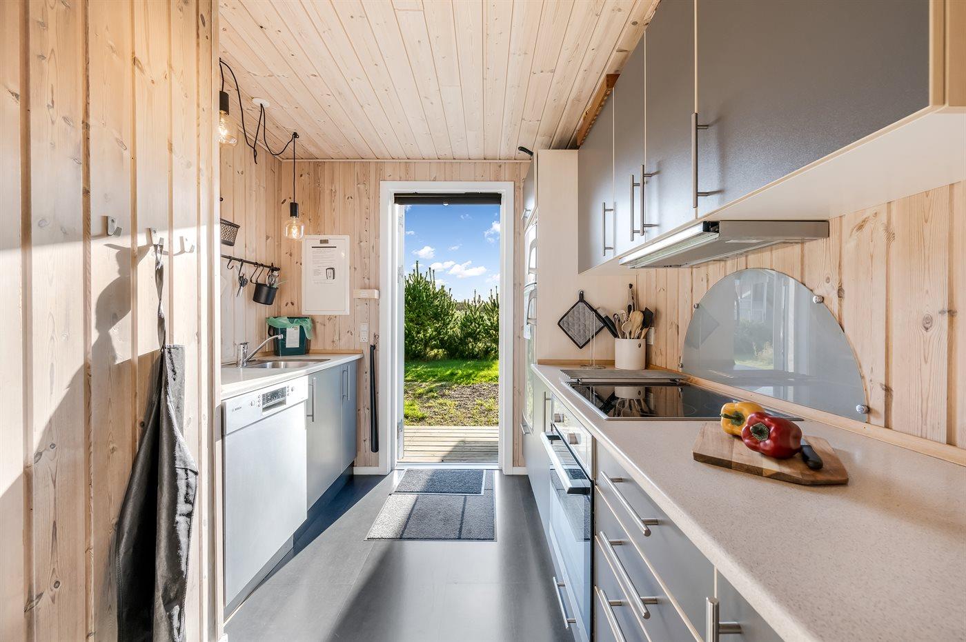 Køkkenet er udstyret med 2 køleskabe. Der er 4 keramiske kogeplader, varmluftovn samt opvaskemaskine.