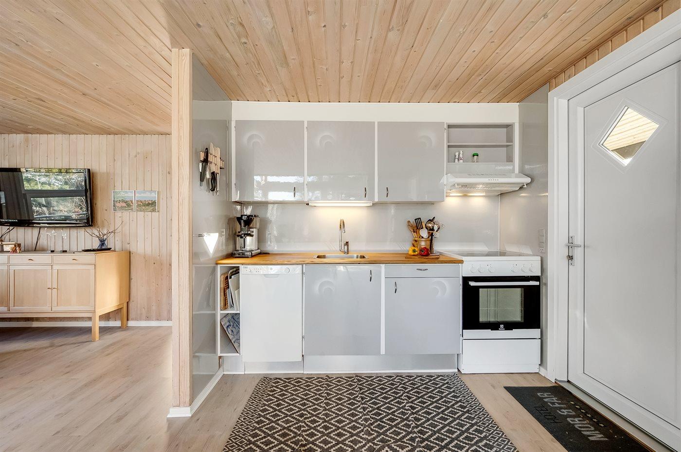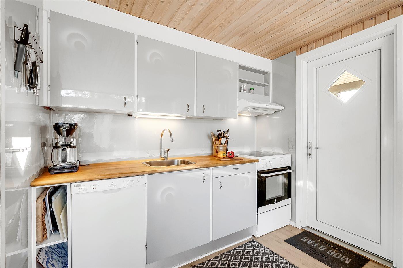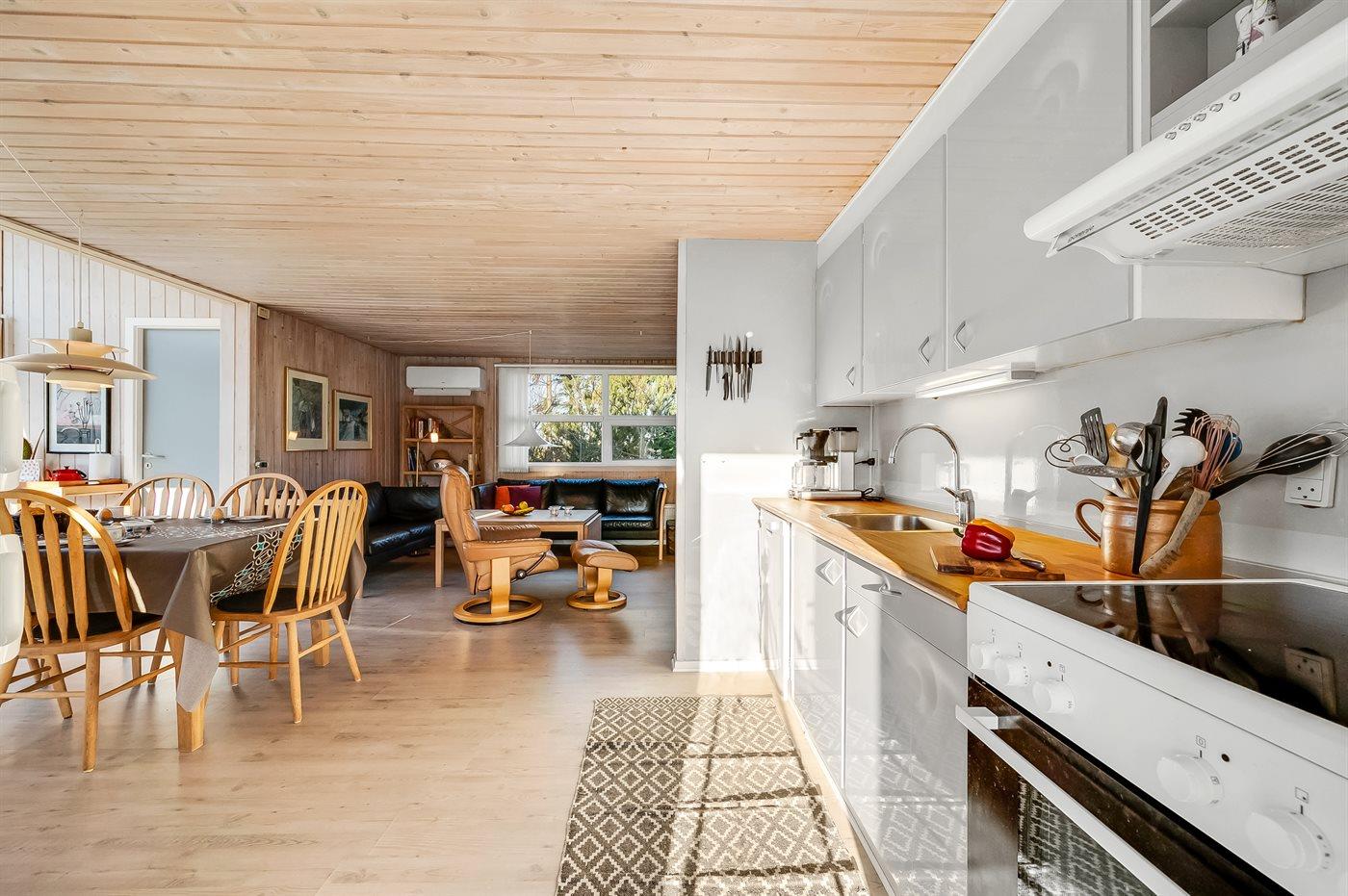 Køkkenet er udstyret med 2 køleskabe. Der er 4 keramiske kogeplader, varmluftovn, mikrobølgeovn samt opvaskemaskine.
