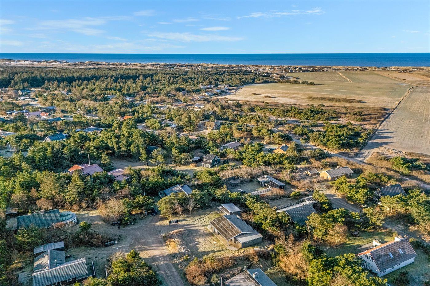 Ferieboligen er beliggende på en 900 m² stor naturgrund. Der er 1300 m til havet. Der er 700 m til fjorden. Nærmeste forretning er beliggende i en afstand af 3000 m. Til ferieboligen hører åbent terrasseareal. Desuden er der overdækket terrasse. Parkering ved ferieboligen.