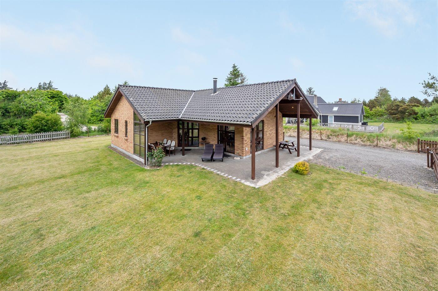 Ferieboligen er beliggende på en 1279 m² stor naturgrund. Grunden er indhegnet. Der er 2000 m til havet. Der er 525 m til fjorden. Nærmeste forretning er beliggende i en afstand af 3700 m. Til ferieboligen hører 20 m² terrasseareal. Desuden er der 20 m² overdækket terrasse. Der er redskabsrum. Gynge. Sandkasse. Legetårn. Grill til rådighed. Parkering ved ferieboligen.
