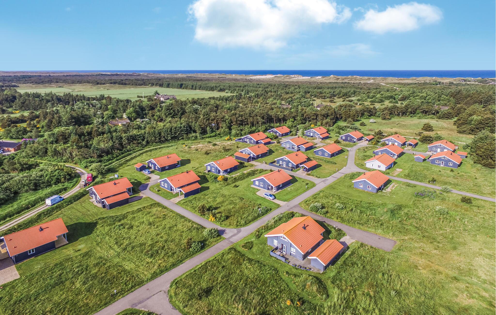 Tæt på Vesterhavet og Nissum Fjord, ligger dette hyggelige feriehus. Huset er velindrettet med tre gode soveværelser, kombineret køkken/ stue samt et dejligt lyst badeværelse med spabad til to personer. Udendørs kan I nyde ferien på den delvis overdækkede terrasse, eller hvad med at spille spil på græsplænen?