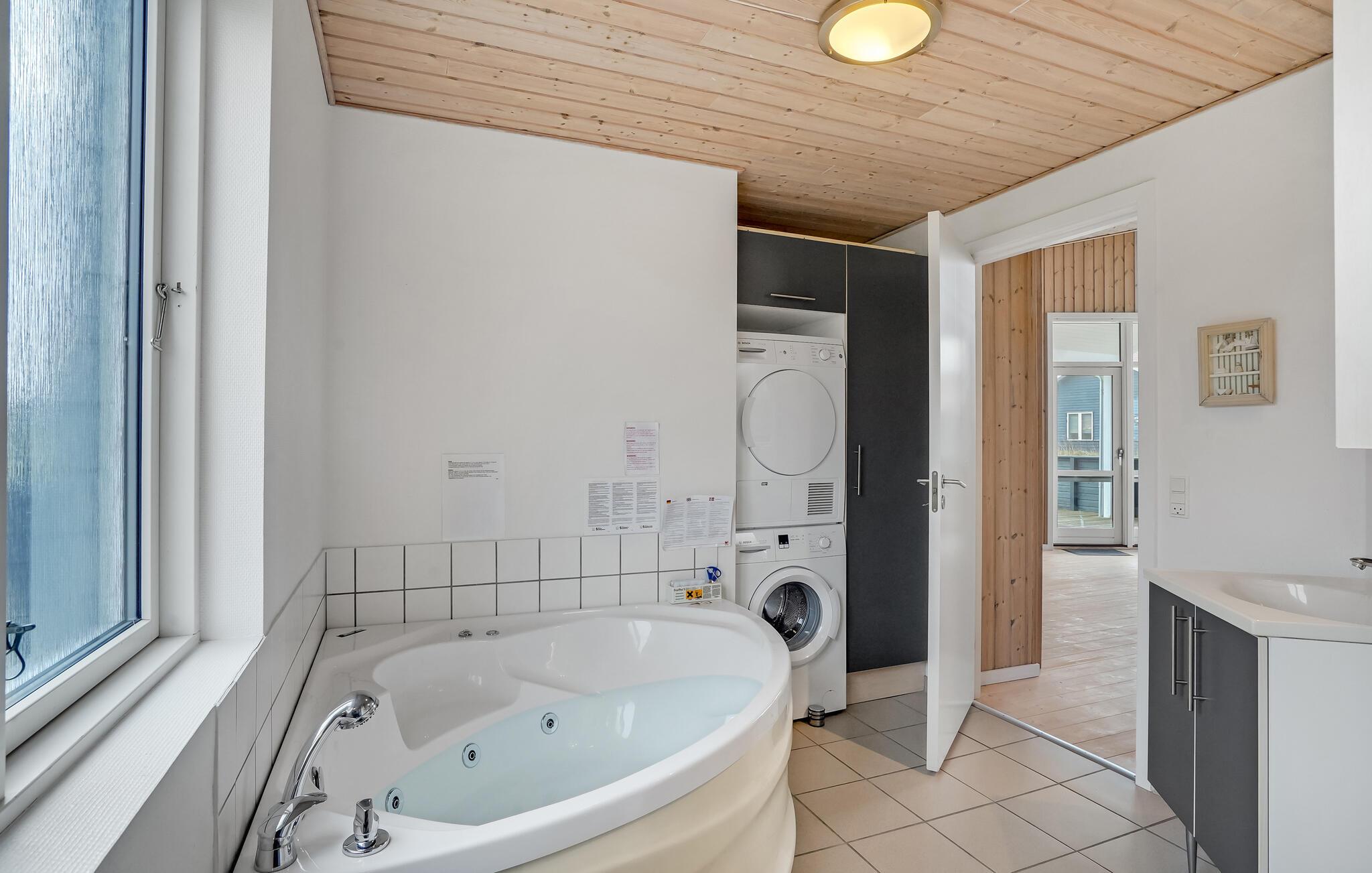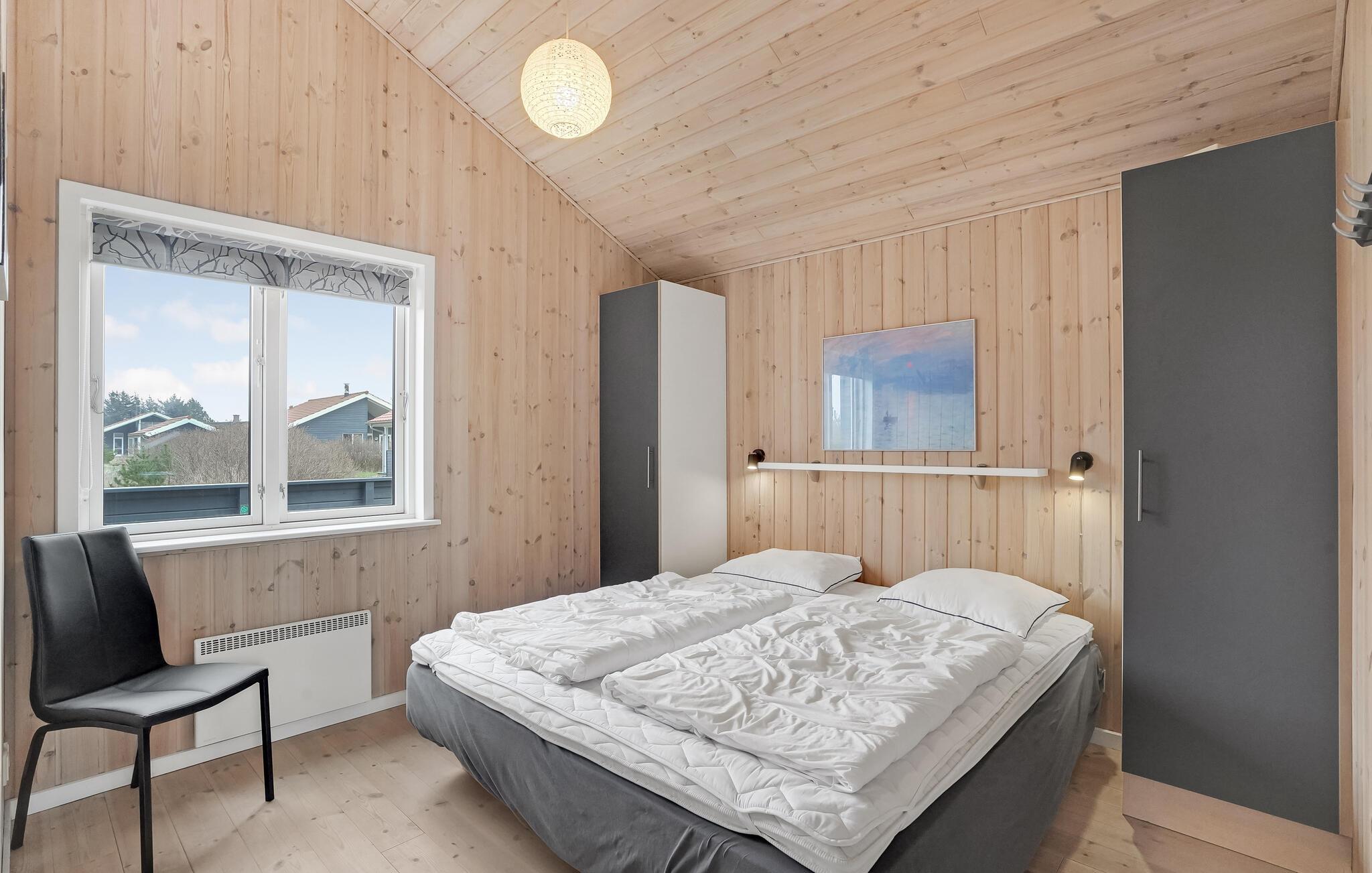 Tæt på Vesterhavet og Nissum Fjord, ligger dette hyggelige feriehus. Huset er velindrettet med tre dejlige soveværelser, hems, stue, køkken samt et stort lyst badeværelse med spabad. Der er lynhurtigt internet lagt ind i huset. I forbindelse med carporten findes et 9 m² redskabsskur. Dette er feriehuset, hvor I kan føle jer godt tilpas, allerede fra I træder ind af døren. Fjand Strand er for familier, der ønsker at være tæt på naturen. Huset ligger i et område med hav, fjord, hede og klitlandskab. Ikke langt fra huset ligger en gårdbutik/café, hvor I kan handle lokalt. Huset er beliggende i et område med asfaltrede veje, gadelys, en stor legeplads, volleyball-, fodbold- og petanquebane.