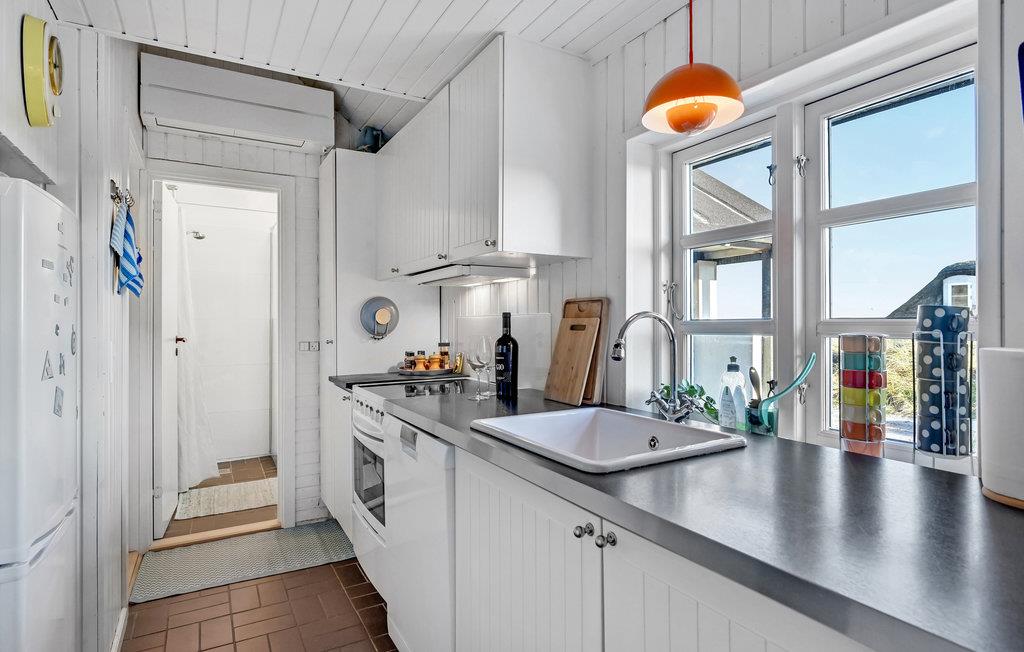 Denne fantastiske lille perle af et feriehus med plads til fire personer ligger med Vesterhavet lige i baghaven. Huset er hyggeligt indrettet med to soveværelser, et badeværelse med bruser, et veludstyret køkken og en meget hyggelig stue med brændeovn, så I kan sidde og nyde varmen fra ilden efter en lang gåtur ved havet. Fra en klit på grunden er der udsigt både til havet og til fjorden. Huset ligger i Bjerghuse, som er et roligt ferieområde mellem hav og fjord, og kun seks km fra fiskerbyen Thorsminde.