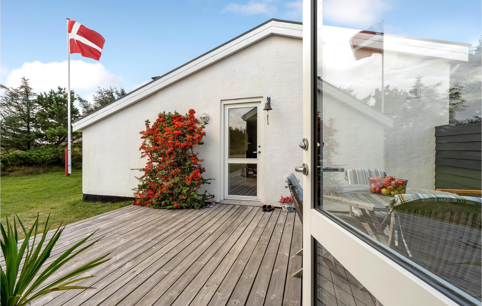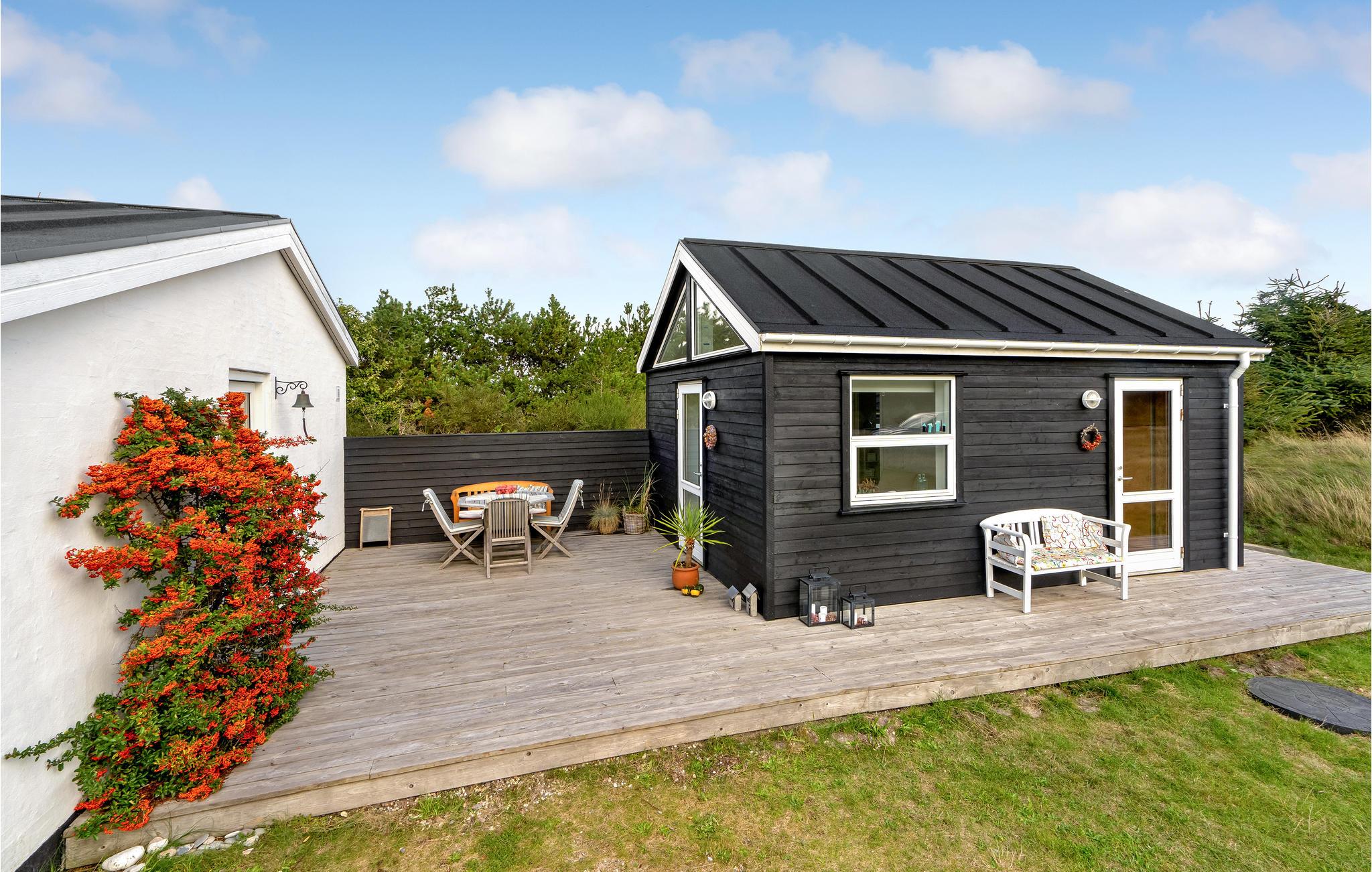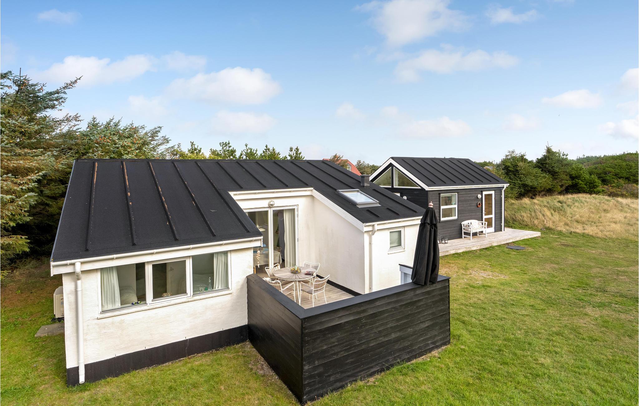 Hyggeligt feriehus med anneks nær sandstrand i Fjand, indrettet i moderne skandinavisk stil med stort terrasseområde.