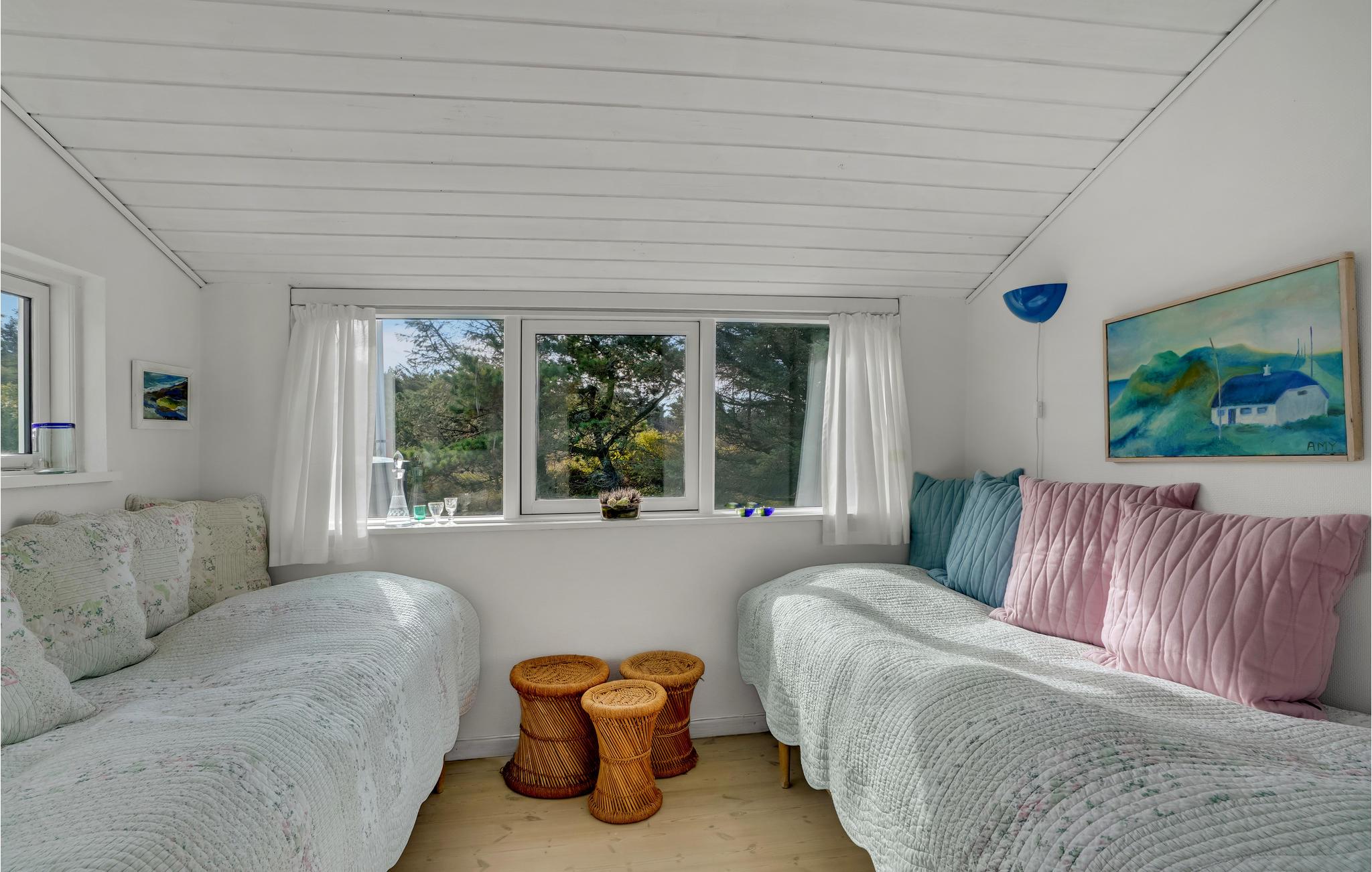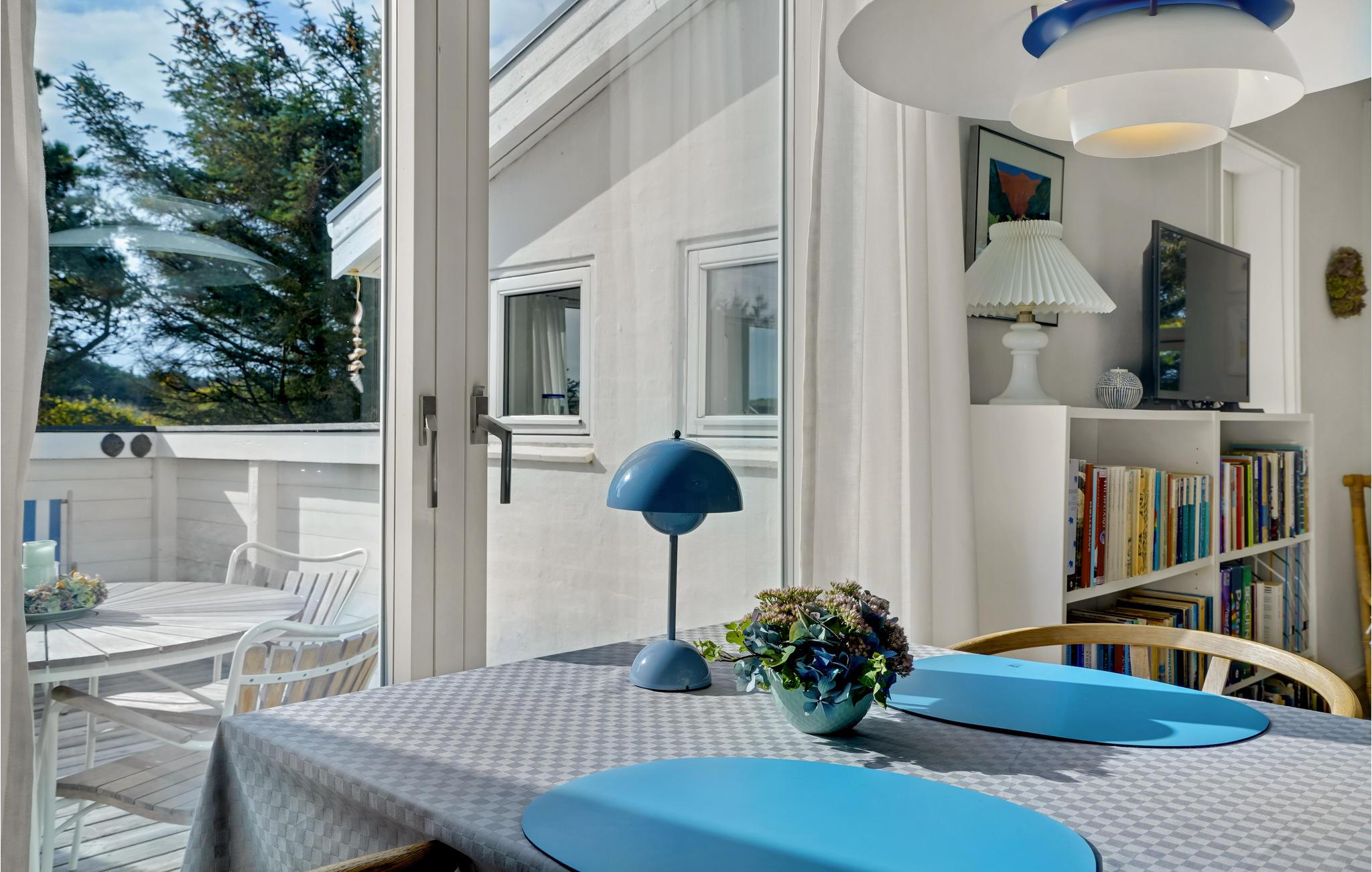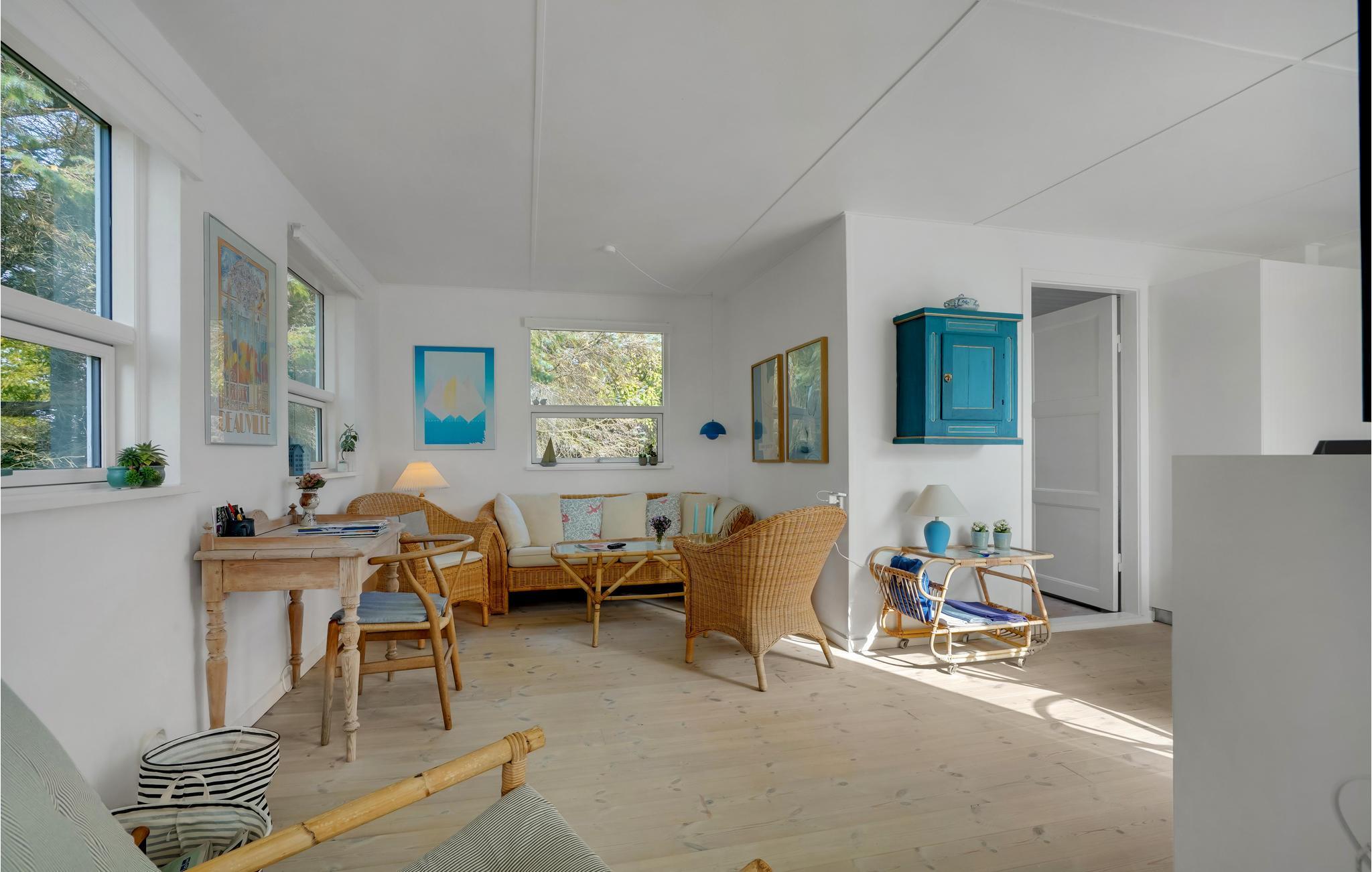 I den lille badeby Fjand, mellem Nissum Fjord og Vesterhavet ligger dette charmerende feriehus, som er indrettet i moderne skandinavisk stil. Feriestemningen indfinder sig hurtigt, for huset er lyst og lækkert indrettet med møbler i flet og træ samt den havblå farve som gennemgående tema. Anneksbygningen giver jer ekstra sengepladser og god mulighed for at fordele jer.