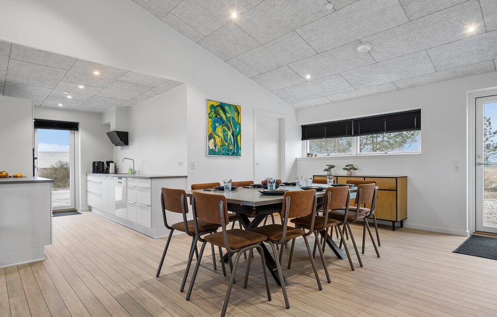 Glæd jer til en afslappende ferie i dette rummelige, moderne feriehus, som ligger badet i lys fra de store vinduespartier.