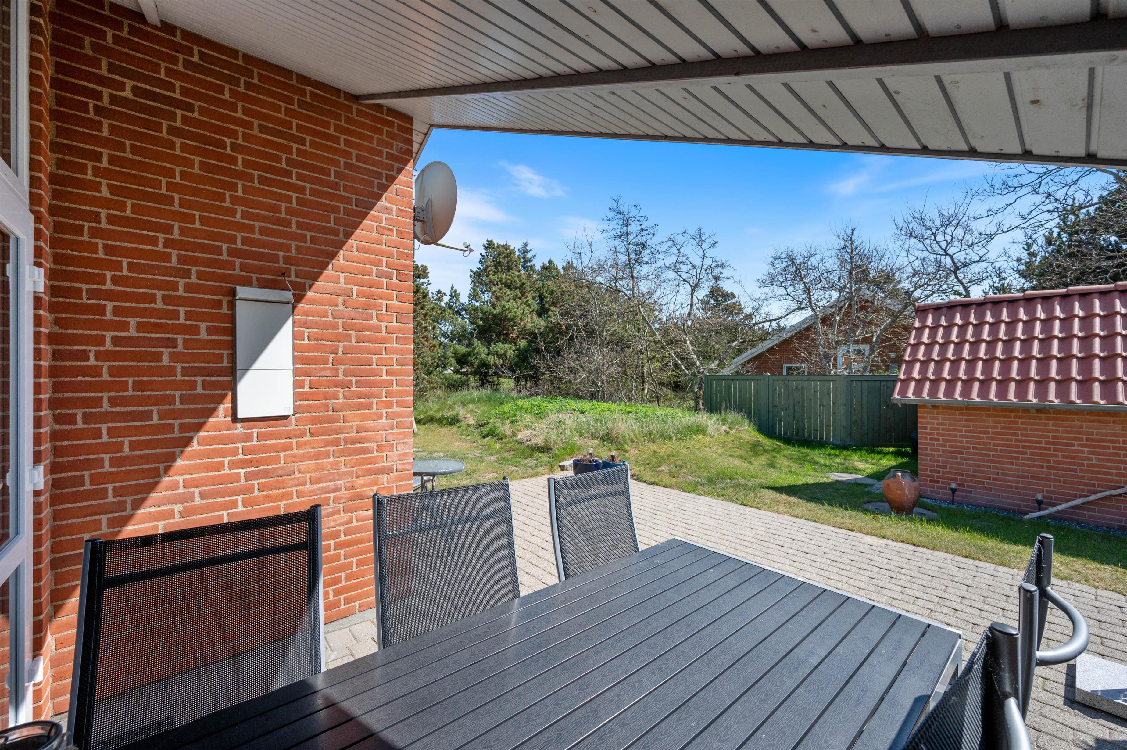 På de feriedage, hvor vejret er i top, kan I rykke ud på feriehusets udeområde, hvor der er noget for både børn og voksne, så I alle kan nyde dagene i det fri. Til børnene er der et gyngestativ i haven, som de helt sikkert vil få glæde af i løbet af ferien.